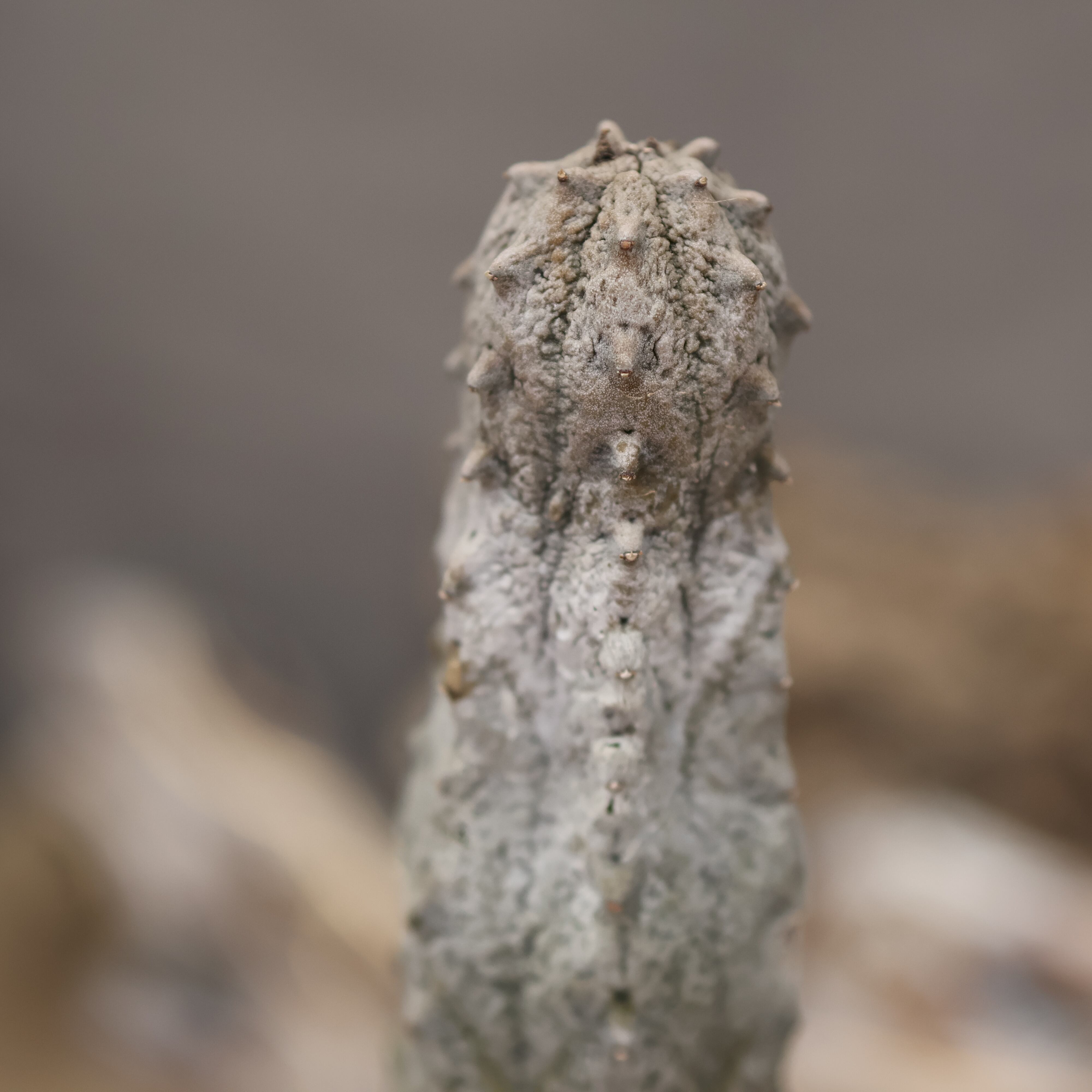 『ユーフォルビア アブデルクリ』は、アラビア海に浮かぶアブドゥル クーリー島のみに自生する非常に希少種。まるでナマコのような見た目にホワイトグレーのマットな質感。