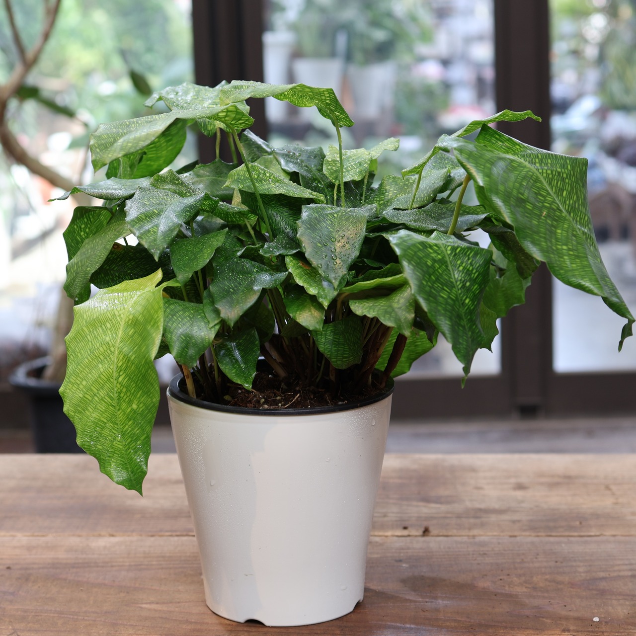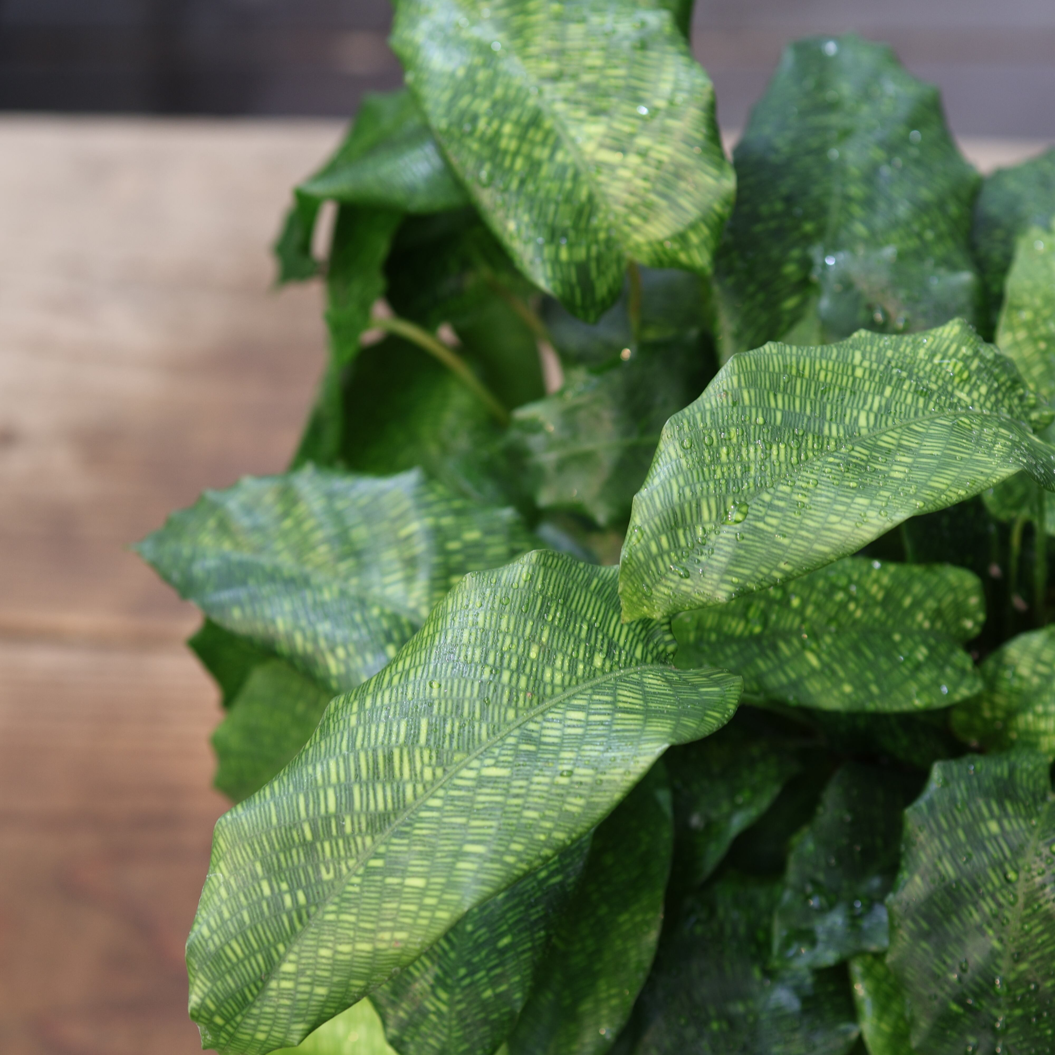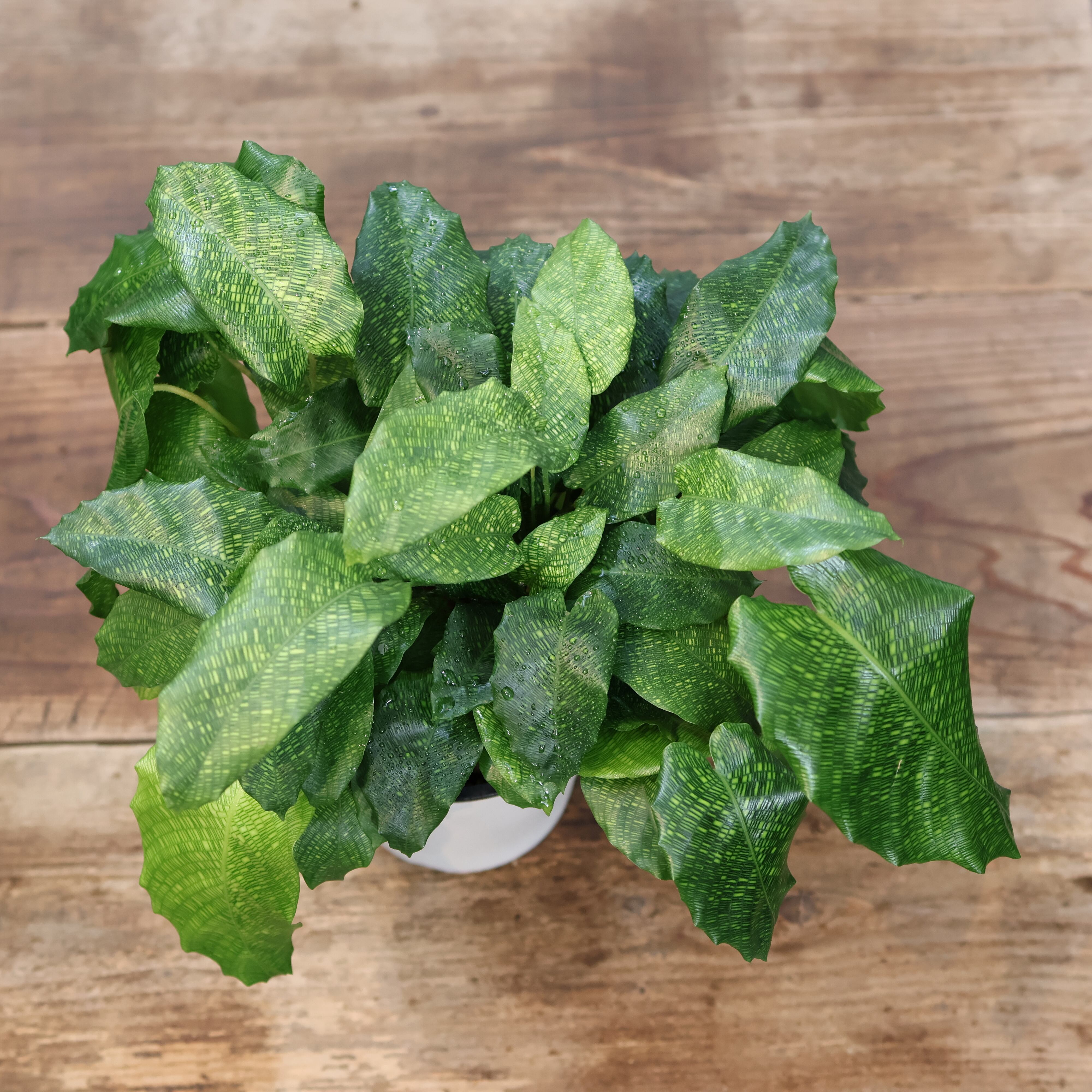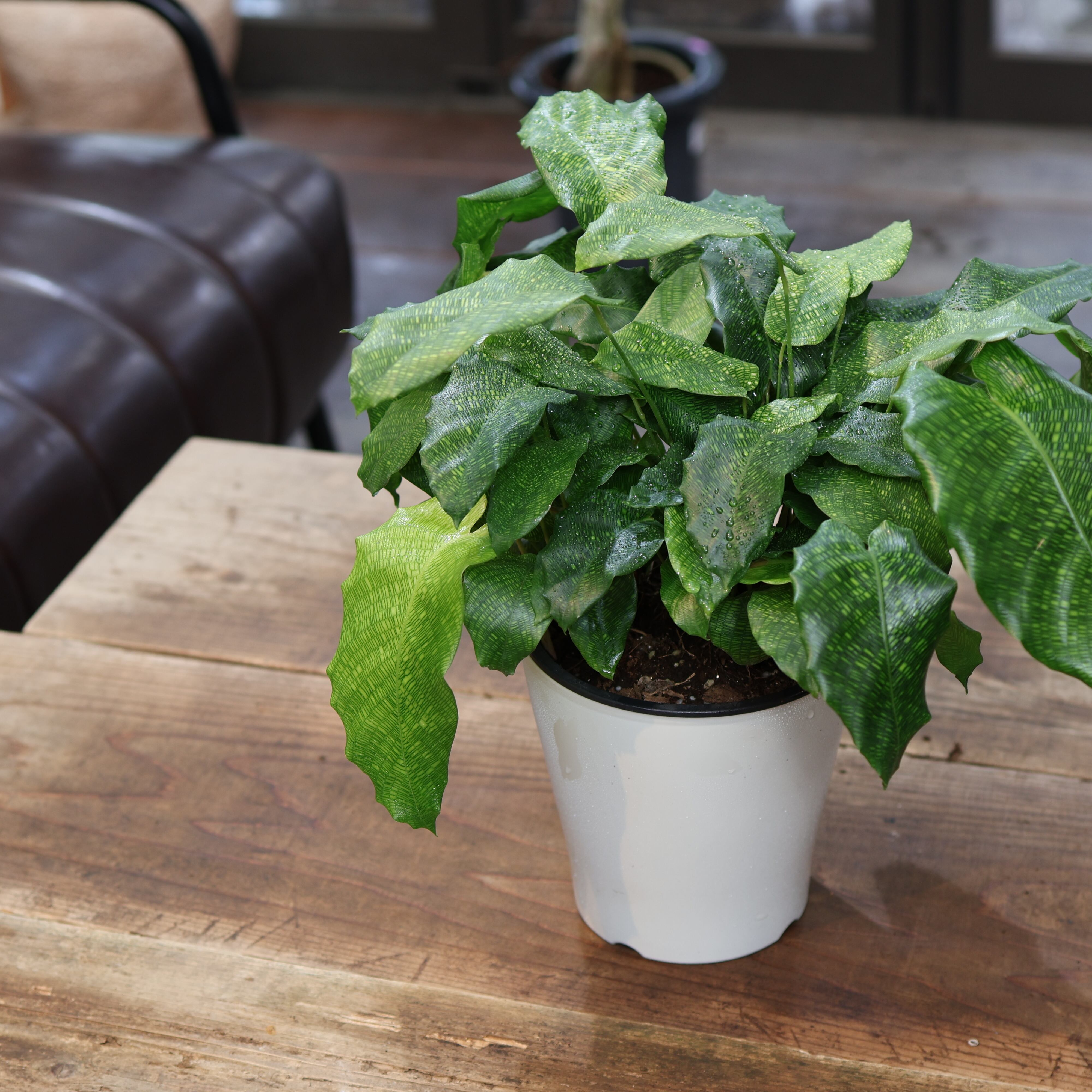 『カラテア ムサイカ(モザイク)』は、細かな葉脈が入り個性的なモザイク模様のような美しい葉の観葉植物です。カラテアの中でも流通量が少なく珍しい品種になります。