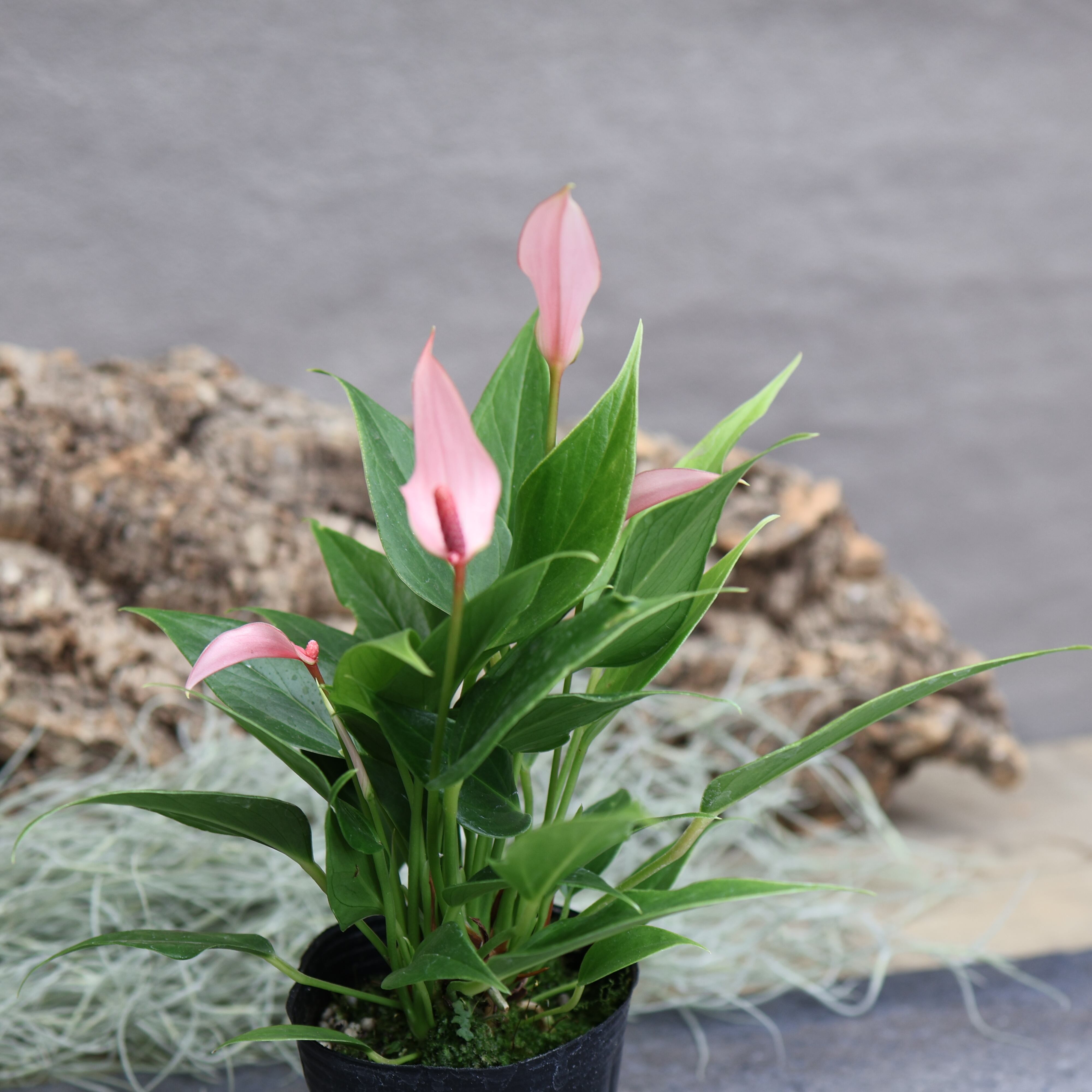 『アンスリウム リリー』はピンクのお花も葉っぱも両方楽しめインテリアグリーンとしておすすめです。空気浄化と蒸散作用による保温保湿効果があるのでお部屋にお迎えしてみませんか?