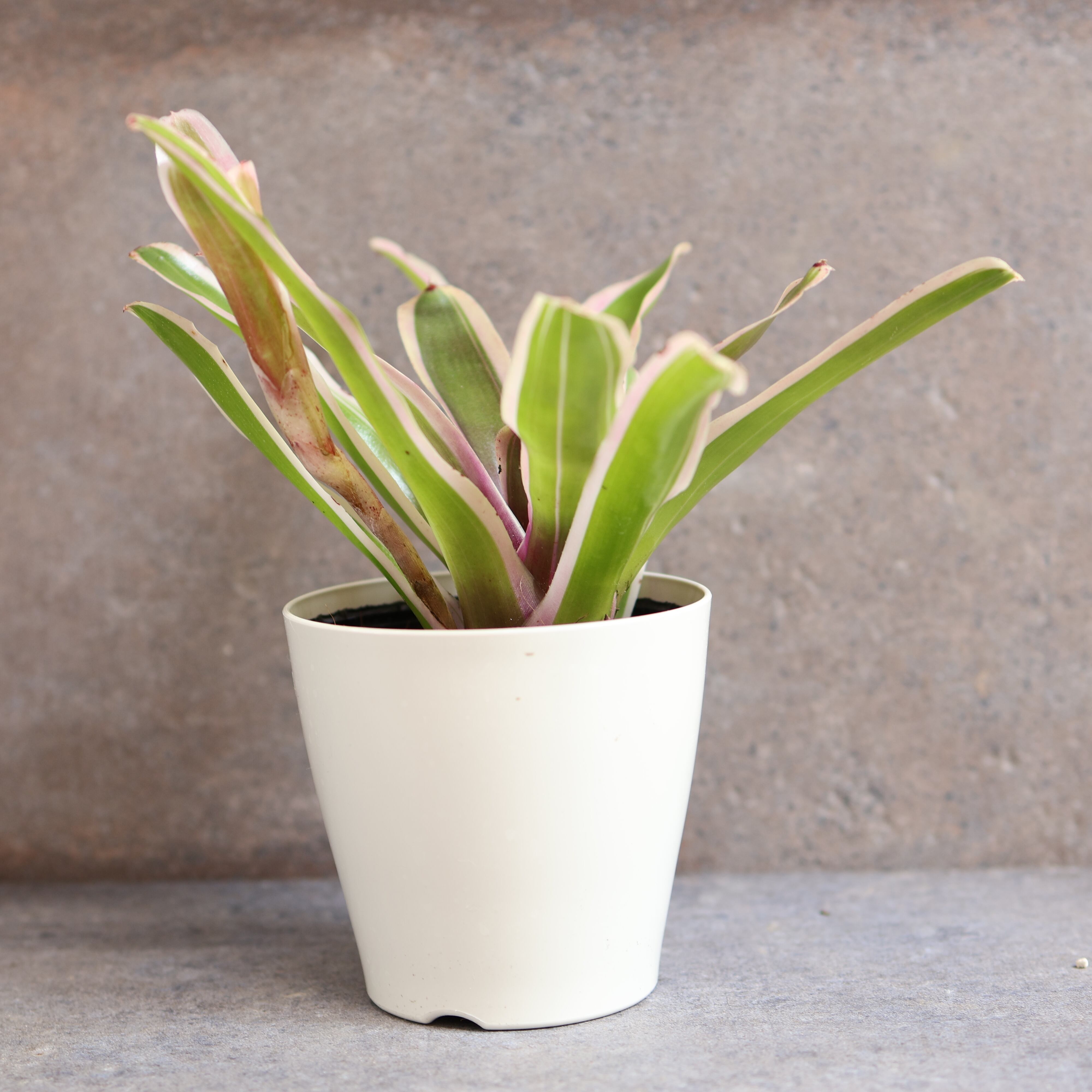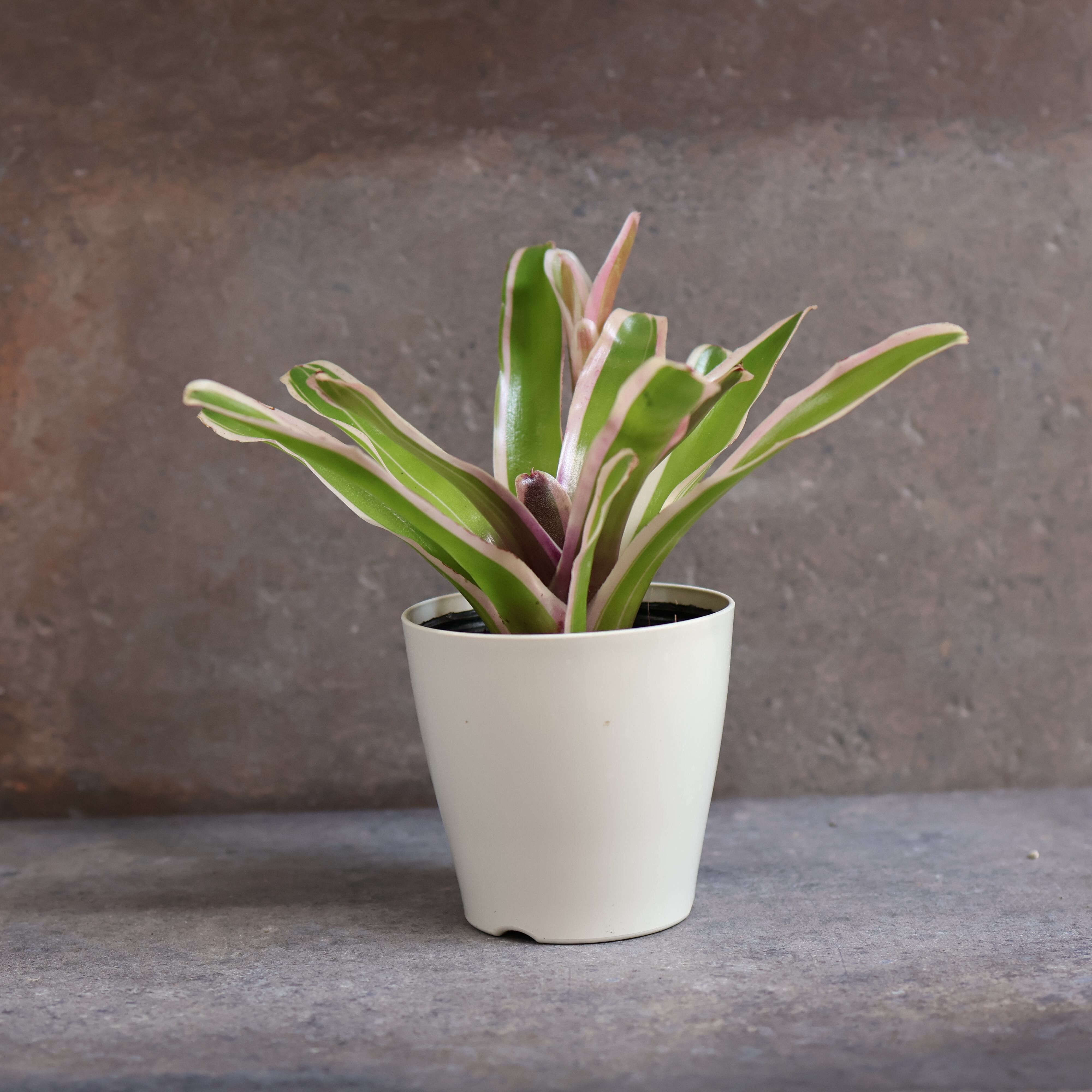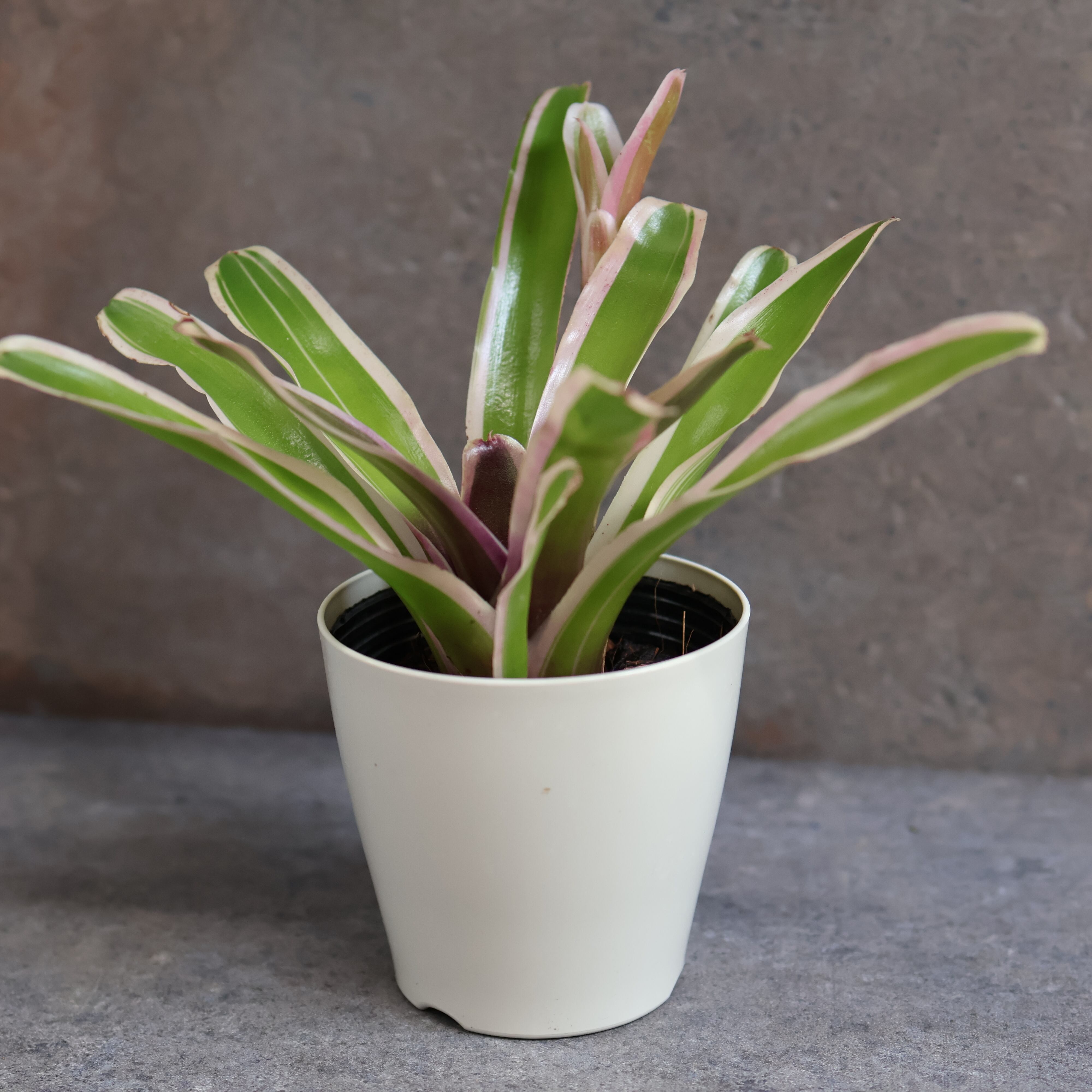 『ネオレゲリアファイヤーボール』は、可愛らしい色合いのタンクブロメリアです。ブラジルに原生する中~小型の着生タイプのアナナス類。子株ができやすく、ランナーを伸ばして生長しボリュームのある株姿になります。群生を楽しめます。