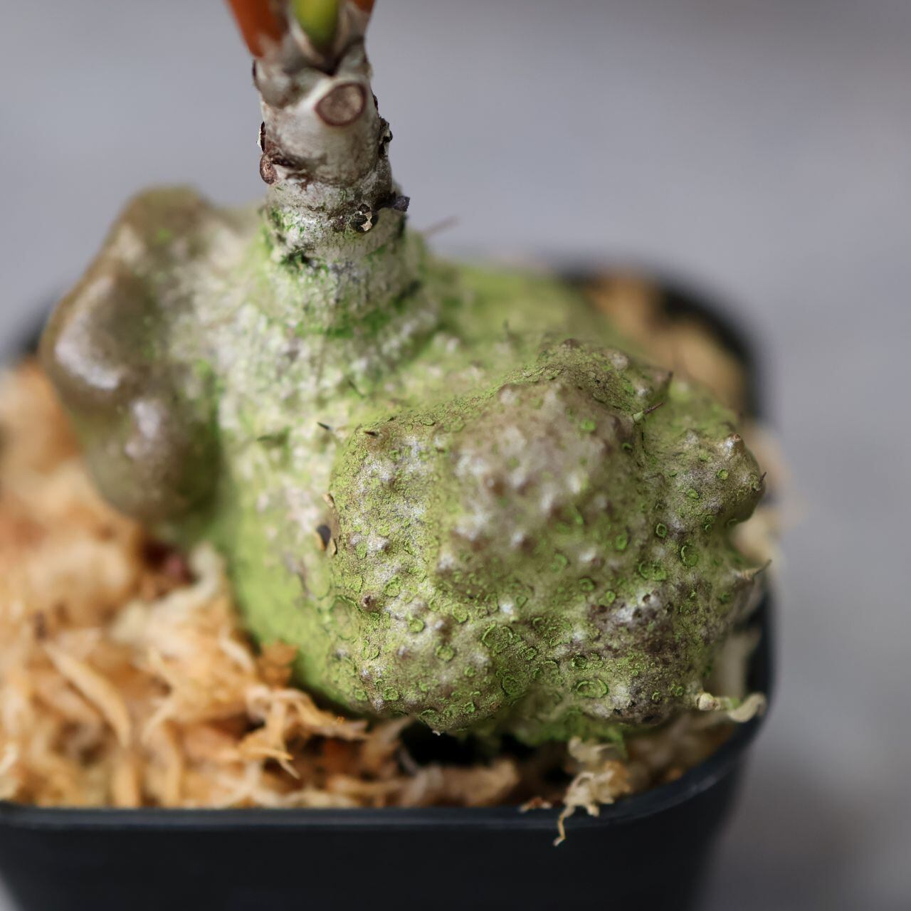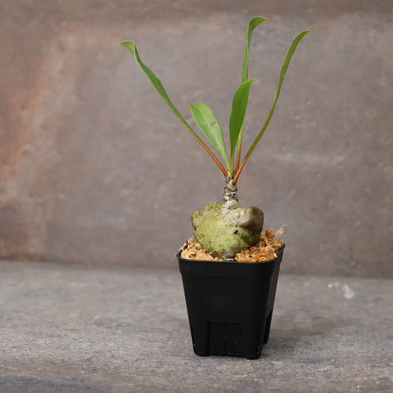 こちらは、「伊藤蟻植物農園」より入荷した インドネシア スラウェシ島北部 オレンジ色の茎を持つ細長い葉の個体です。