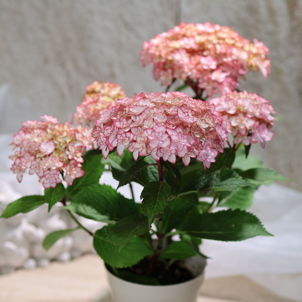 庭植えにも向く丈夫な系統で丈夫で花付きが良いことを目標に改良。従来のハイドランジアよりも木姿の良い品種が多く、庭植えにも向き。