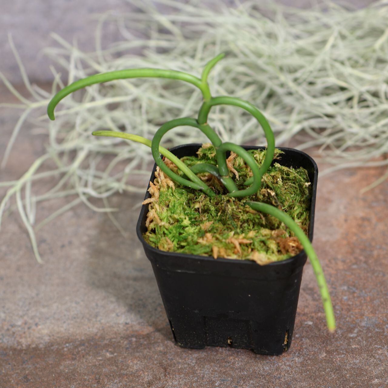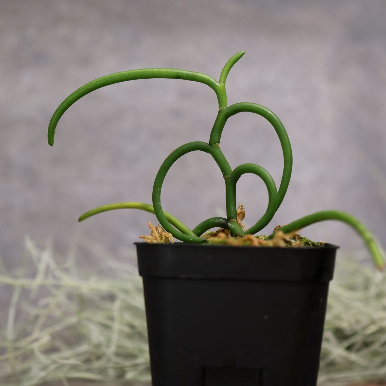 『パピリオナンセ オリンピックリングス』は、葉が独特にカールする珍しい着生ランです。そのユニークな形がオリンピックの五輪を思わせることから、この名がつけられました。