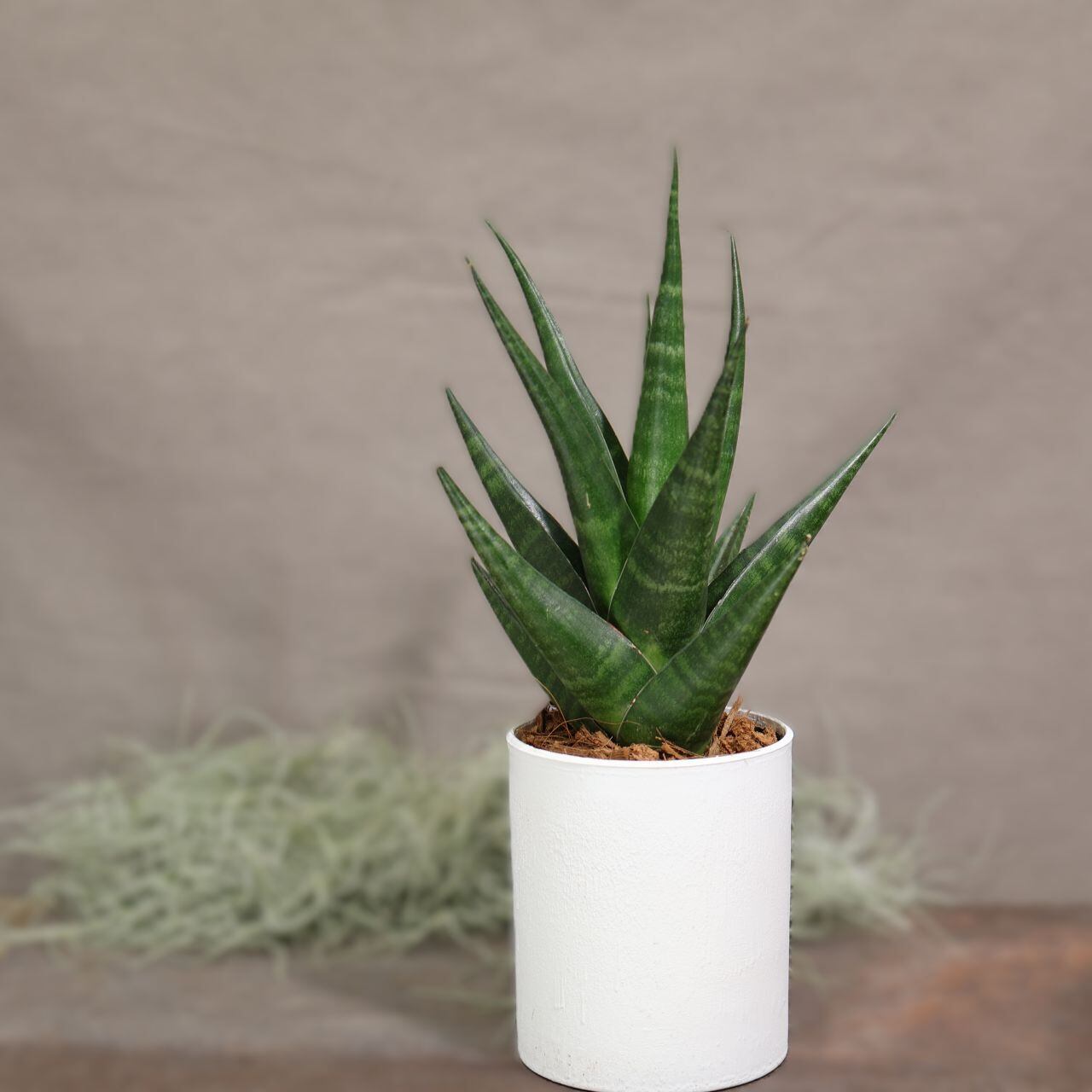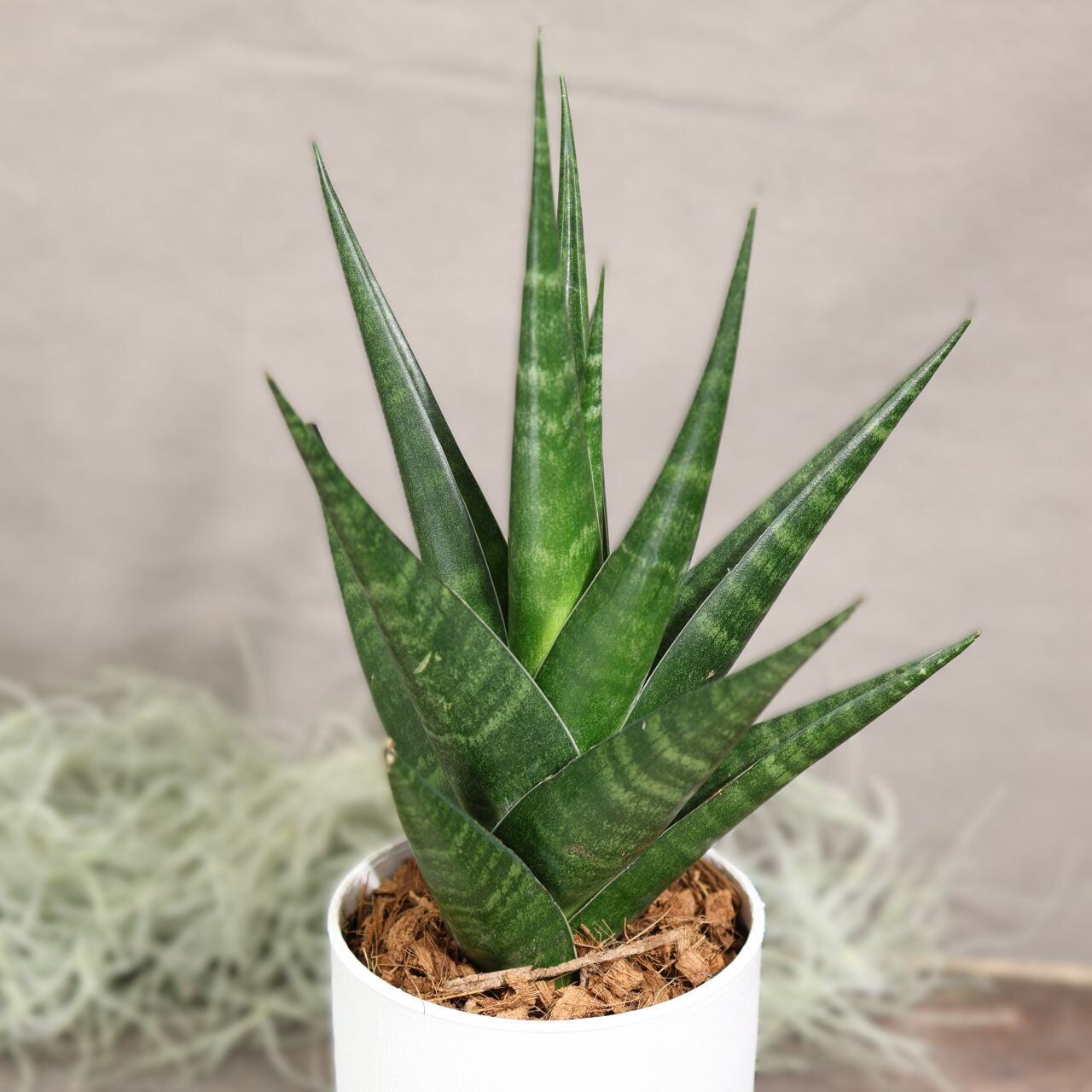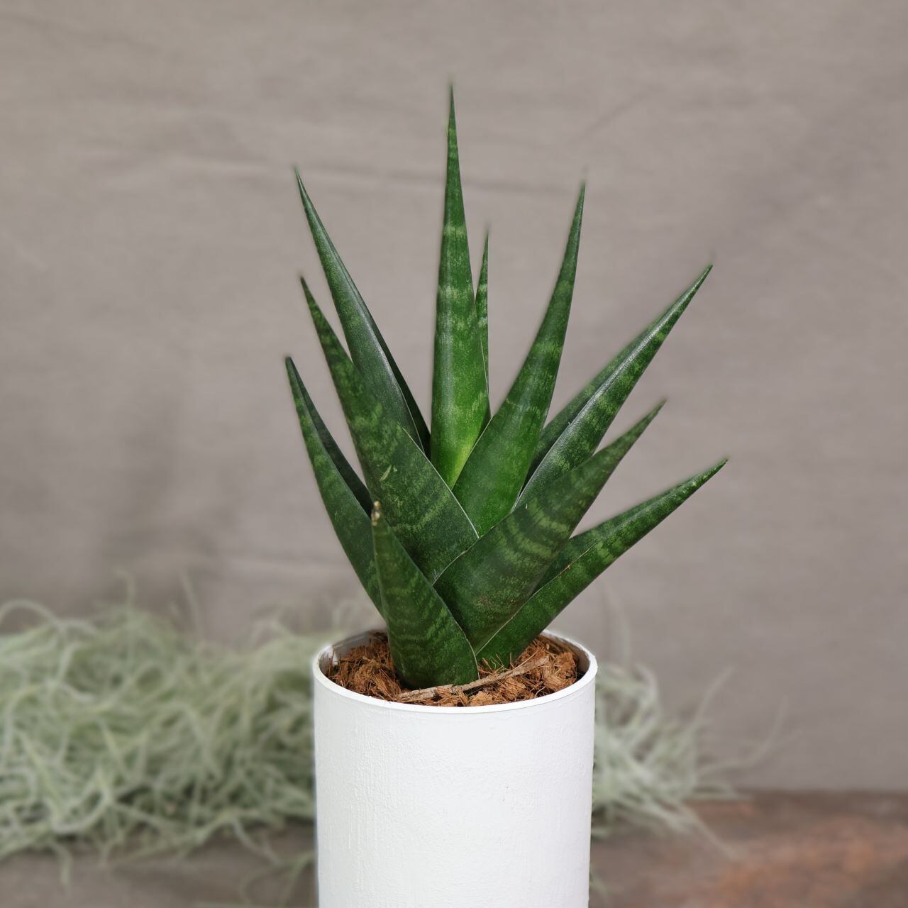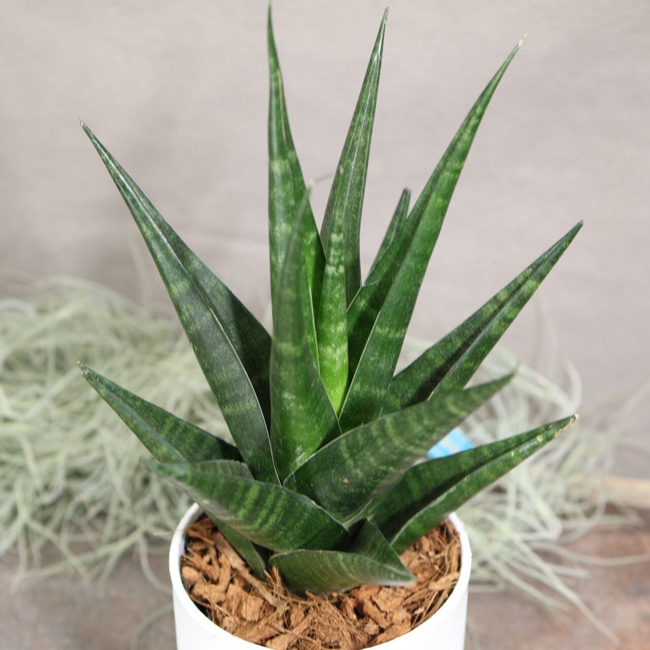『サンスベリア マライカ』は、サンスベリア属の中でも比較的珍しい種類で、ロゼット状の葉が特徴です。葉が肉厚で、葉の曲線が美しいのが魅力で、耐陰性も乾燥にも強いので育てやすいです。