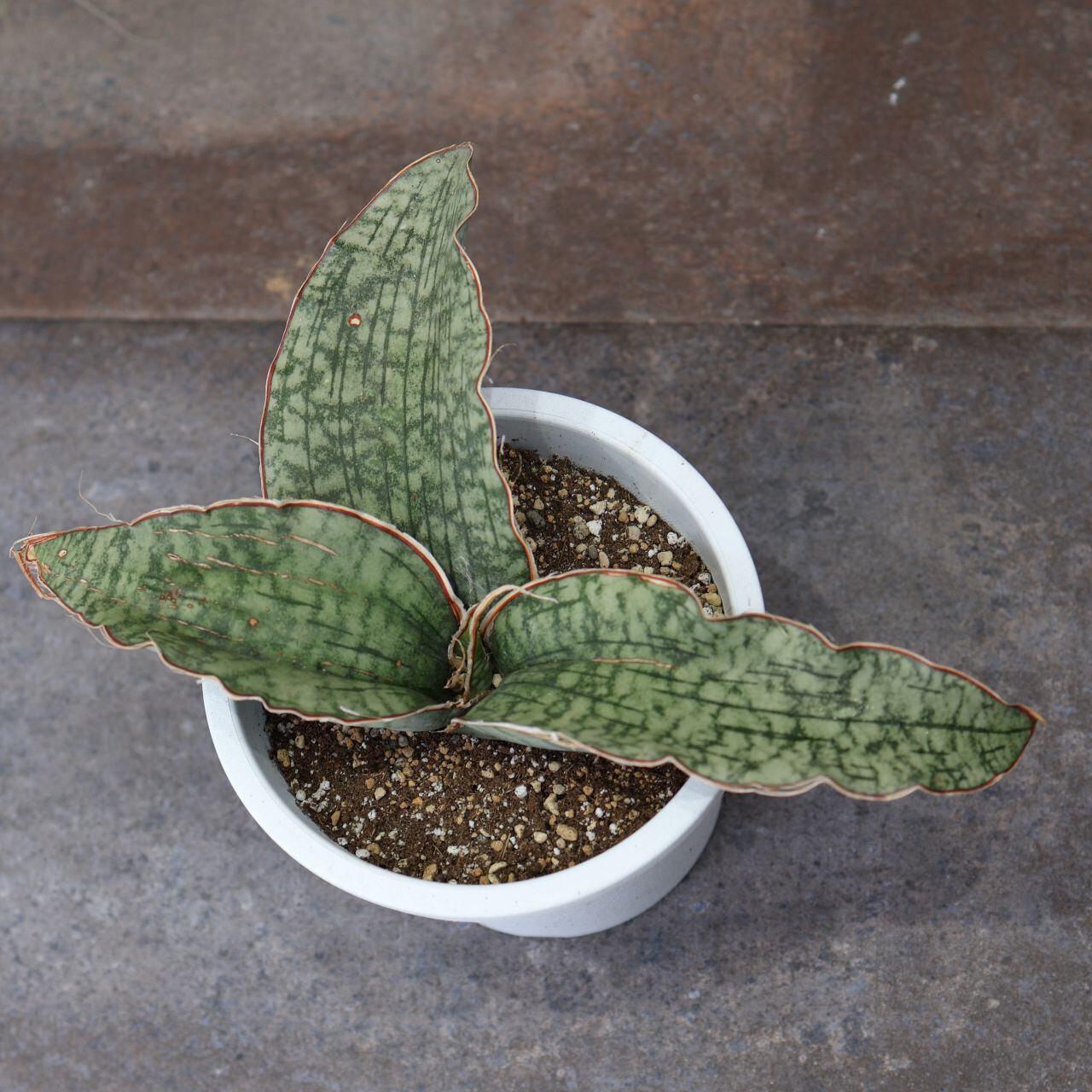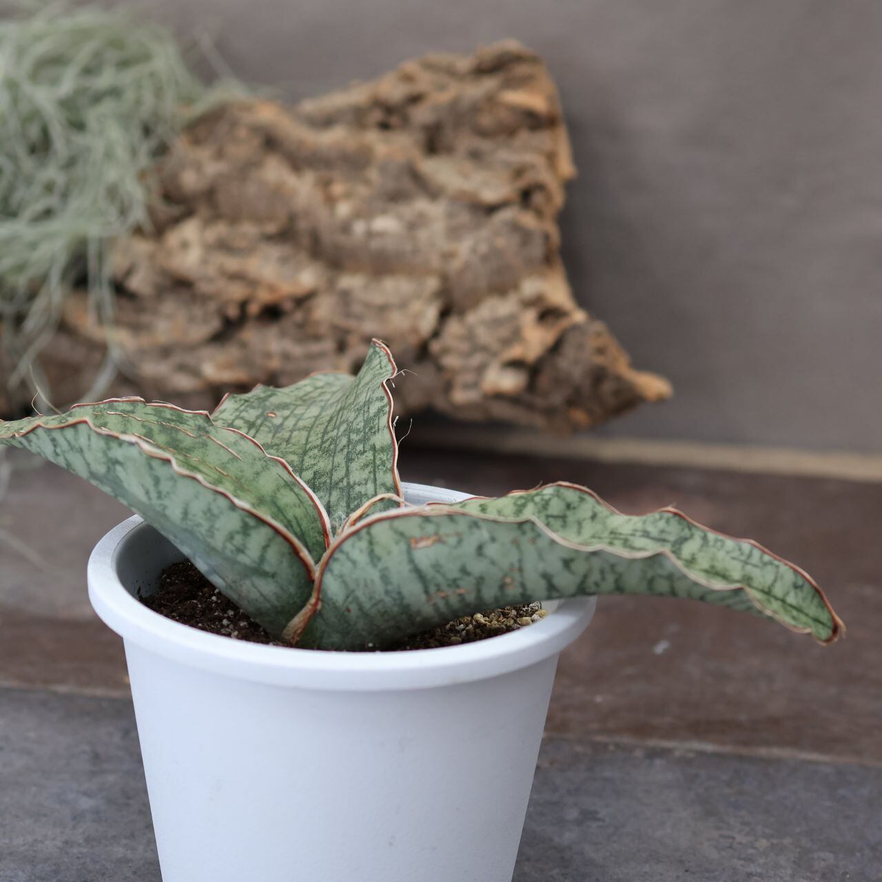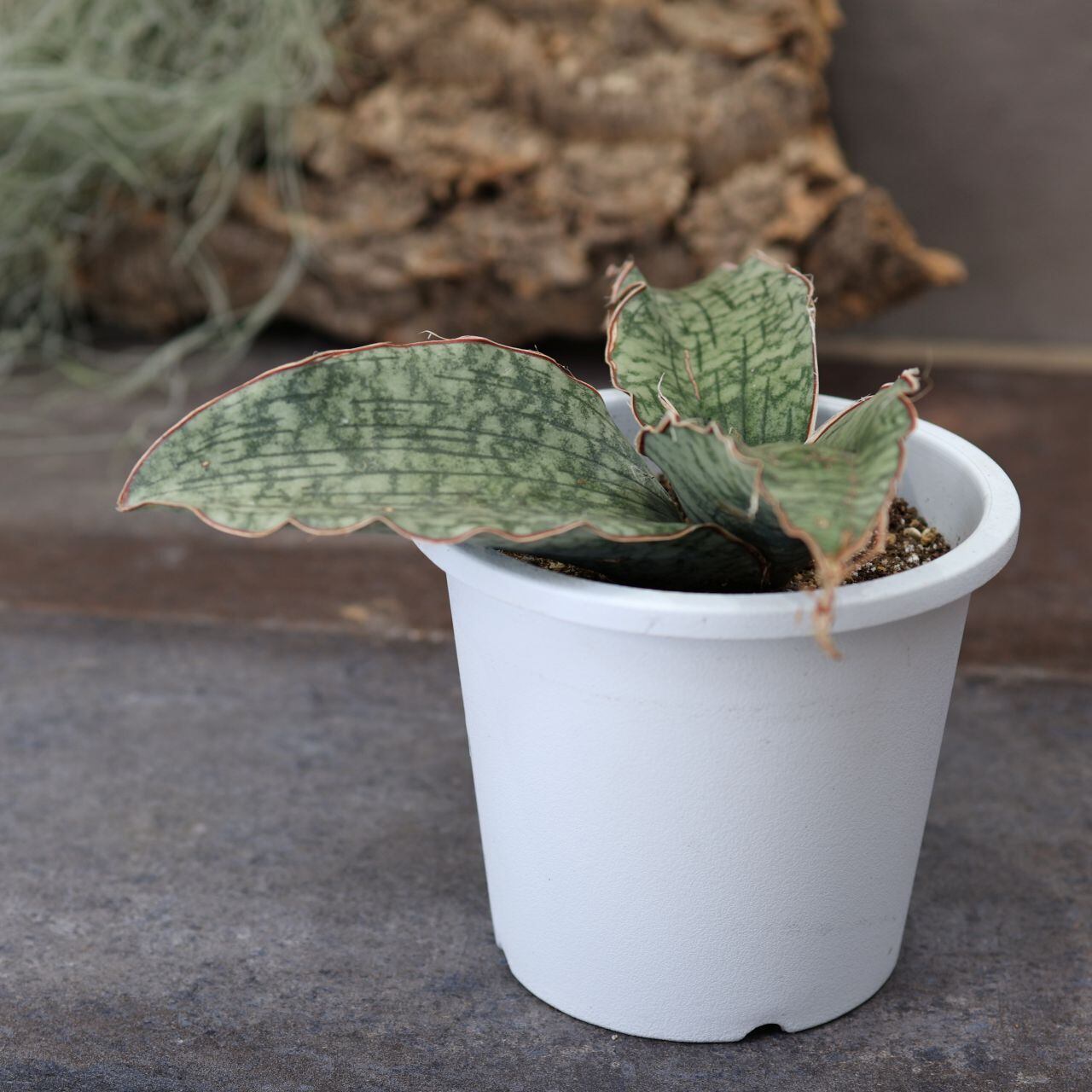 流通量が少なく、サンスベリアの中でも特に希少な品種として知られており、他にはない個性的な雰囲気を楽しめます。インテリアグリーンとしても人気が高く、置くだけで空間が洗練された印象に。