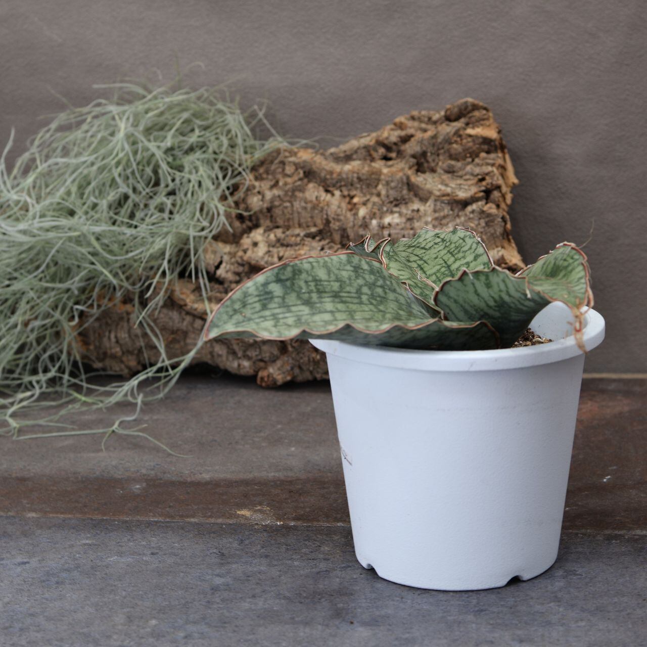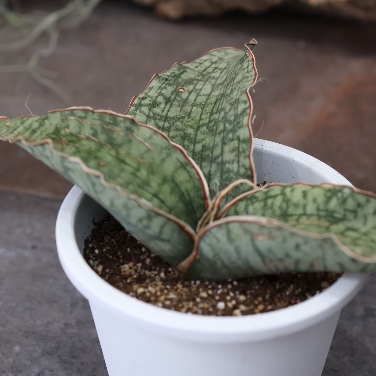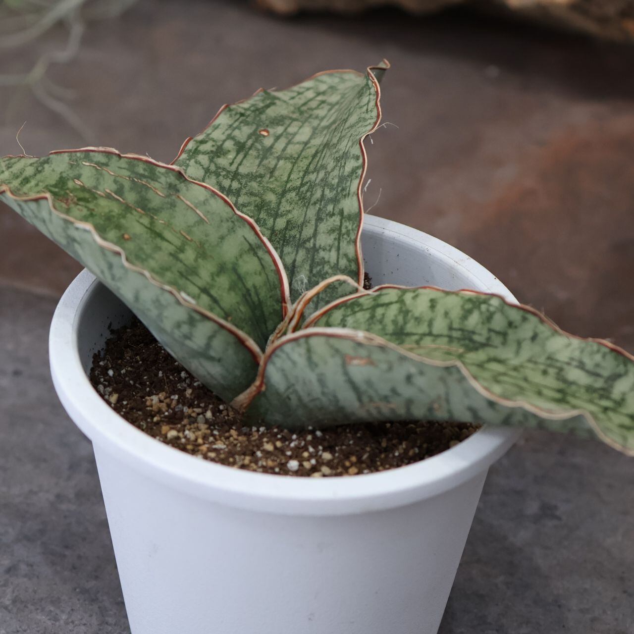 流通量が少なく、サンスベリアの中でも特に希少な品種として知られており、他にはない個性的な雰囲気を楽しめます。インテリアグリーンとしても人気が高く、置くだけで空間が洗練された印象に。