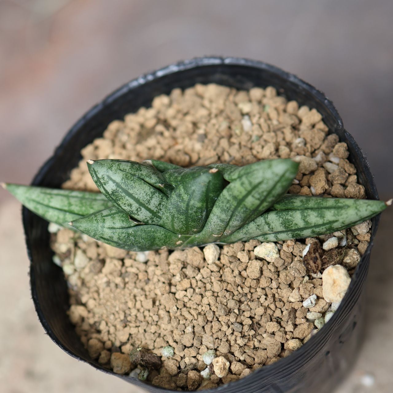 ボーンセレンシスというと「恐竜の手」と表現されるほど太くて長い指の様に葉が伸びますが、本種は株の基部からあまり葉が伸びずコンパクトなまま生育が落ち着きます。