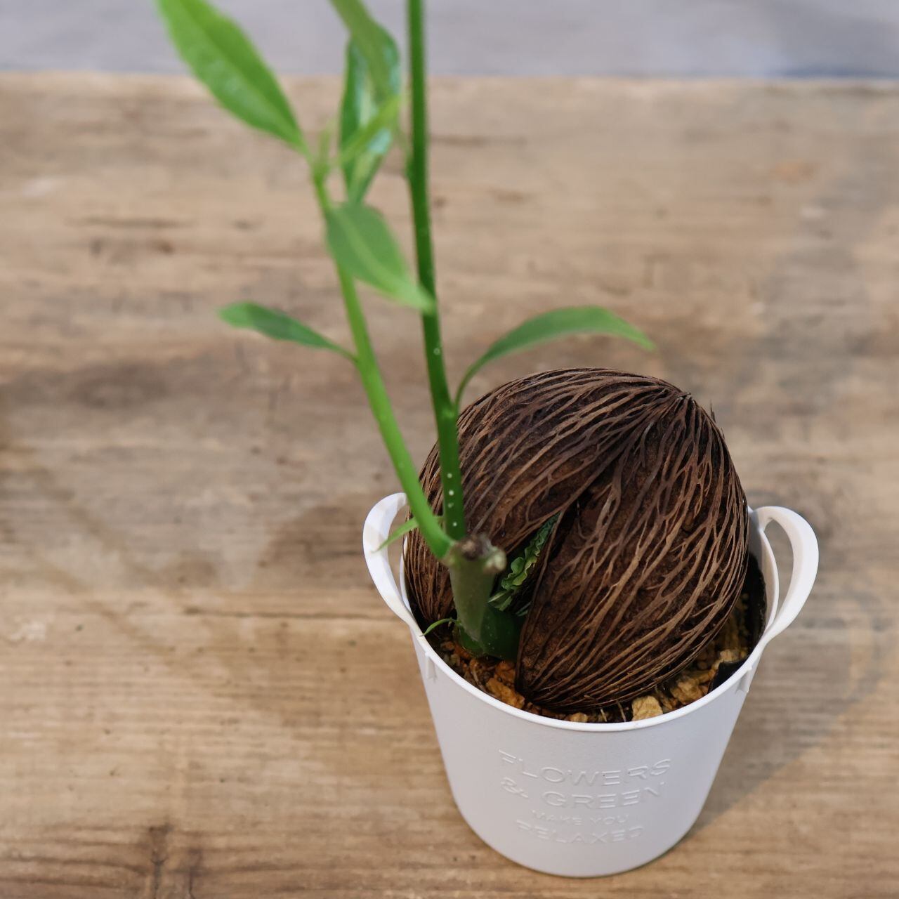 白く美しい花や個性的な実をつけることでも知られ、南国ムード漂うガーデンやリゾート空間づくりに最適。