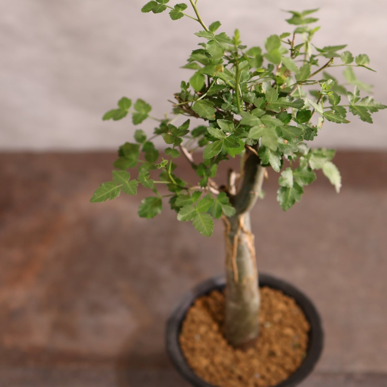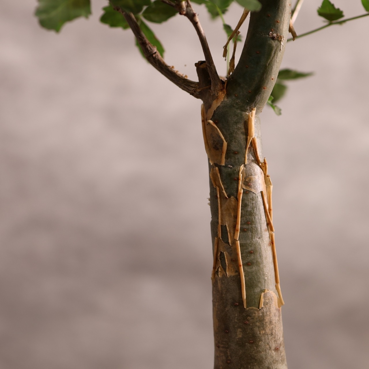 『ブルセラ ファガロイデス』は、ユニークな幹肌とバランスの良い枝ぶりで人気の塊根植物。成長とともに樹皮が自然にはがれ、まるでアンティークのオブジェのような風合いが楽しめます。小さな盆栽のような佇まいは、空間にそっと落ち着きを与えてくれます。