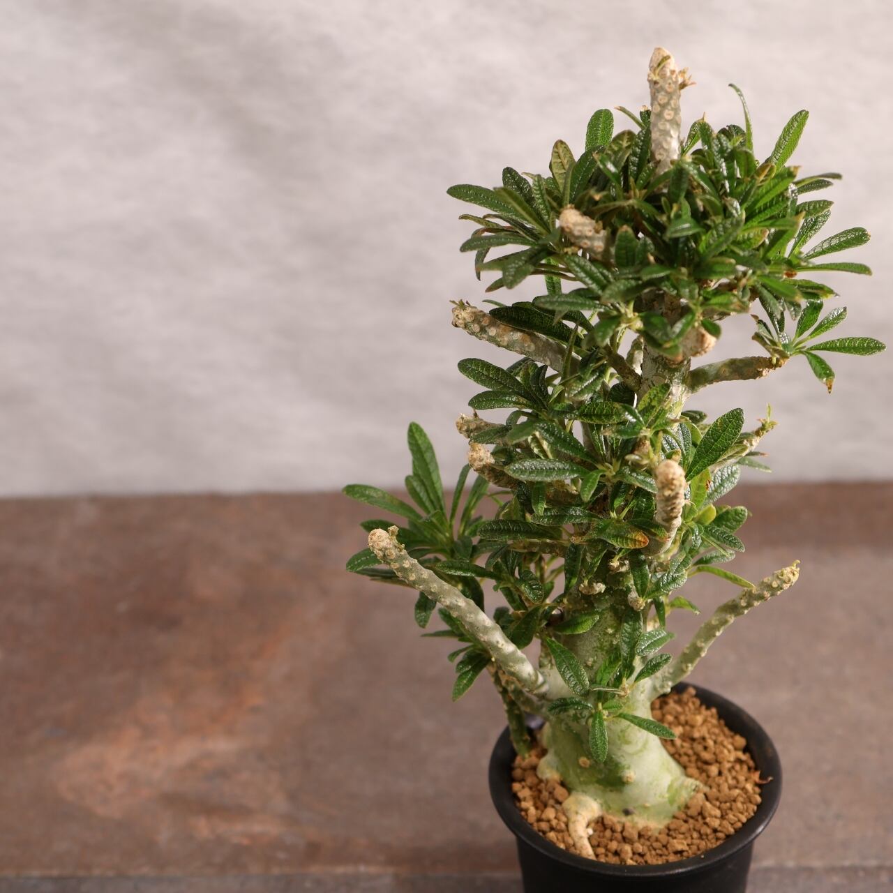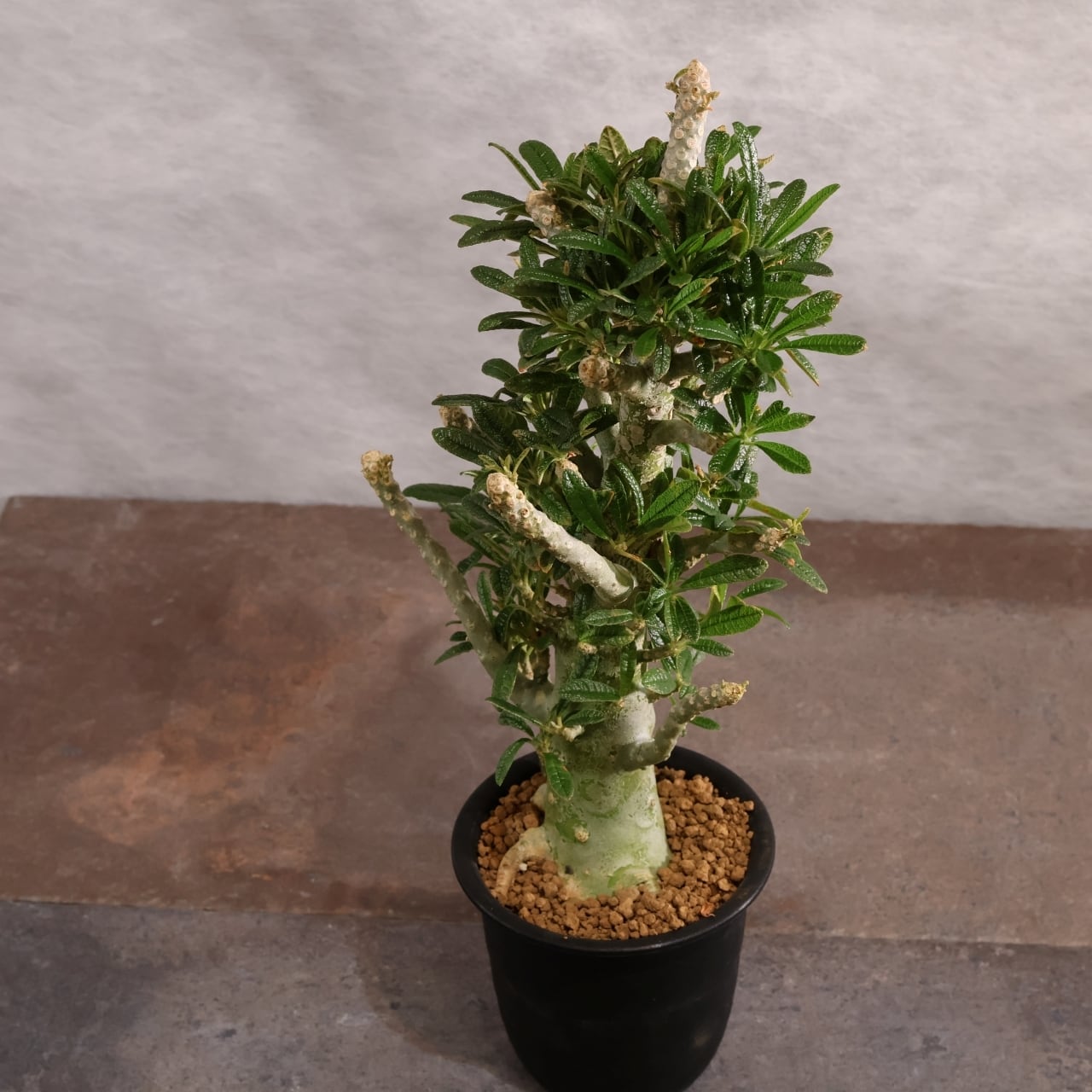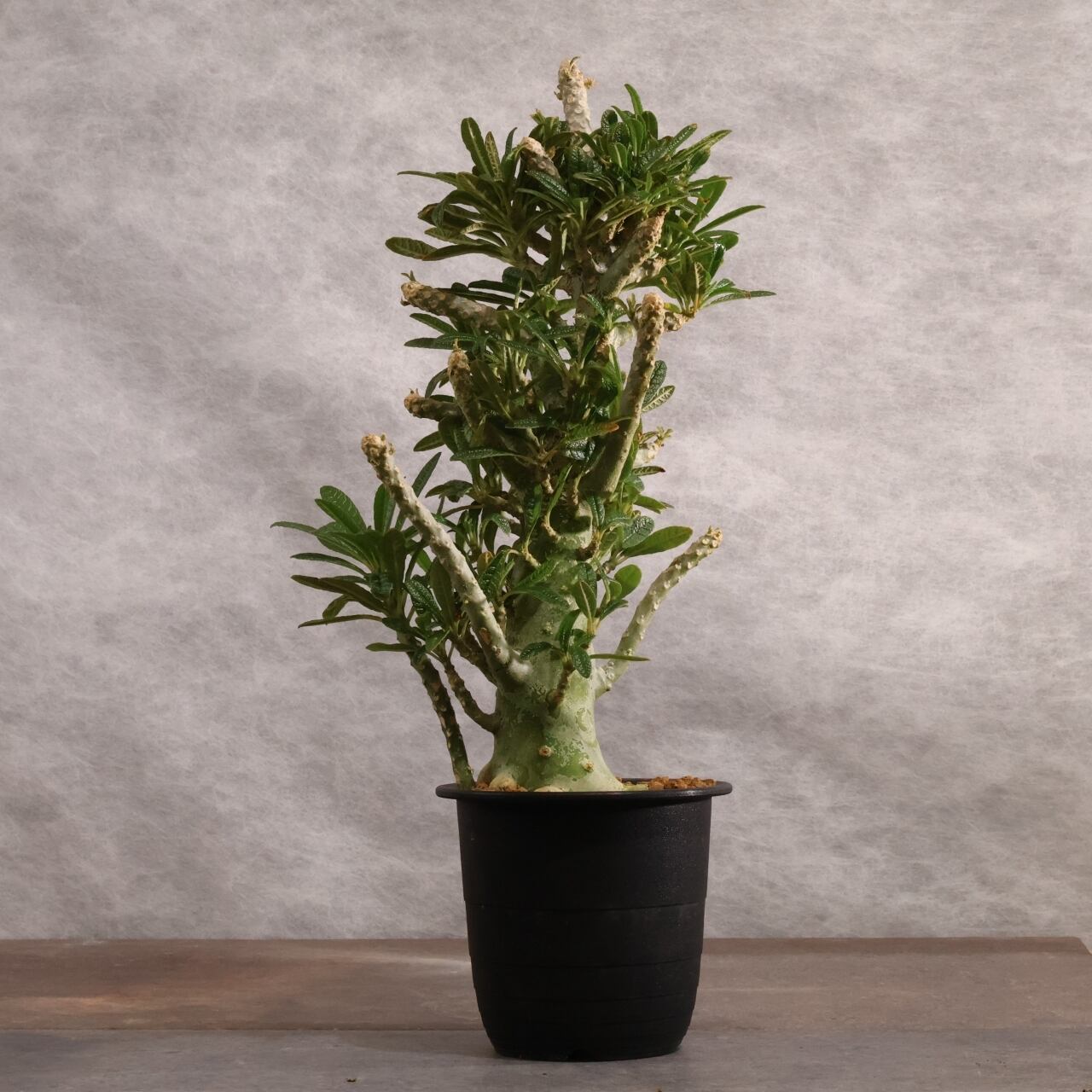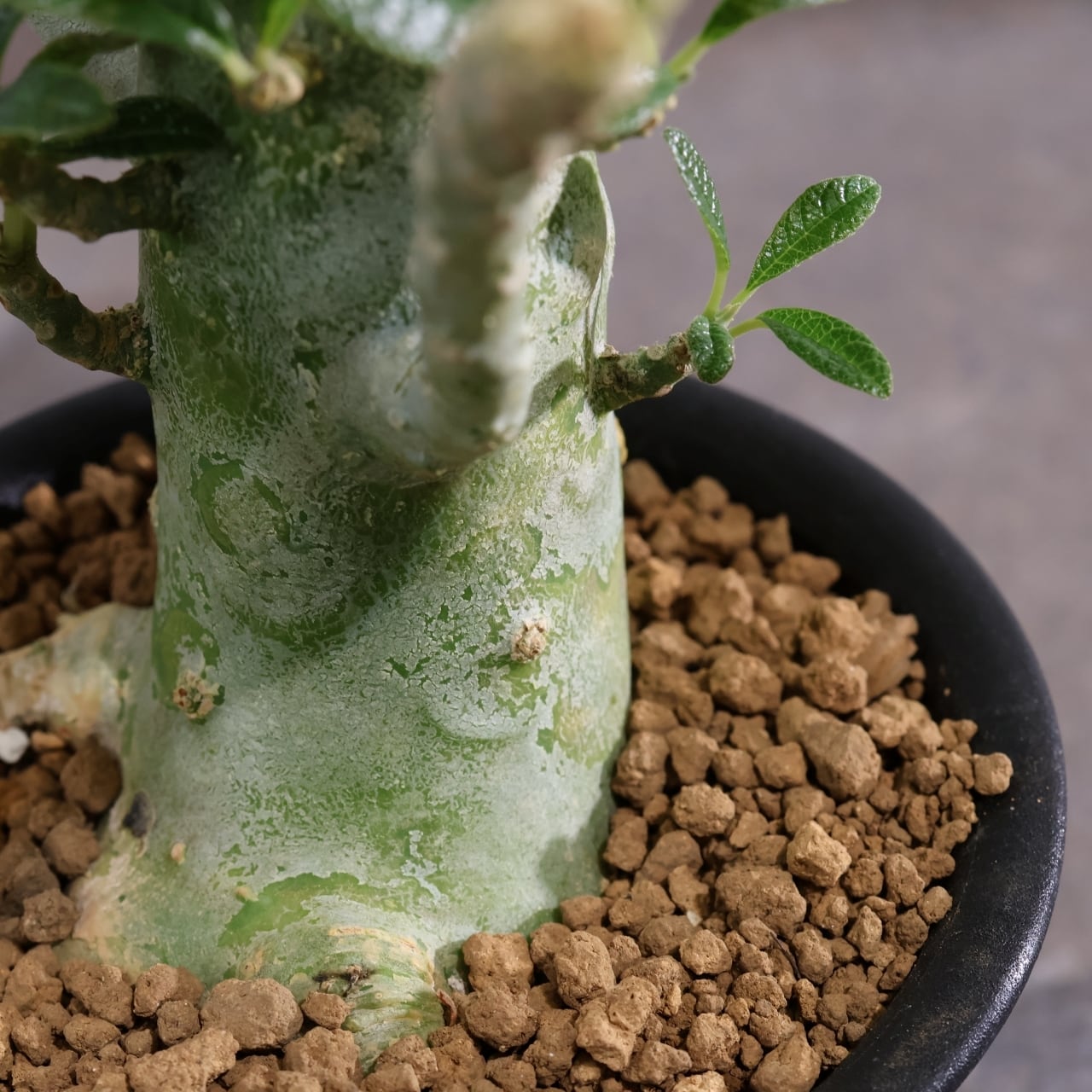 幹は年数をかけてじっくりと太り、樹形が完成していく“育てるロマン”に満ちた逸品。乾燥に強く、管理も比較的シンプル。条件が整えば、星型のユニークな花を咲かせてくれることもあります。