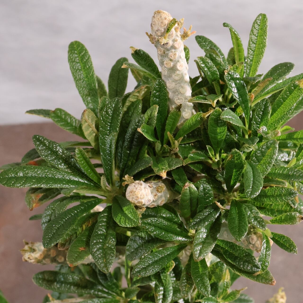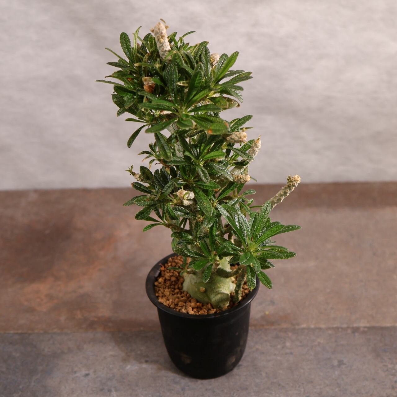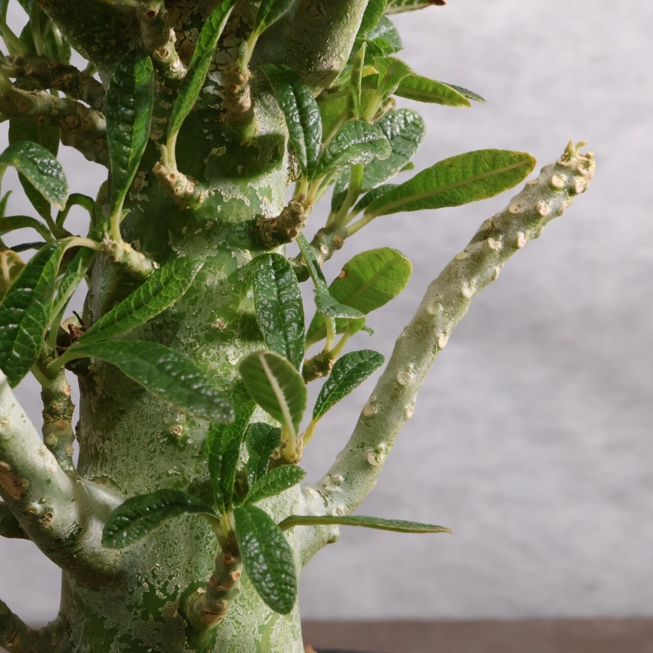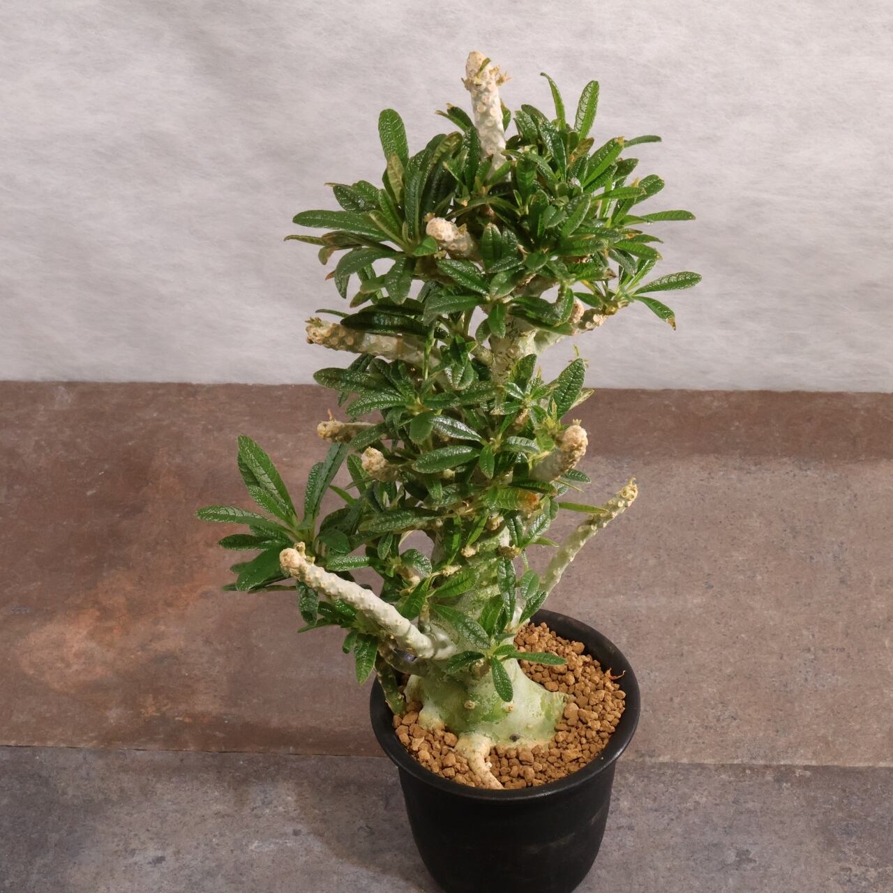 幹は年数をかけてじっくりと太り、樹形が完成していく“育てるロマン”に満ちた逸品。乾燥に強く、管理も比較的シンプル。条件が整えば、星型のユニークな花を咲かせてくれることもあります。