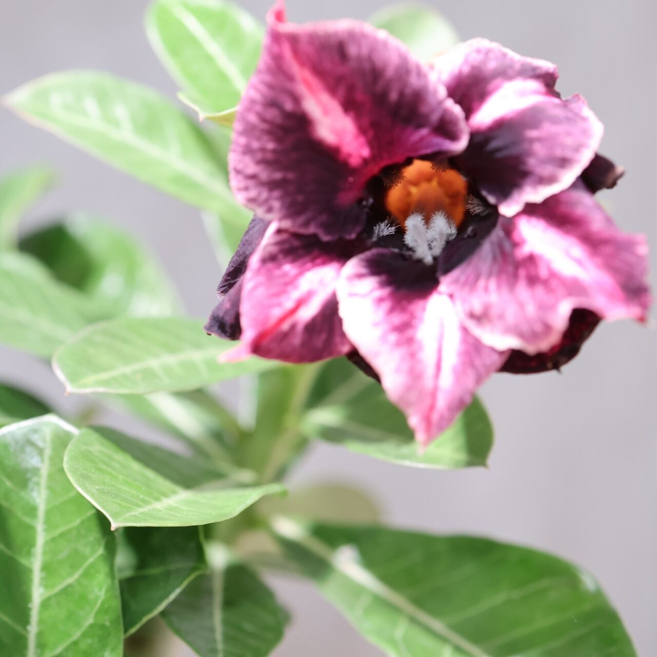 ぽってりと丸みを帯びた幹(コーデックス)に、鮮やかな花を咲かせるその姿から「砂漠のバラ Desert Rose」とも呼ばれます。
