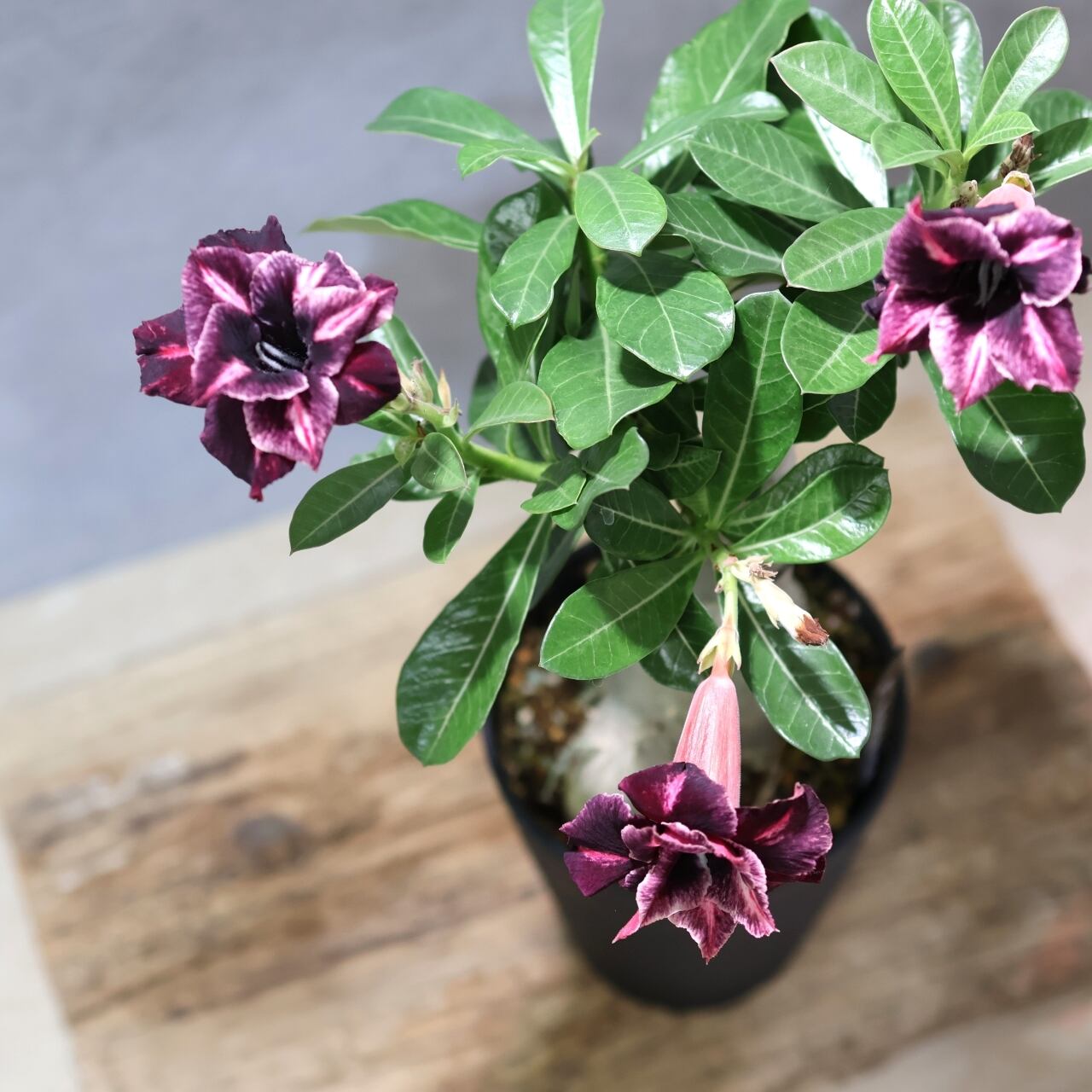 ‘KN185’は、アデニウムの中でも花色の美しさとバランスのとれた形状で人気のあるタイ発の交配選抜品種です。