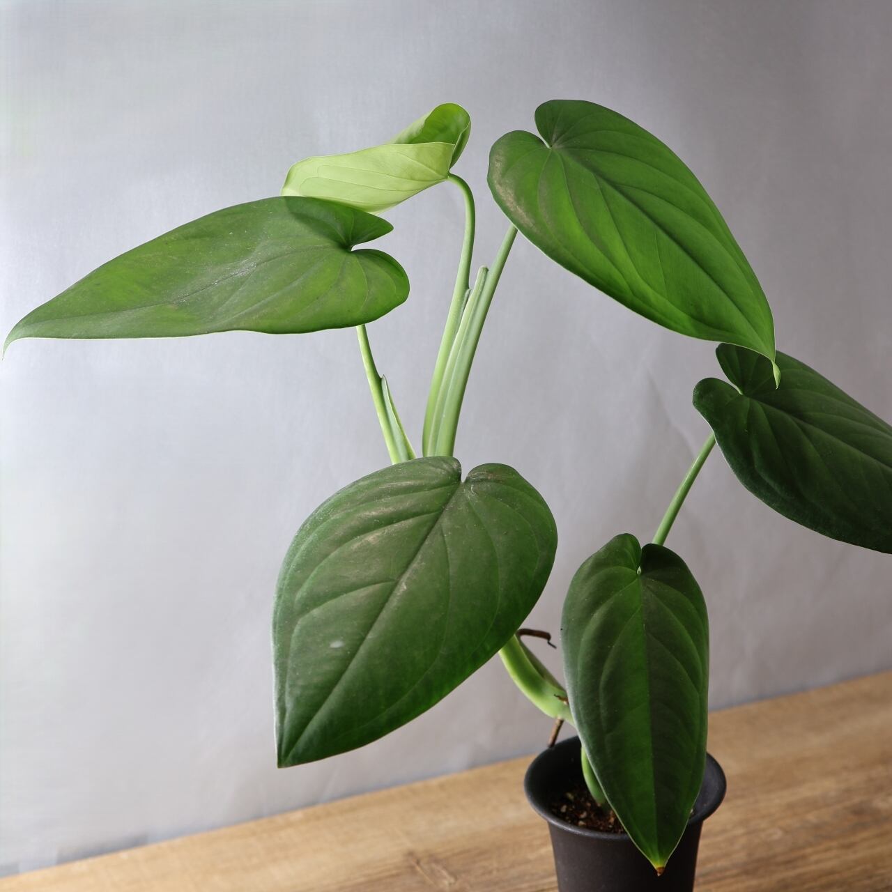 成長するとツル性で登る性質があるため、支柱仕立てにも向いており、インテリアグリーンとしても映える一鉢です。