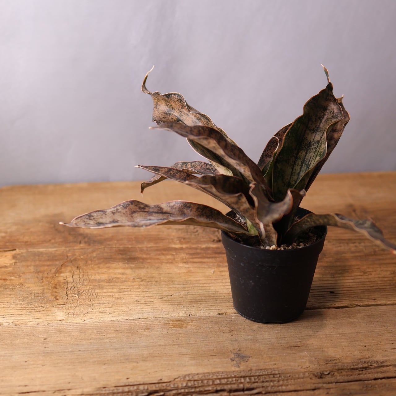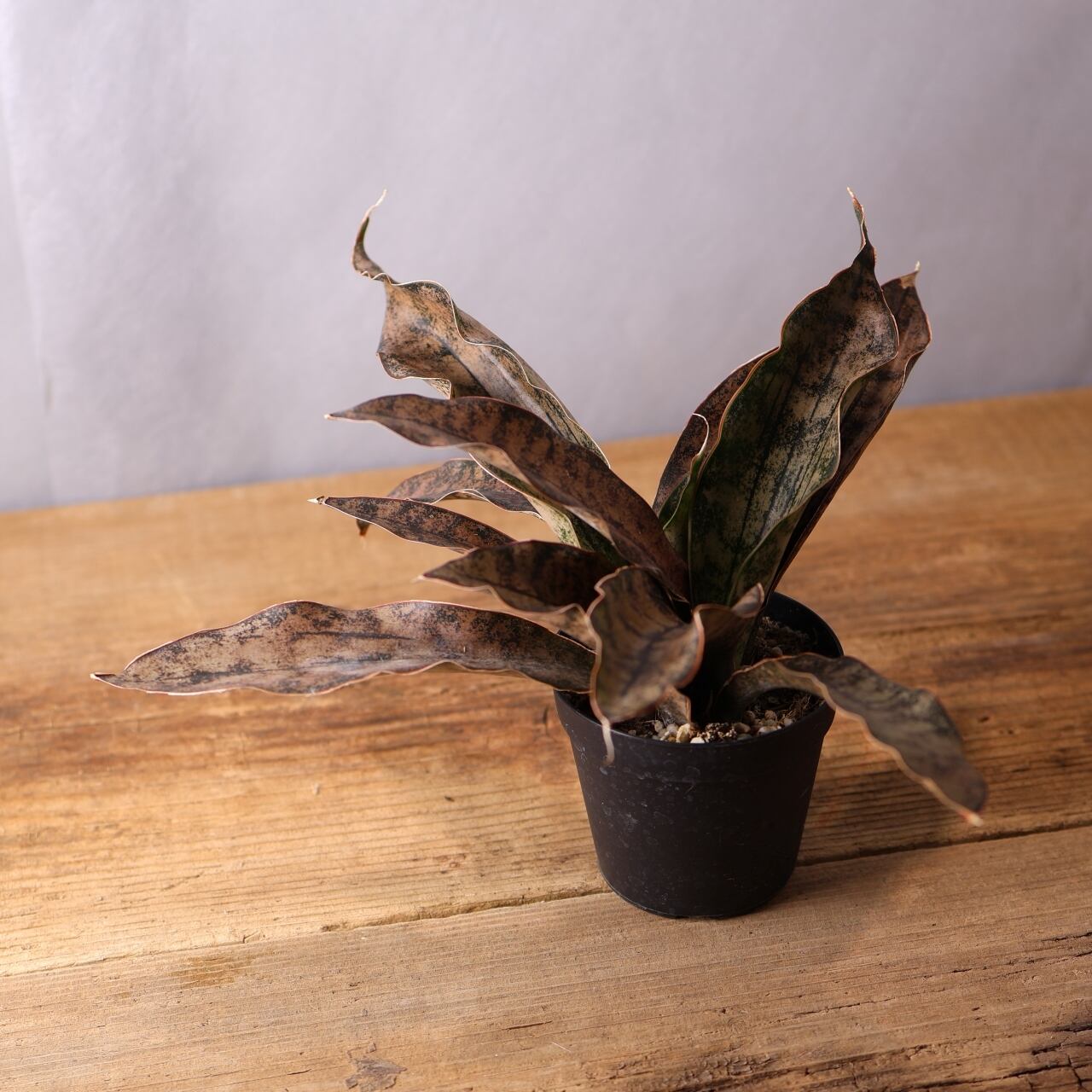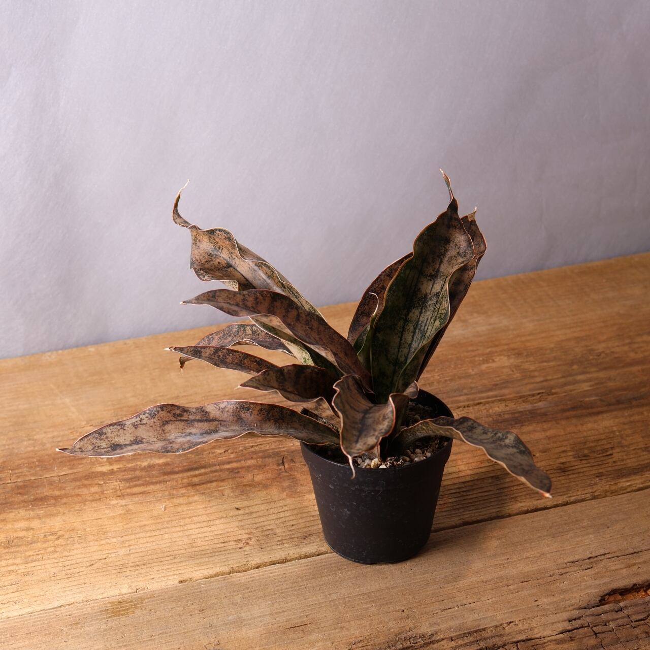 銅色がかったメタリックブラウンの葉色が特徴的な、希少なサンスベリア品種。