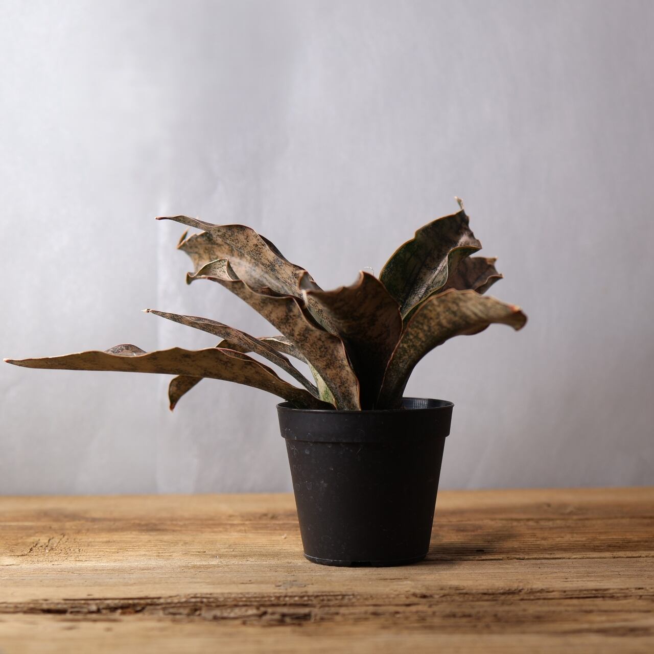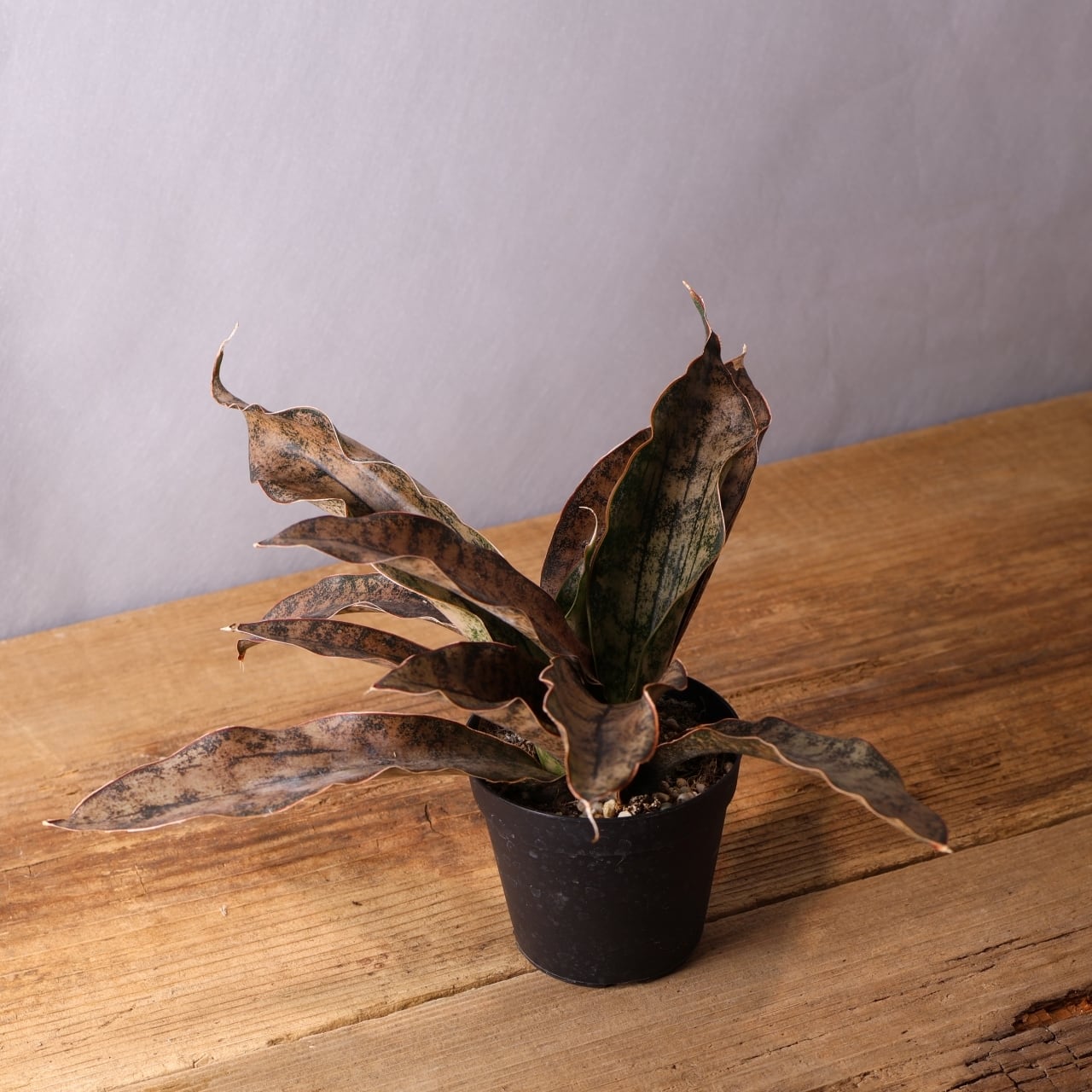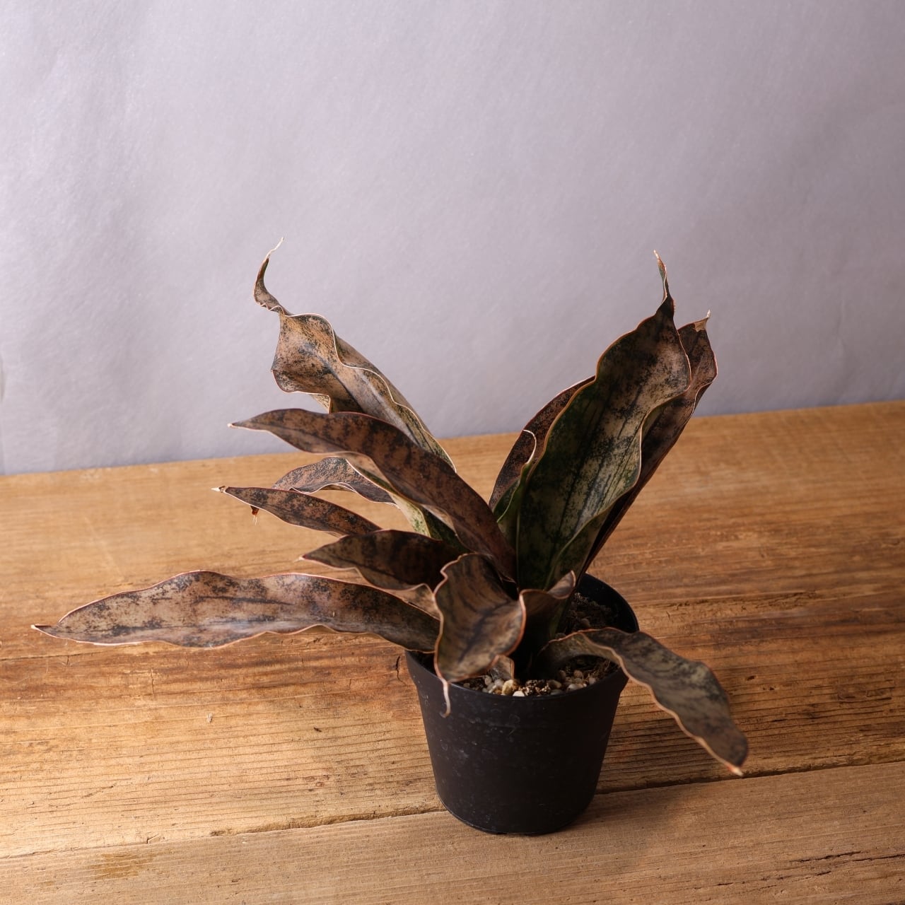 銅色がかったメタリックブラウンの葉色が特徴的な、希少なサンスベリア品種。