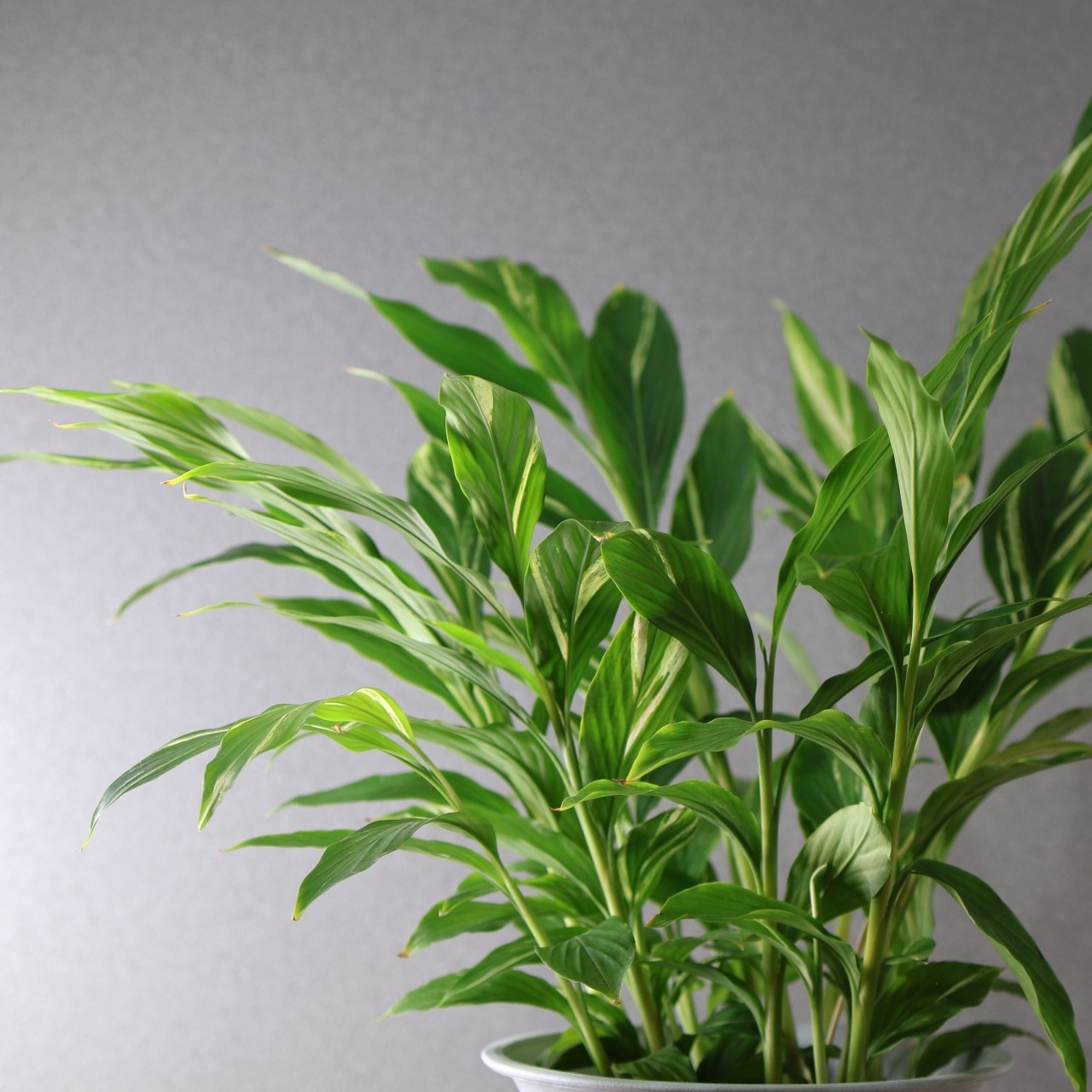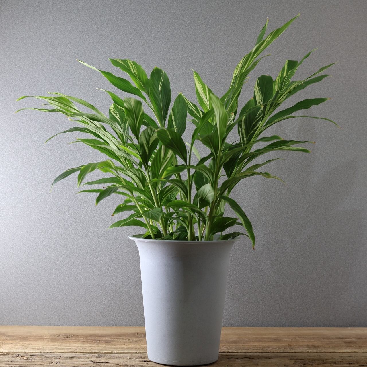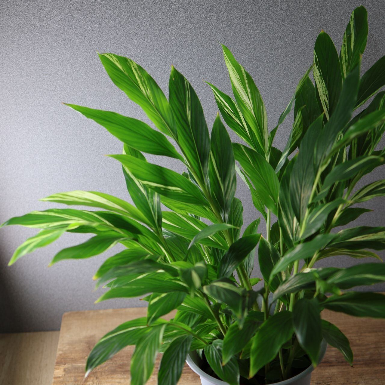 その中でも「斑入り月桃」は、鮮やかなグリーンに黄色や白のストライプが入った美しい葉を持ち、観賞価値が高い品種です。