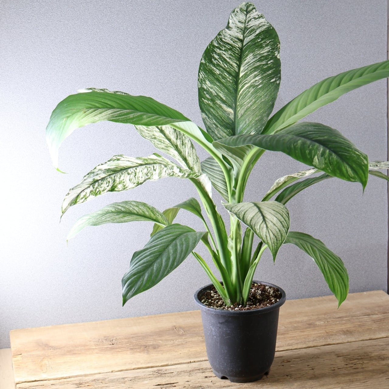 358 大判リーフに描かれた、白の芸術『スパティフィラム センセーション バリエガータ』観葉植物 【送料無料】