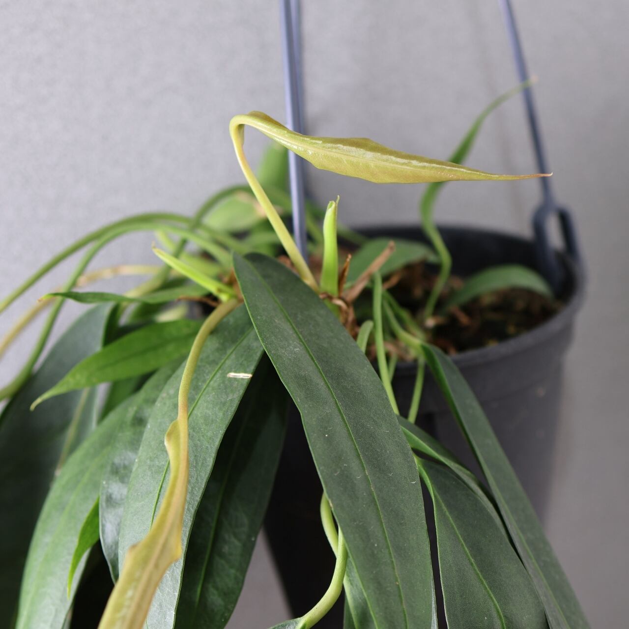 葉は吊り下がるように伸び、リボン状にねじれながら展開していくため、まるで「グリーンの滝」のような優雅さを楽しめます。