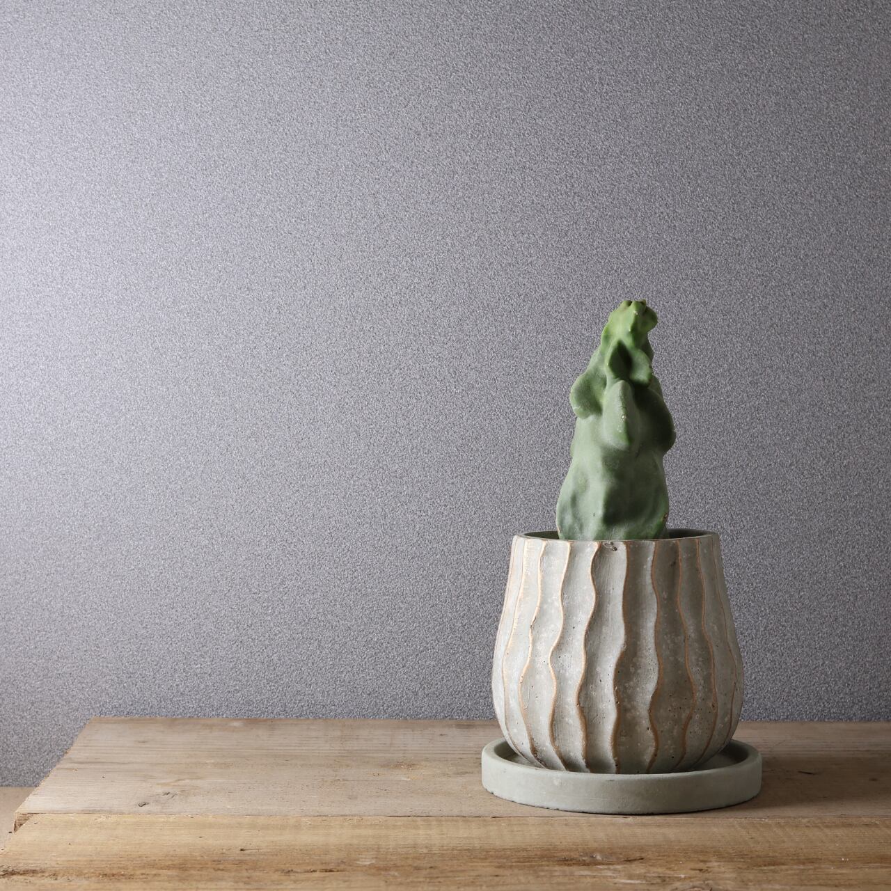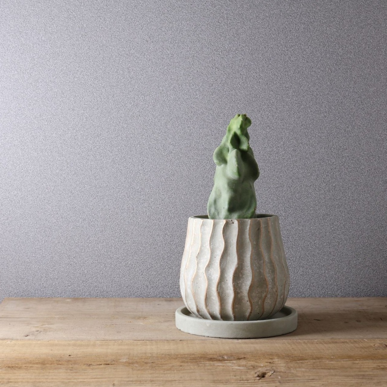 波打つ独特の雰囲気が魅力の鉢との組み合わせは
