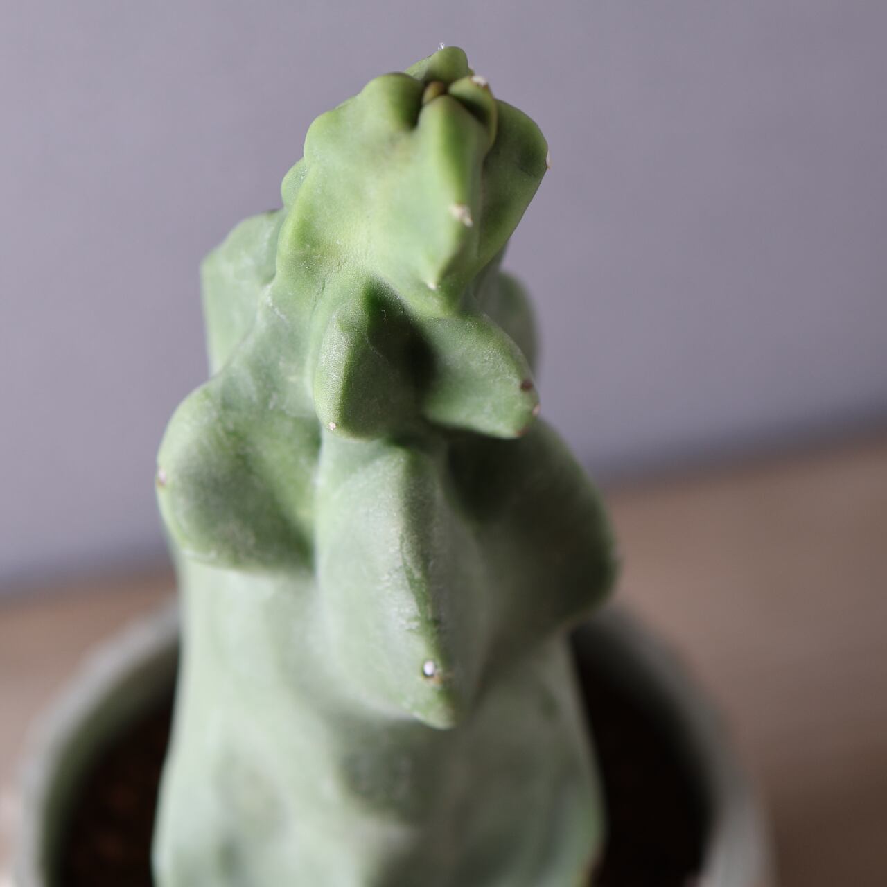 茎は灰緑色から青緑色を帯び、成長とともにぷっくりとした節を重ねるように姿を変え、愛嬌のある表情を見せます。