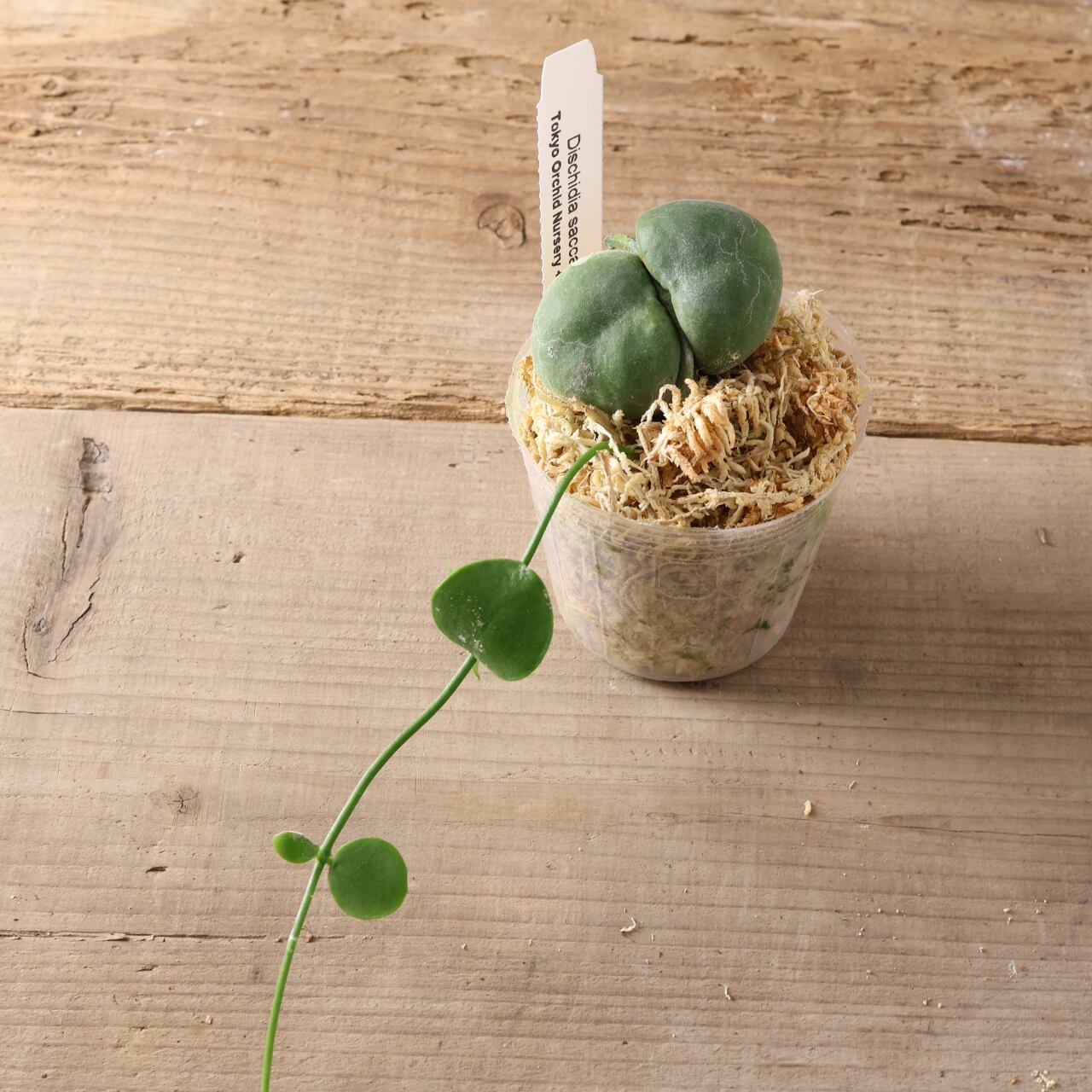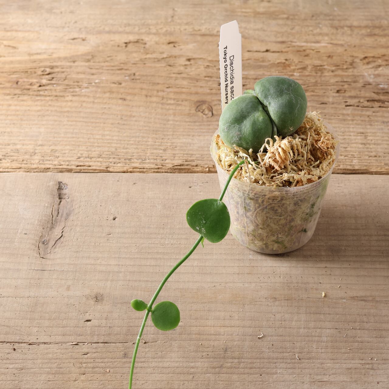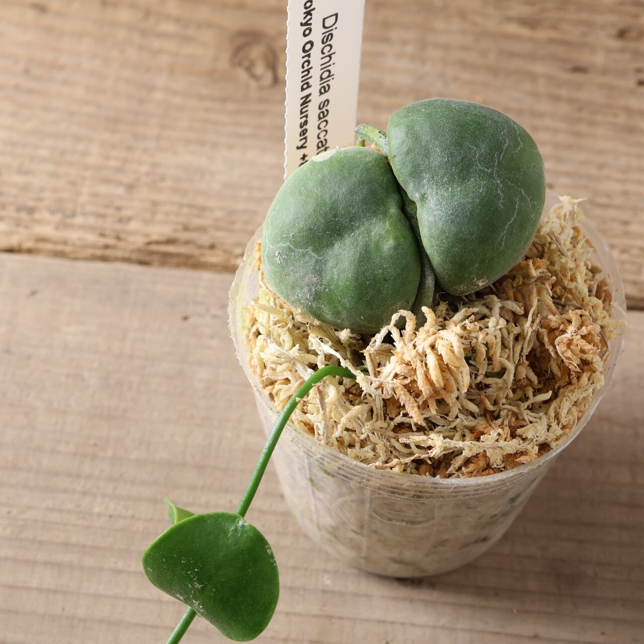 ディスキディアの中でもユニークな姿を持つ種類で、厚みのある小さな葉の一部が袋状に膨らむのが特徴です。