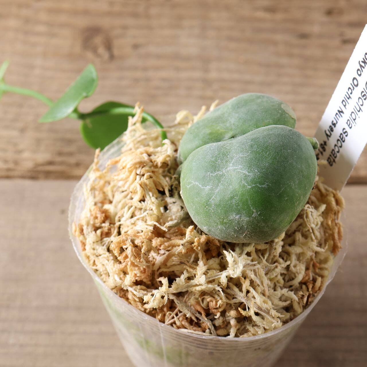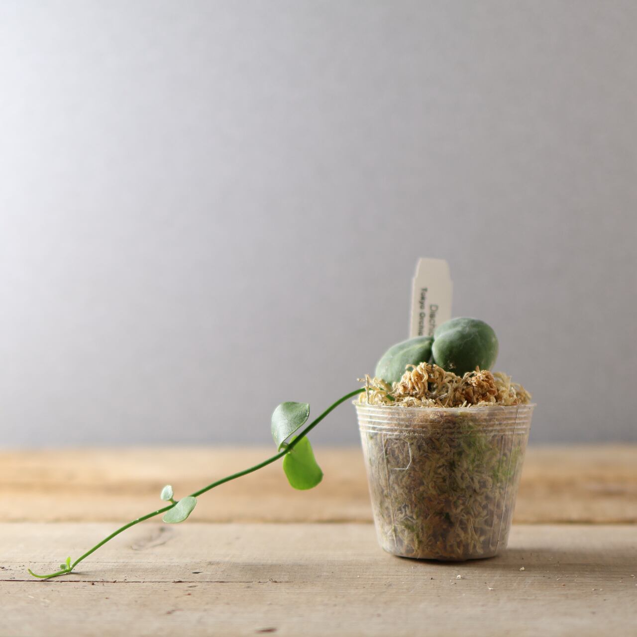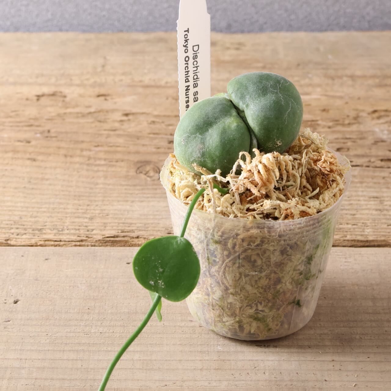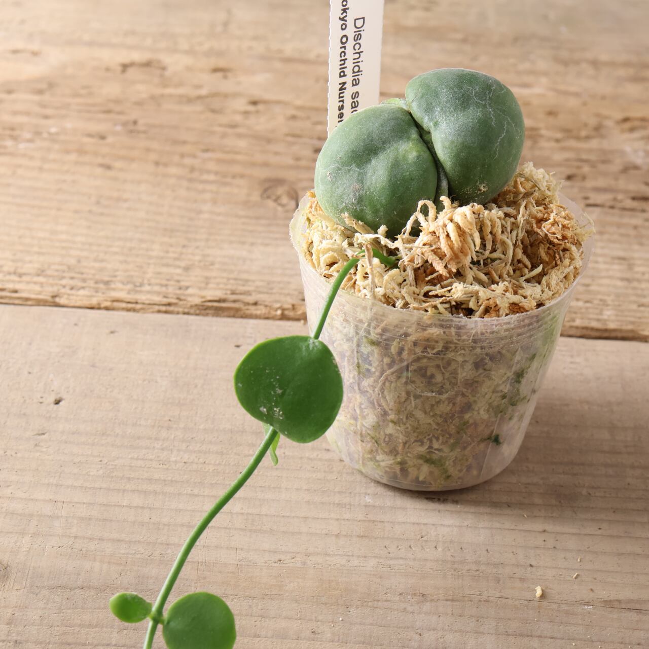 ディスキディアの中でもユニークな姿を持つ種類で、厚みのある小さな葉の一部が袋状に膨らむのが特徴です。
