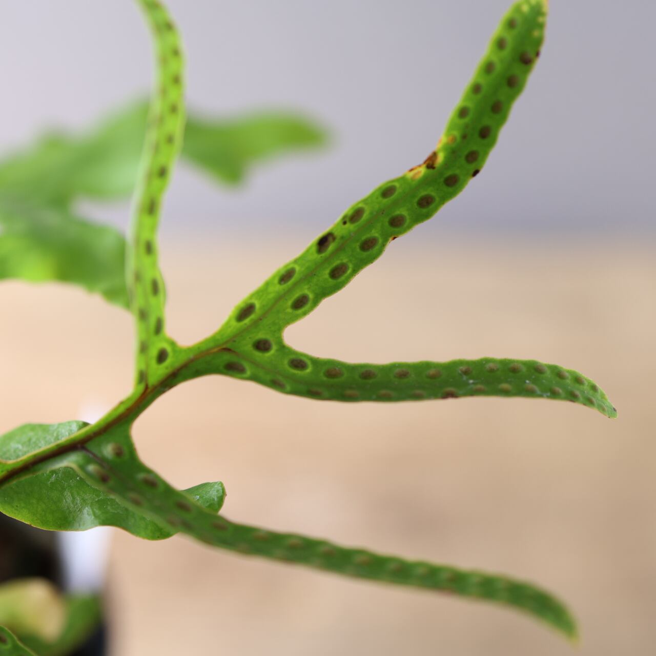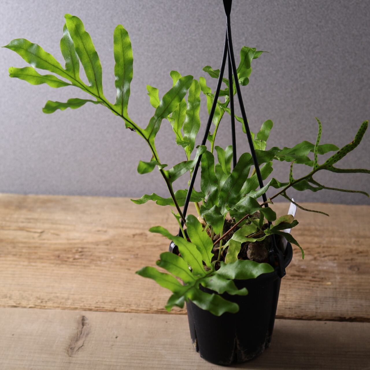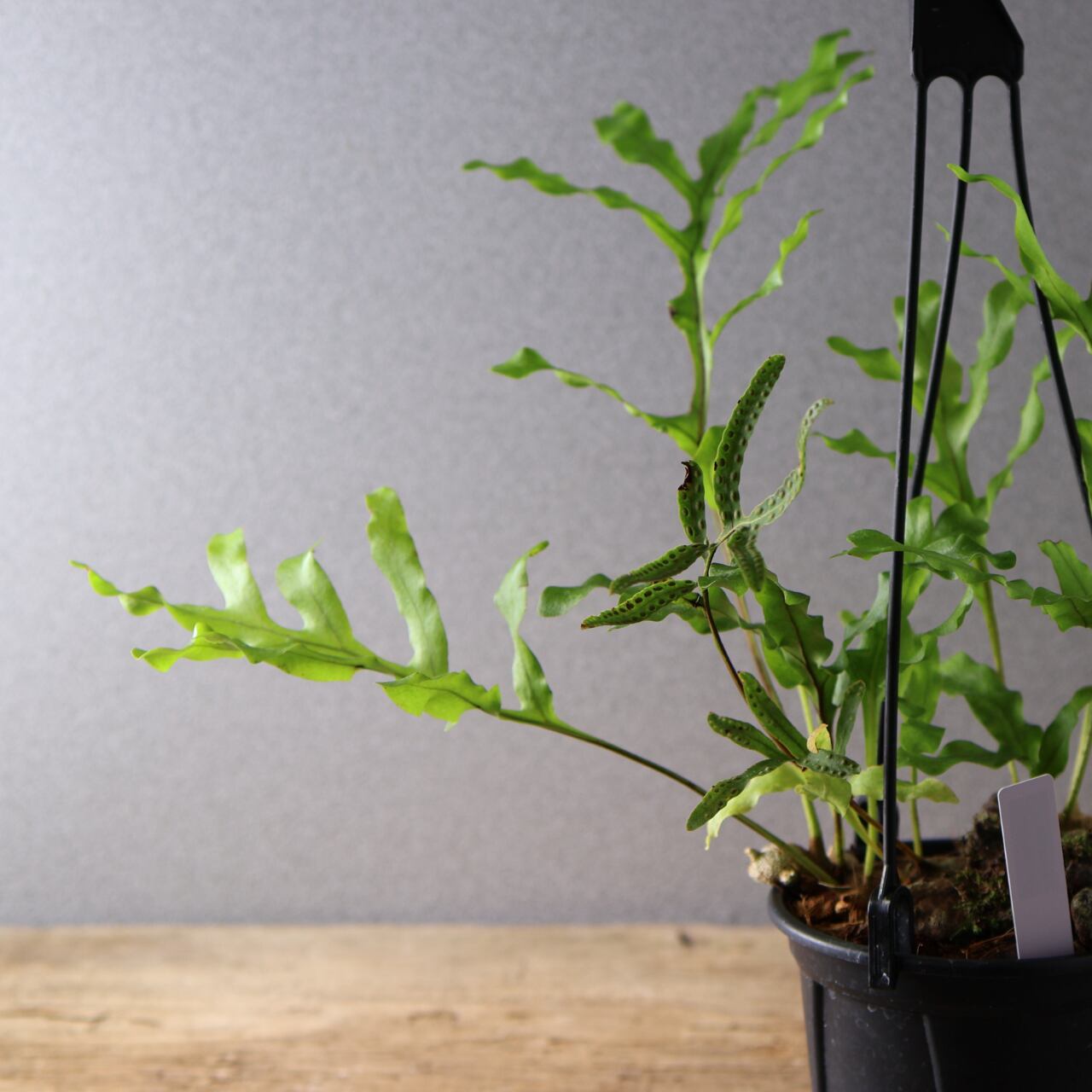 レカノプテリス・クルスタセアは、東南アジア原産の着生シダで、独特な塊状の根茎と厚みのある硬めの葉を持つのが特徴です。シダとしては珍しく、塊茎がやや多肉質でコロッとした質感を持ち、アリ植物(myrmecophyte)としてアリと共生することが知られています。