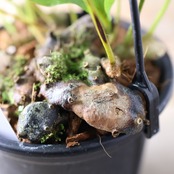 着生植物なので、コルクや流木に着けて育てると自然な姿に。用土は通気性の良いものを選び、過湿には注意します。温度は最低15℃以上を保つと安心です。