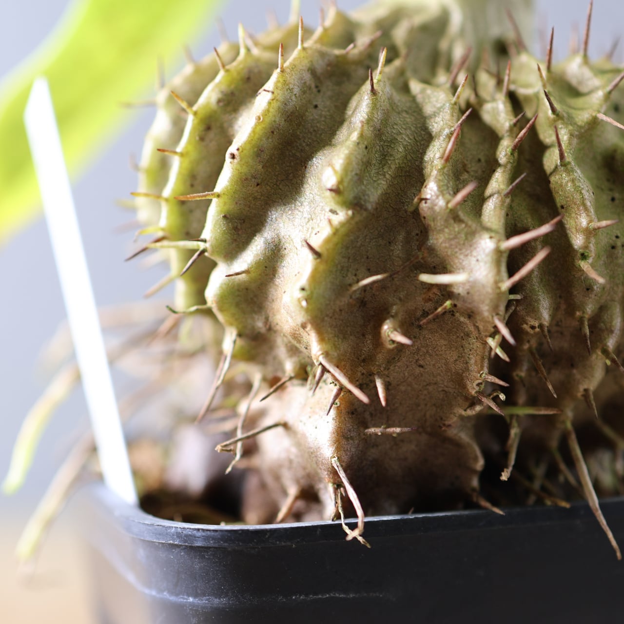 ミルメコディア・ツベローサは、インドネシア・ボルネオ島南部タバロン地域原産の着生多肉植物で、「アリ植物(myrmecophyte)」として知られています。塊茎はコブのように凸凹しており、内部にアリが巣を作ることができる構造を持っています。