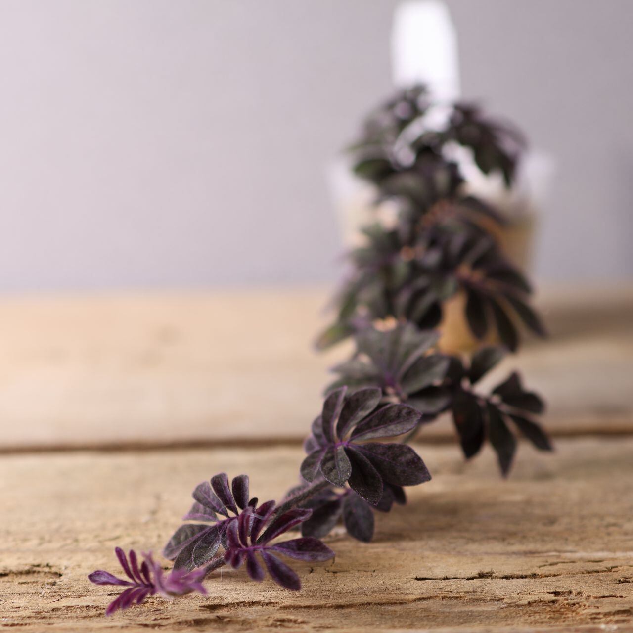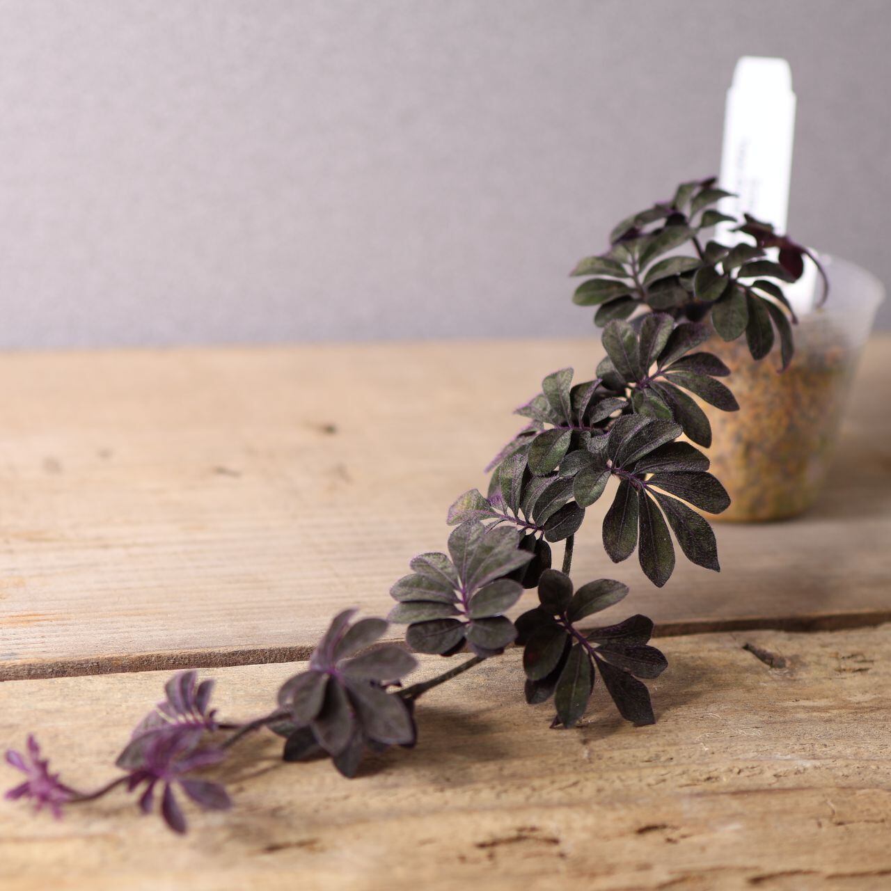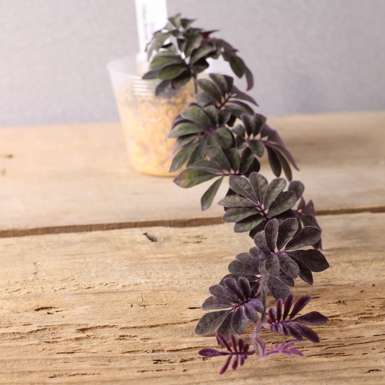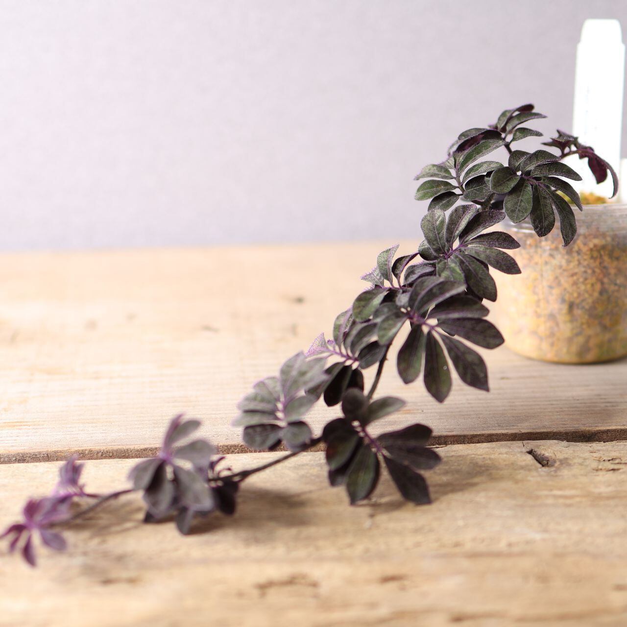 緑の葉に紫色の毛が生えた独特な色味は水槽で熱帯雨林を再現する際に締め色になります。