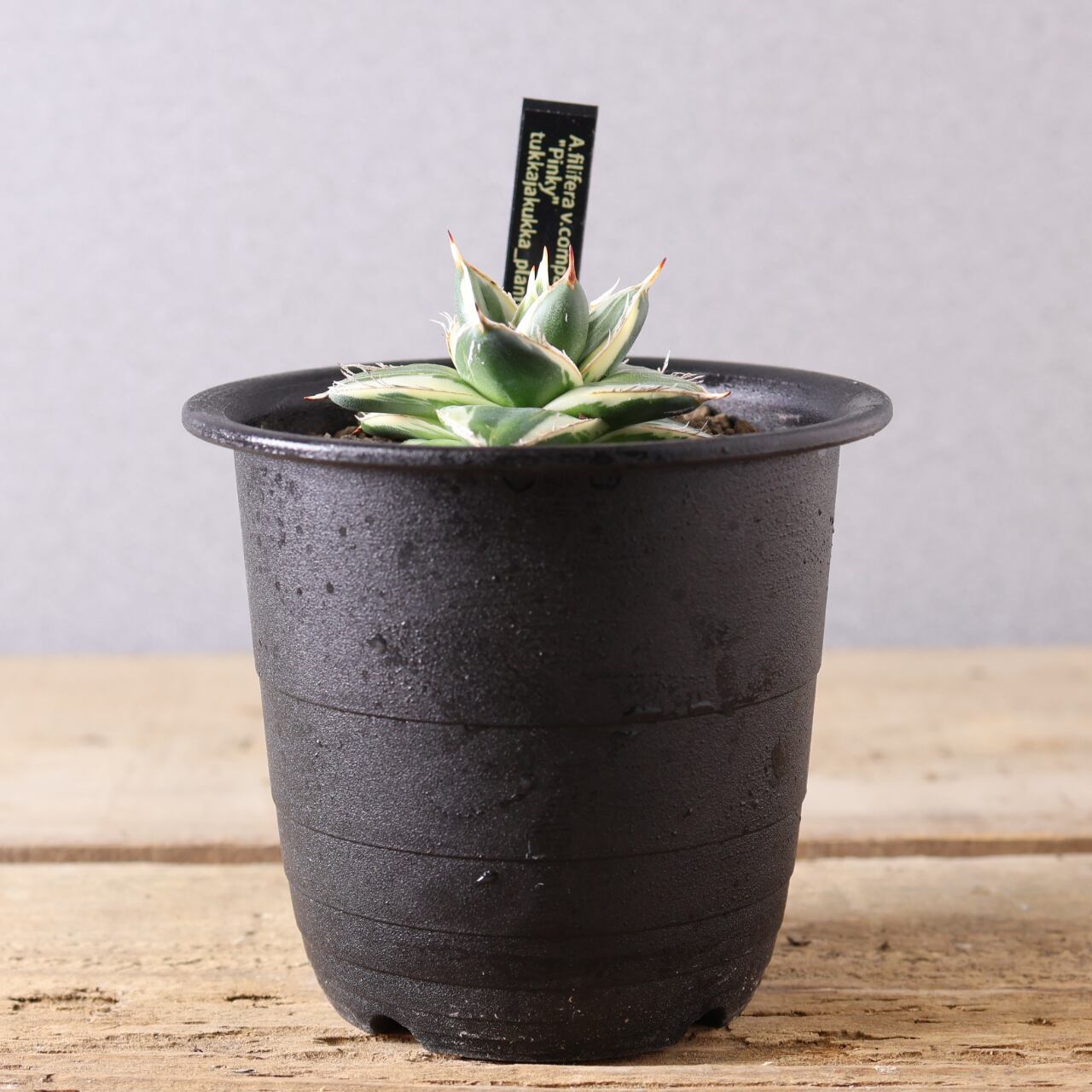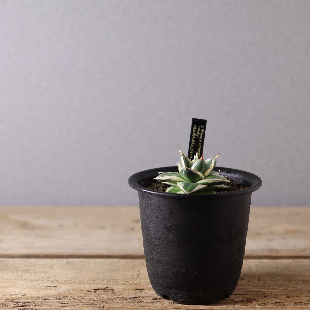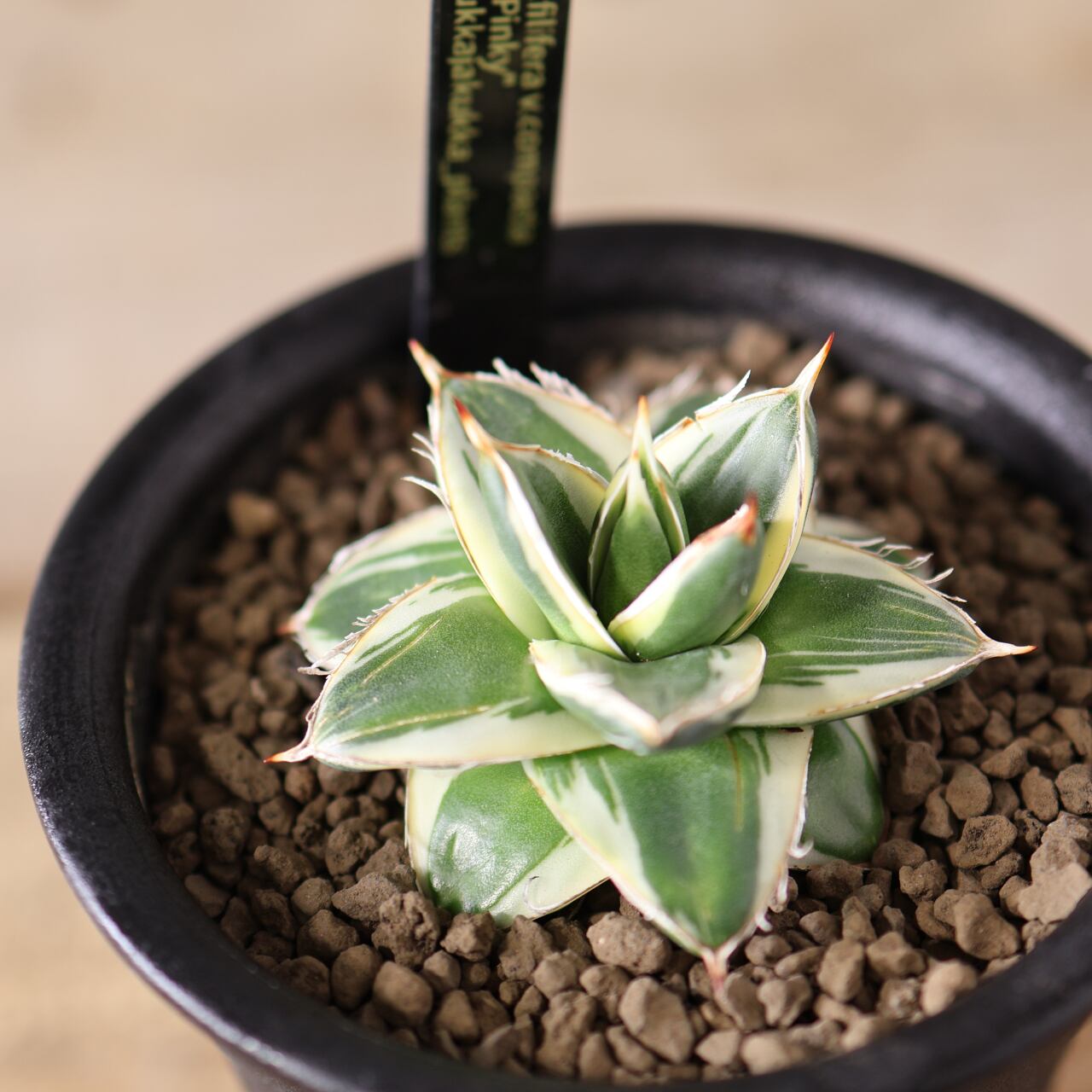 ピンキーとはわい性のアガベ ’王妃笹の雪 白覆輪’のことを指します。