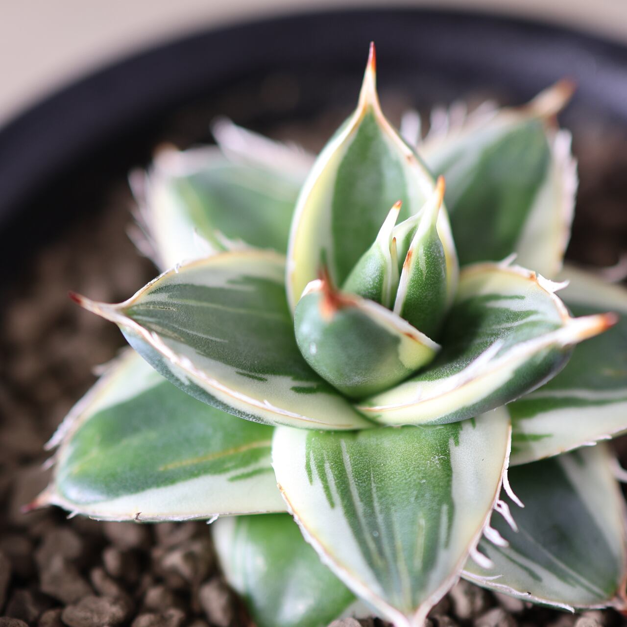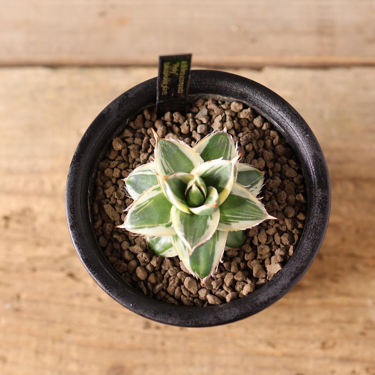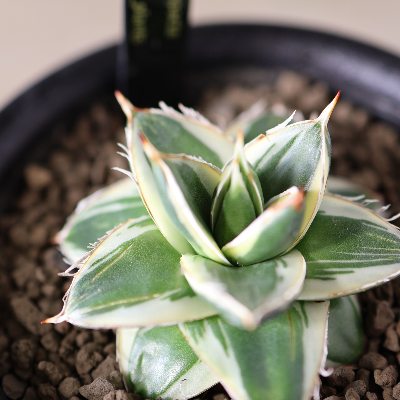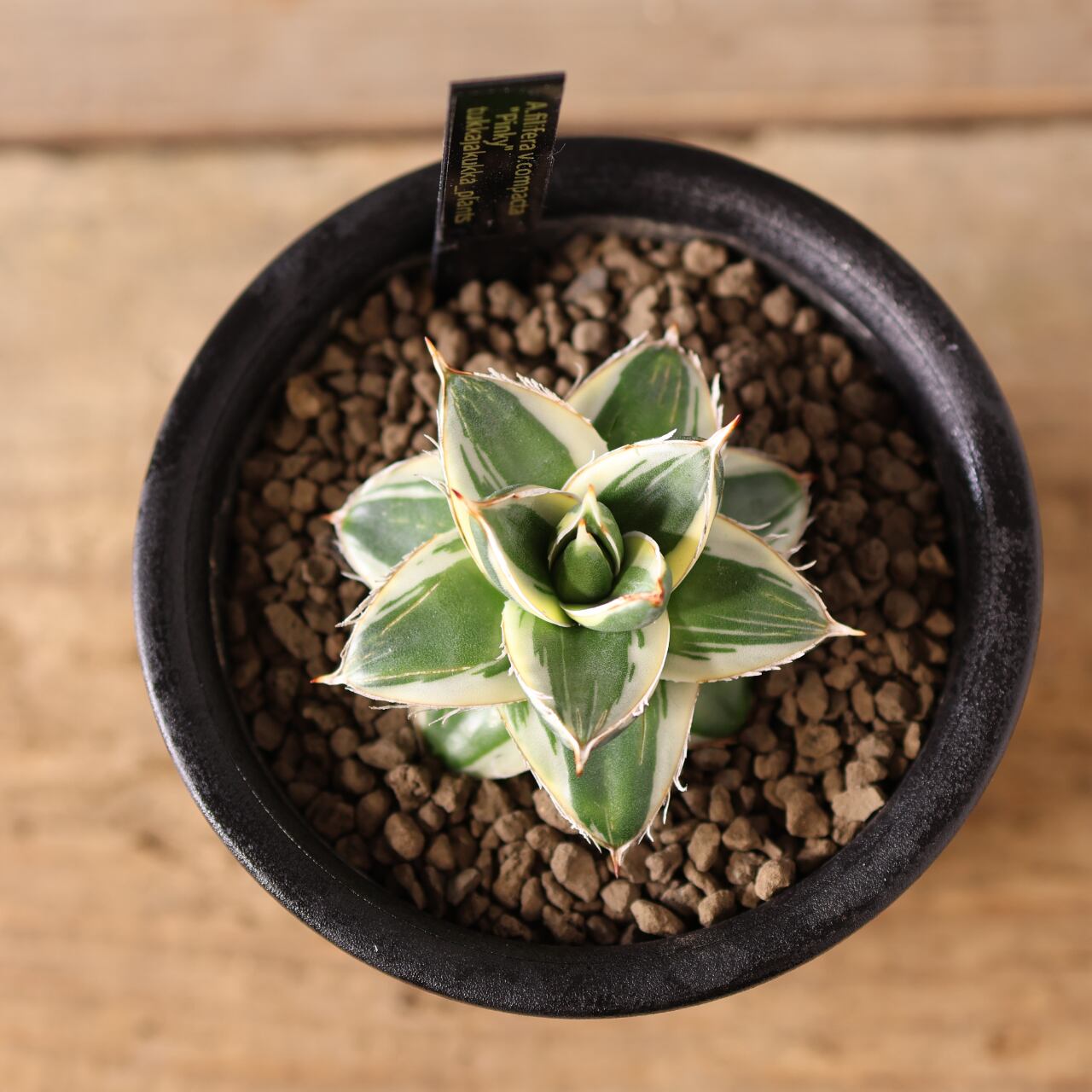 ピンキーとはわい性のアガベ ’王妃笹の雪 白覆輪’のことを指します。