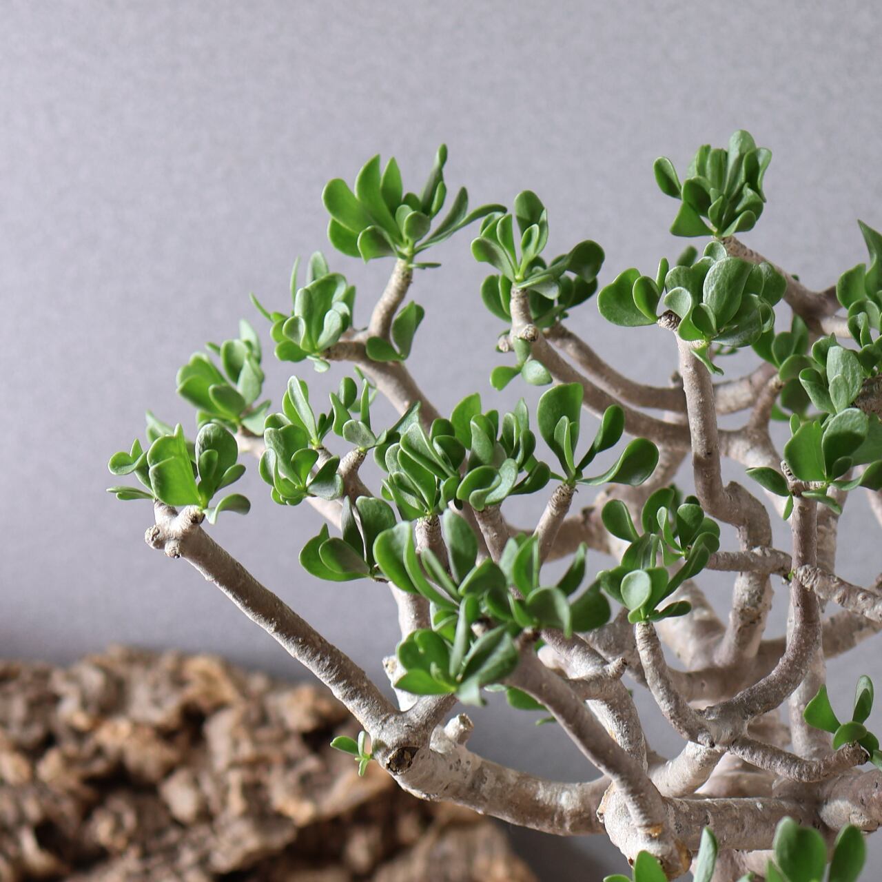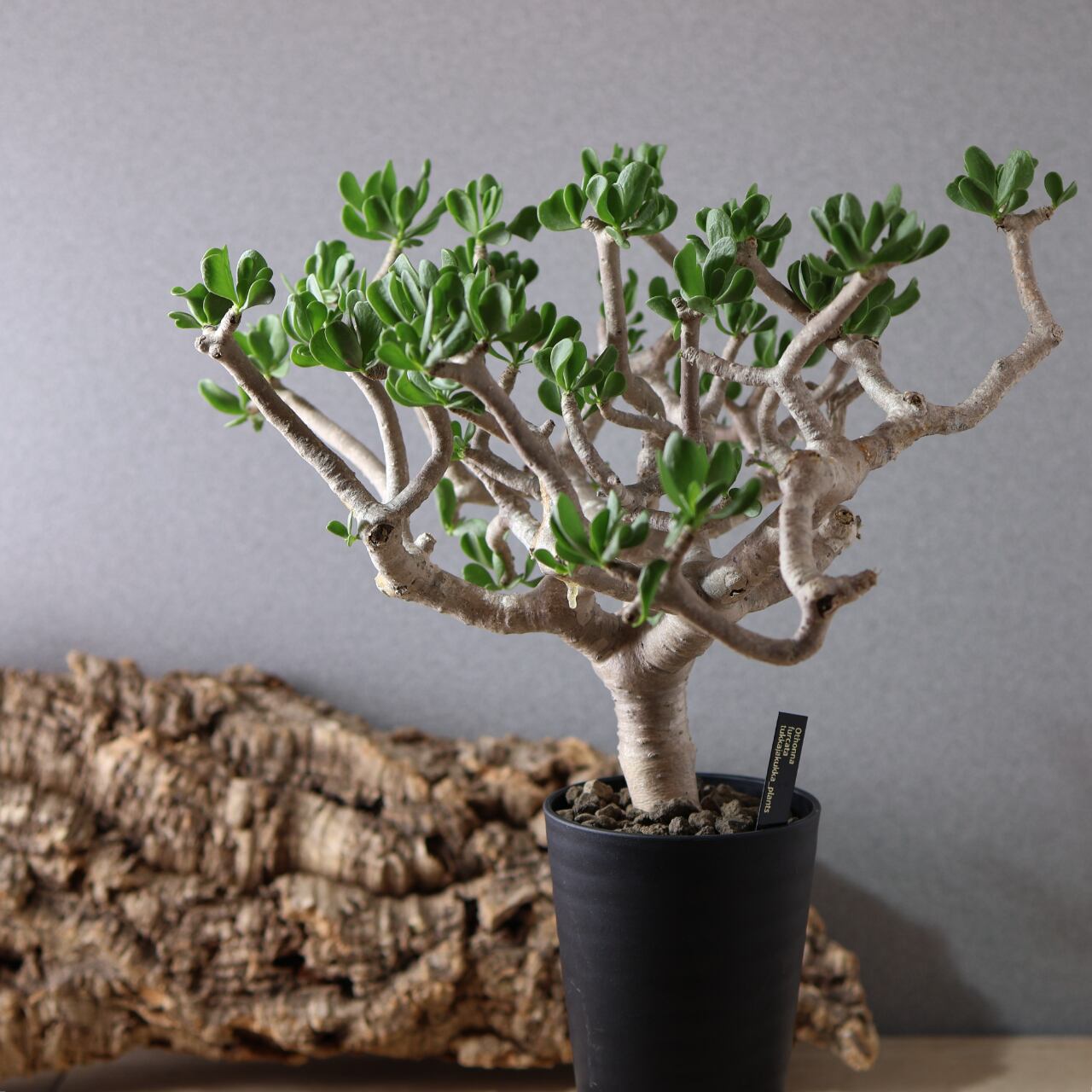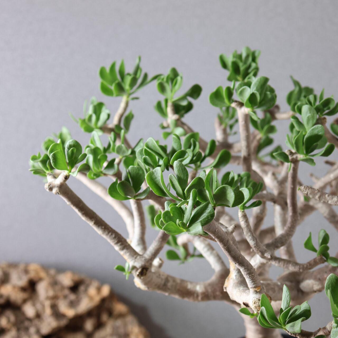 ミニチュアの小さな木のような株姿が特徴で、塊根というより潅木に近い形状をしています。