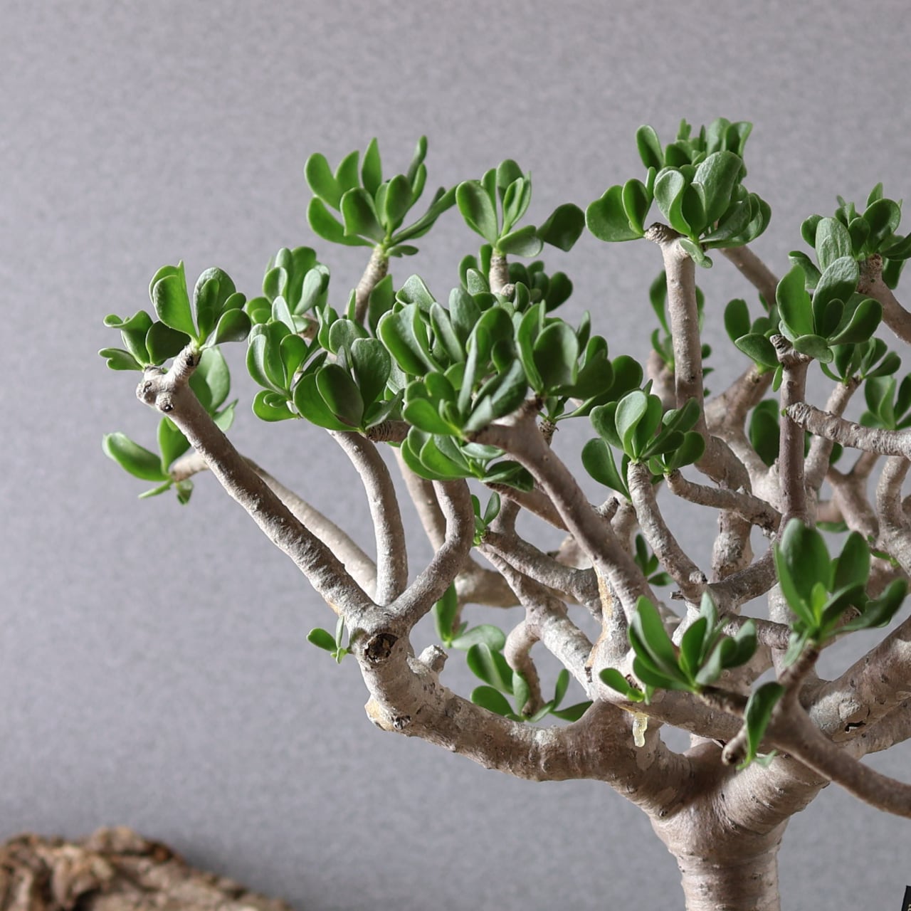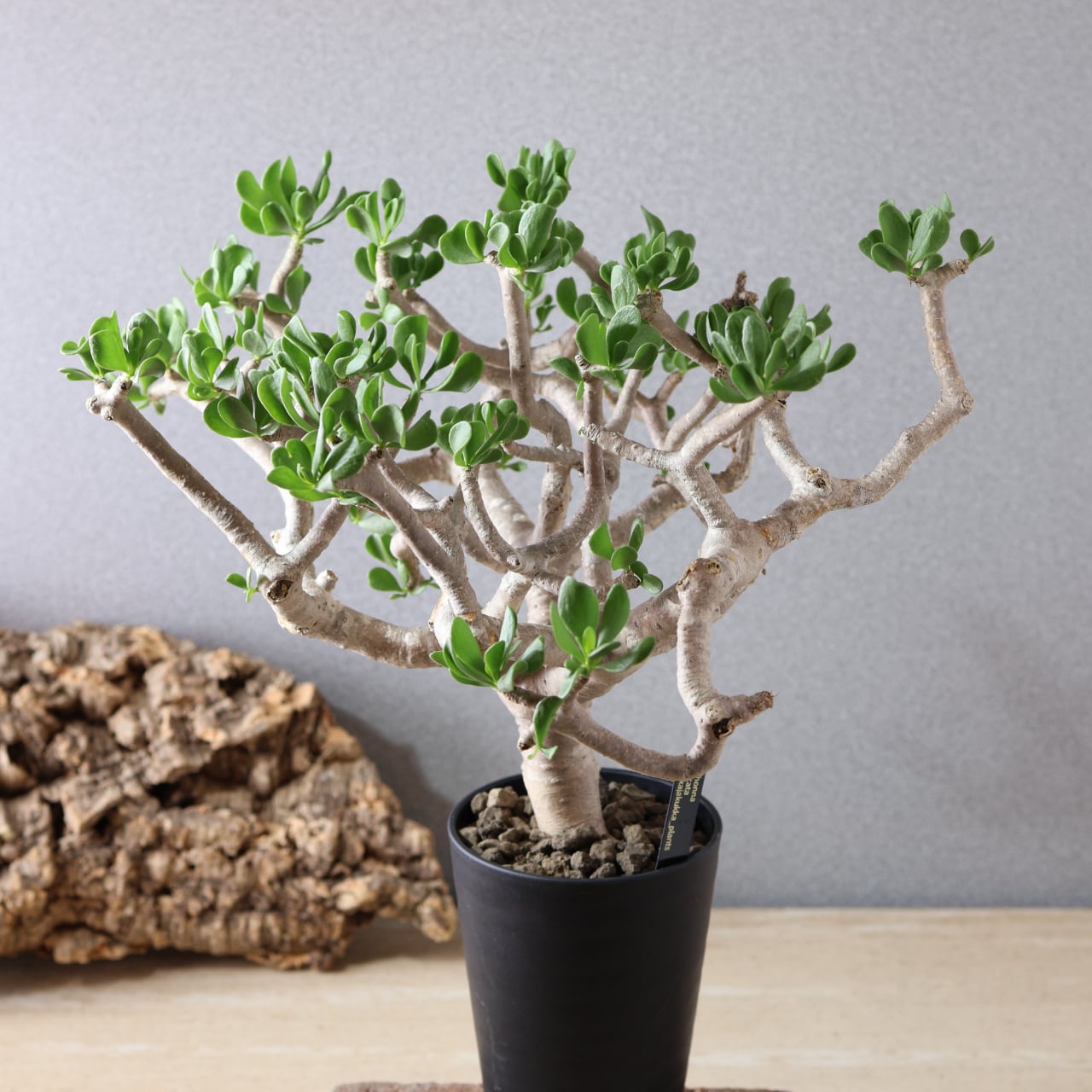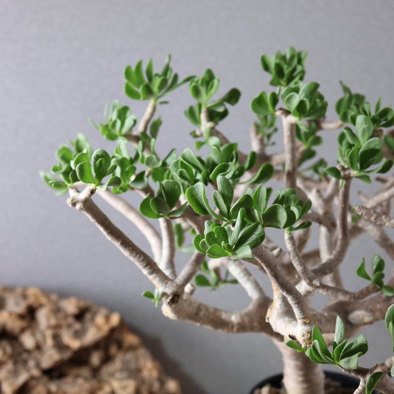 ミニチュアの小さな木のような株姿が特徴で、塊根というより潅木に近い形状をしています。