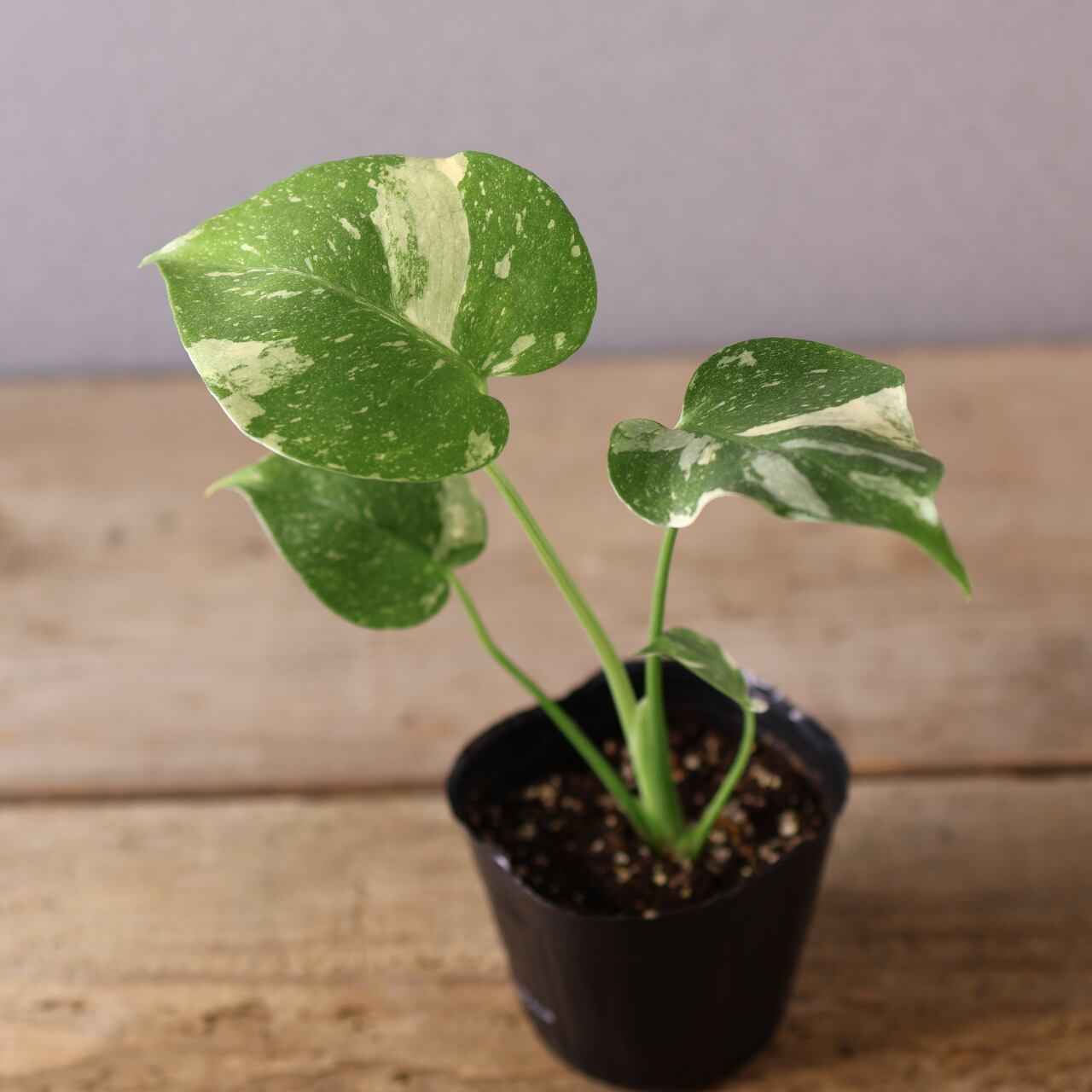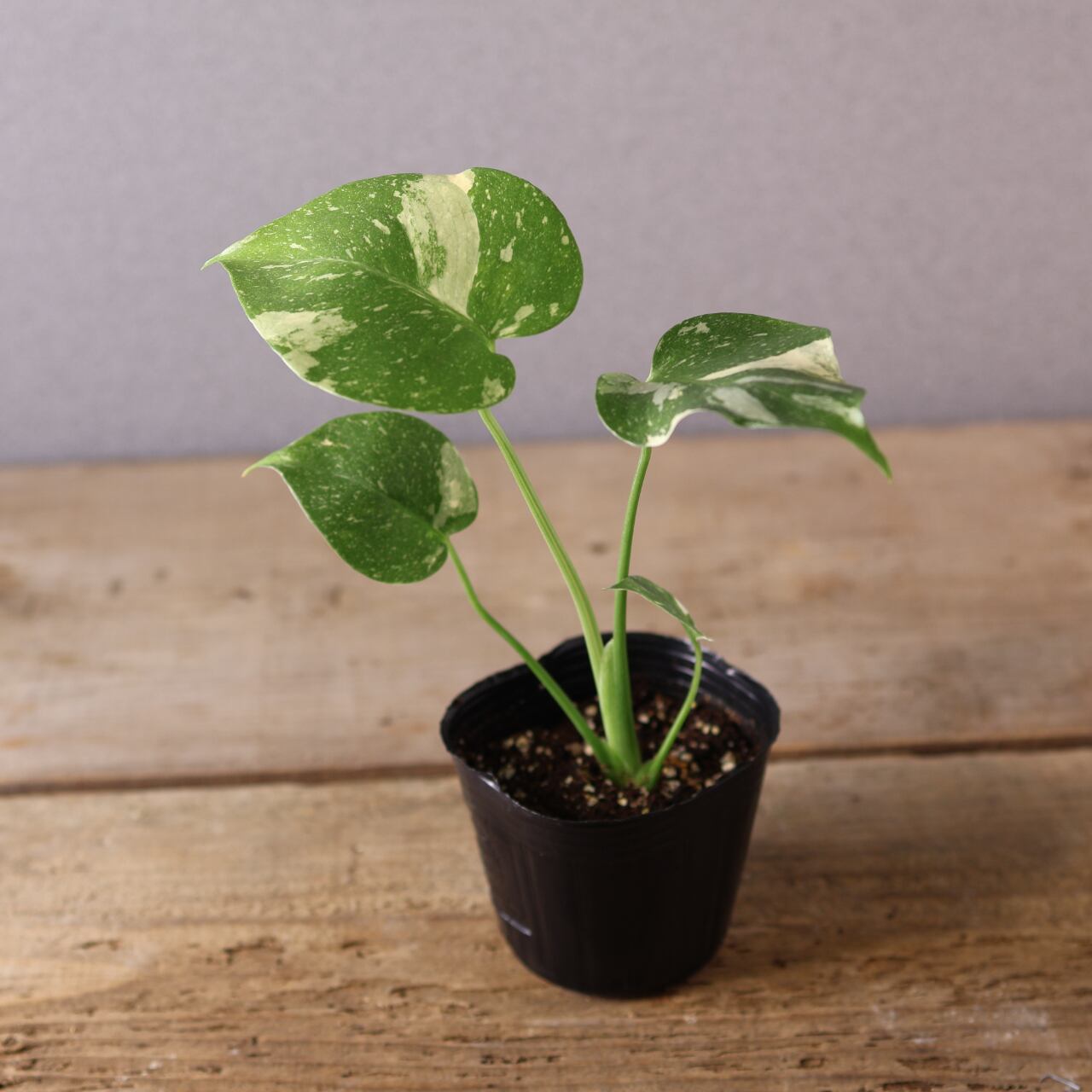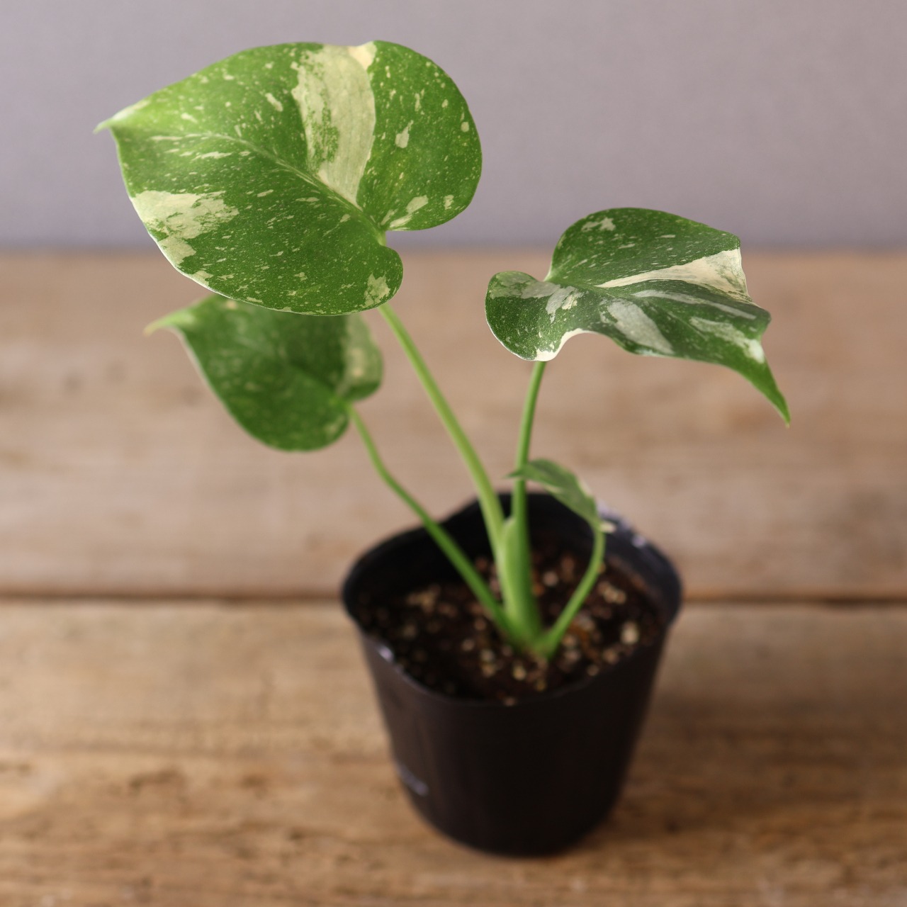 通常のモンステラよりもややゆっくりと成長し、斑入り葉を保つためにも明るい日陰が最適。室内のインテリアとしても抜群の存在感を放ち、ひと鉢置くだけで空間がぐっと洗練された印象になります。