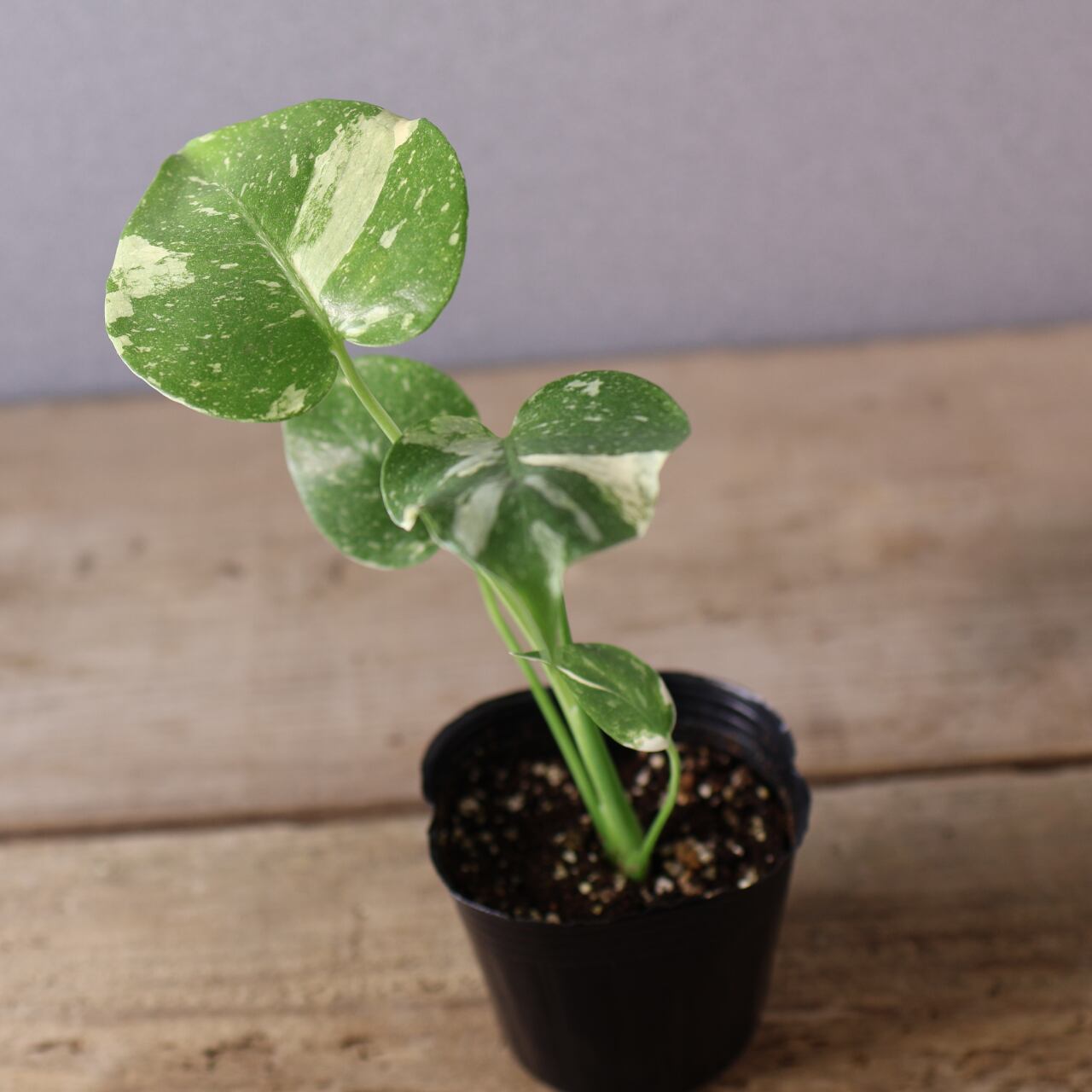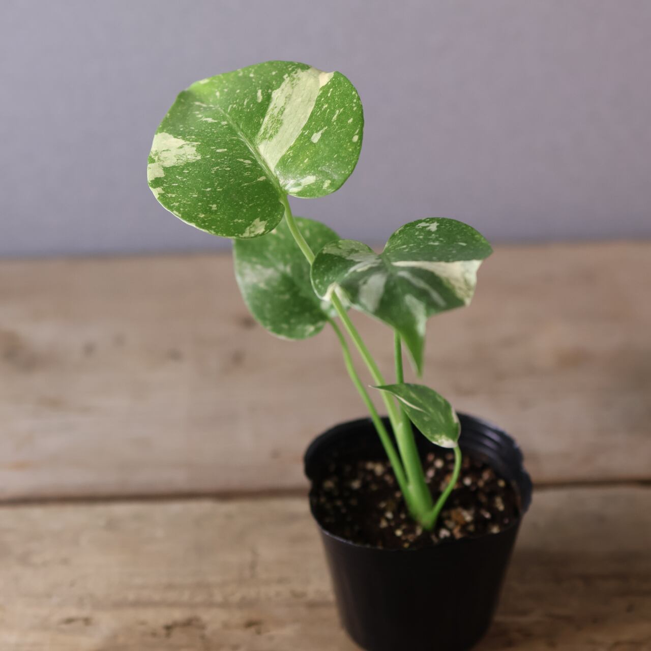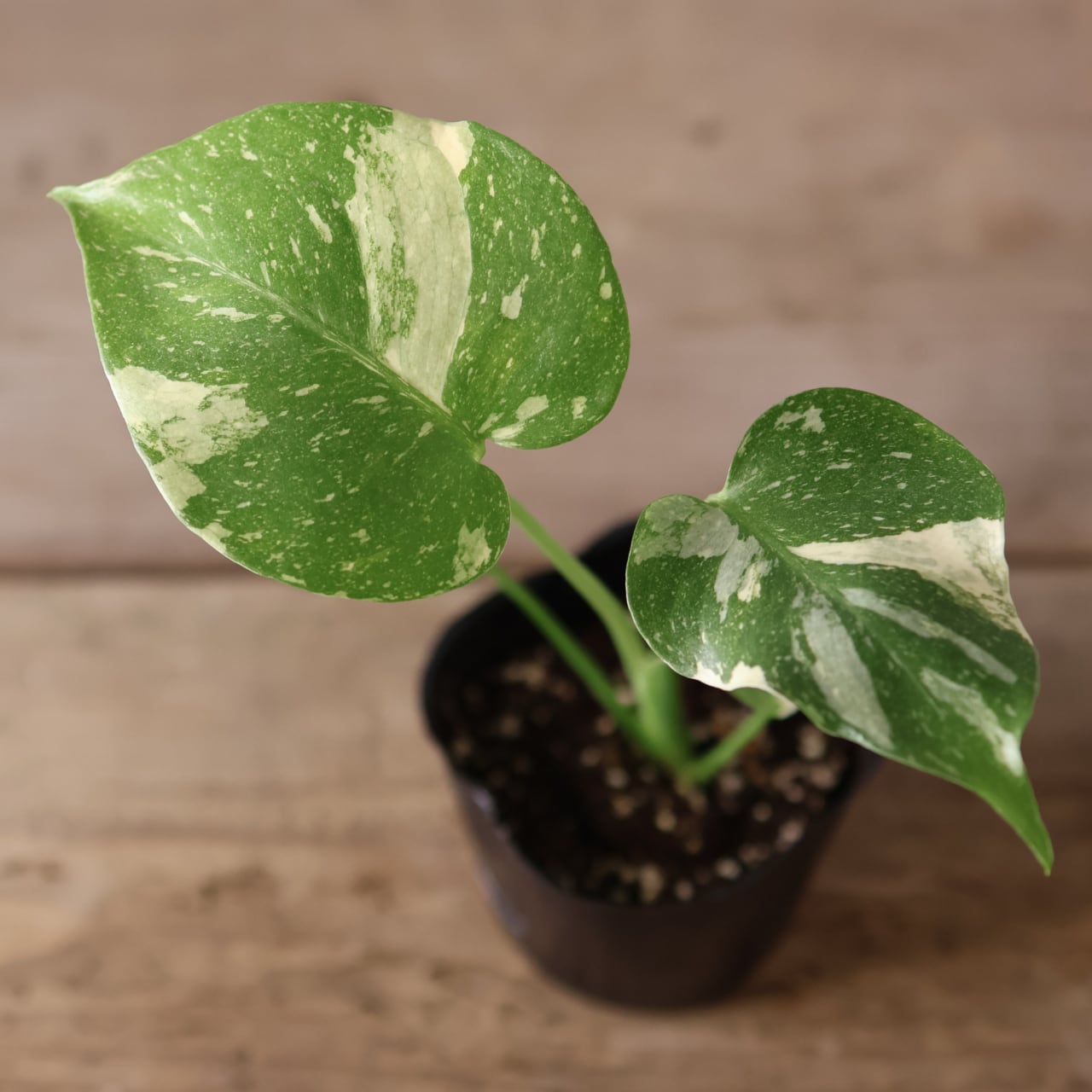 通常のモンステラよりもややゆっくりと成長し、斑入り葉を保つためにも明るい日陰が最適。室内のインテリアとしても抜群の存在感を放ち、ひと鉢置くだけで空間がぐっと洗練された印象になります。