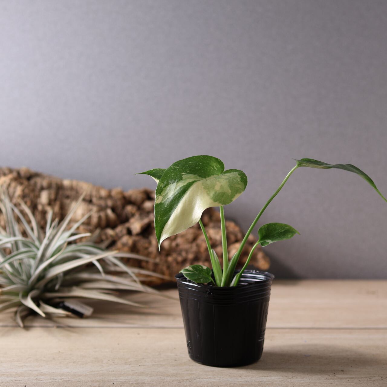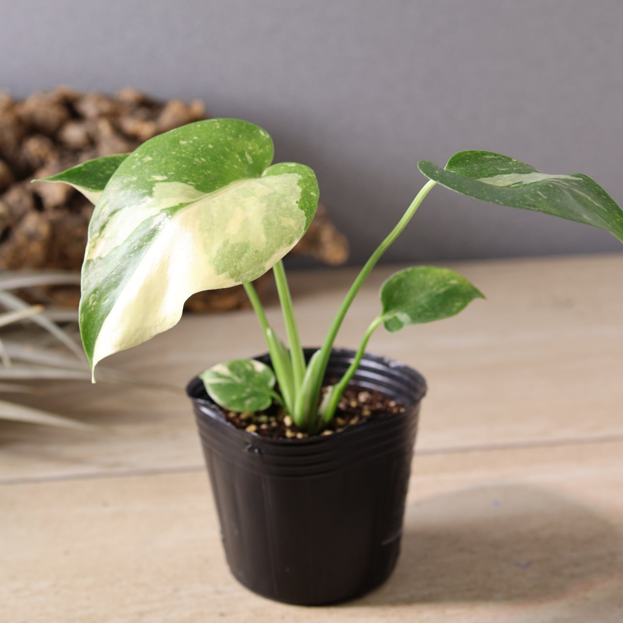 通常のモンステラよりもややゆっくりと成長し、斑入り葉を保つためにも明るい日陰が最適。室内のインテリアとしても抜群の存在感を放ち、ひと鉢置くだけで空間がぐっと洗練された印象になります。