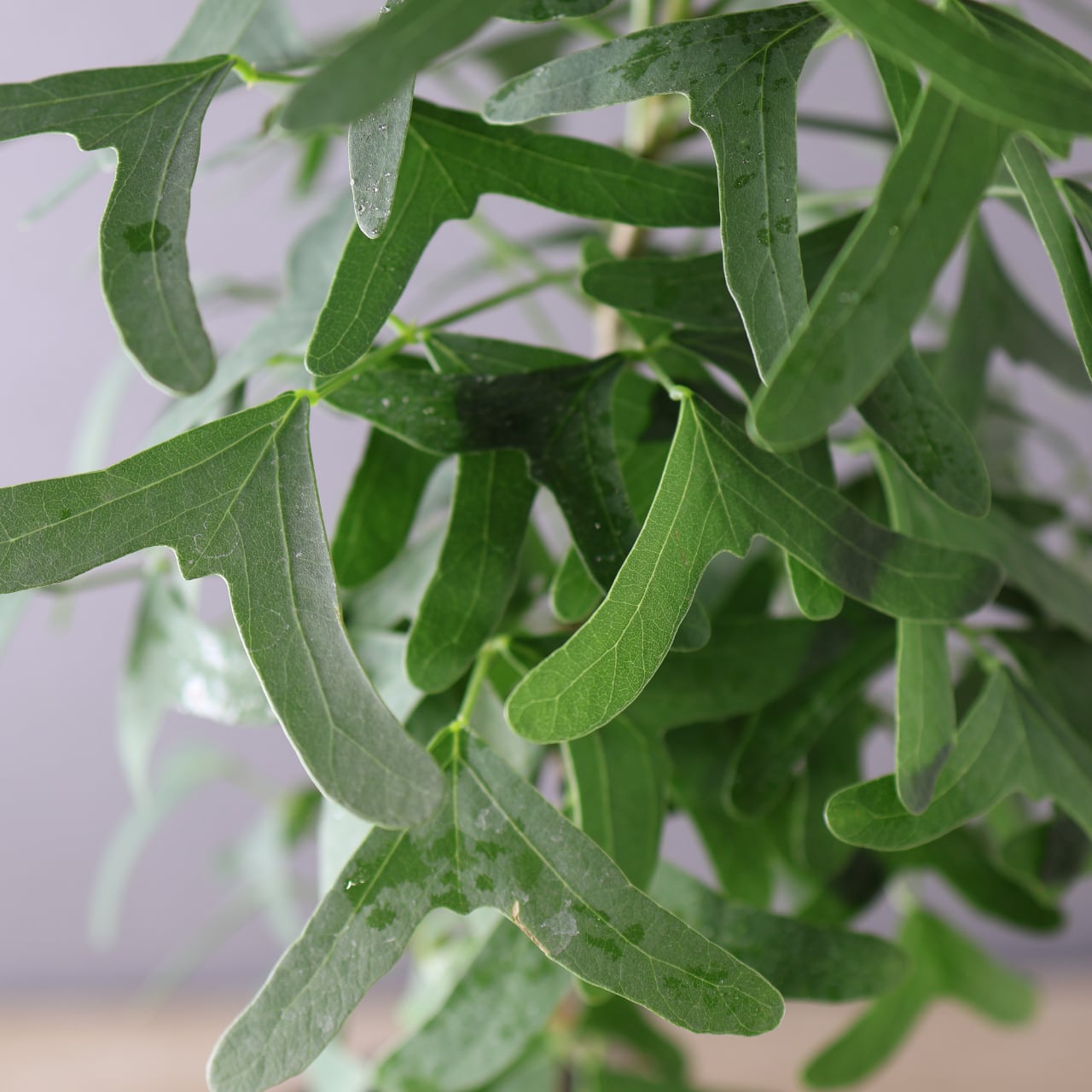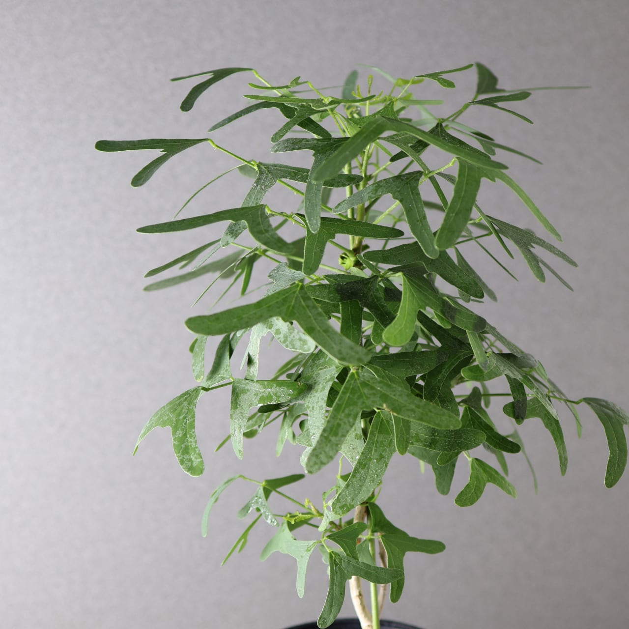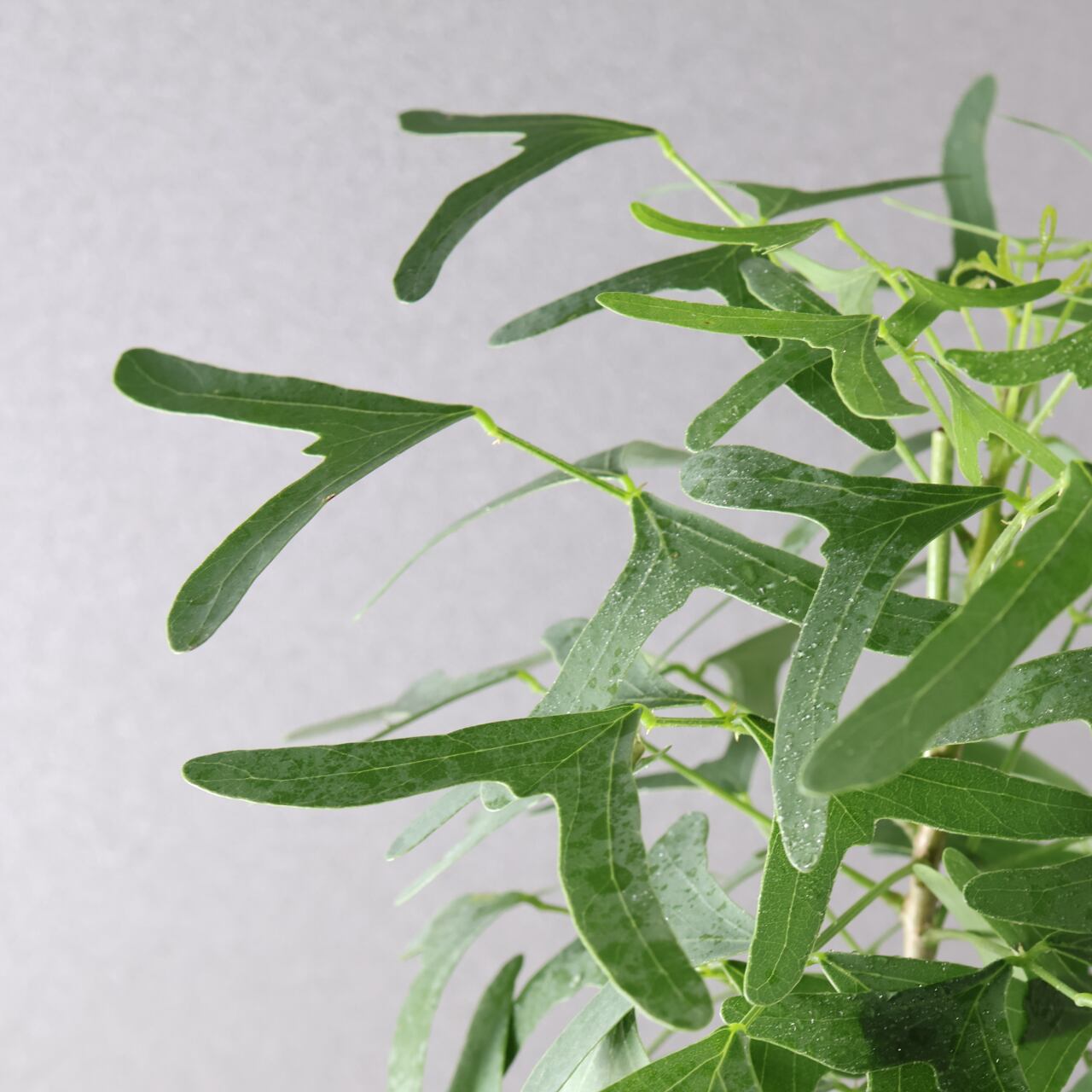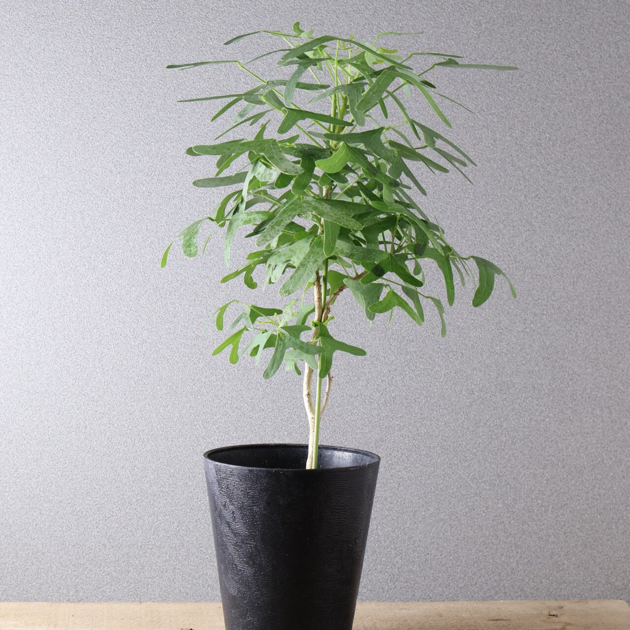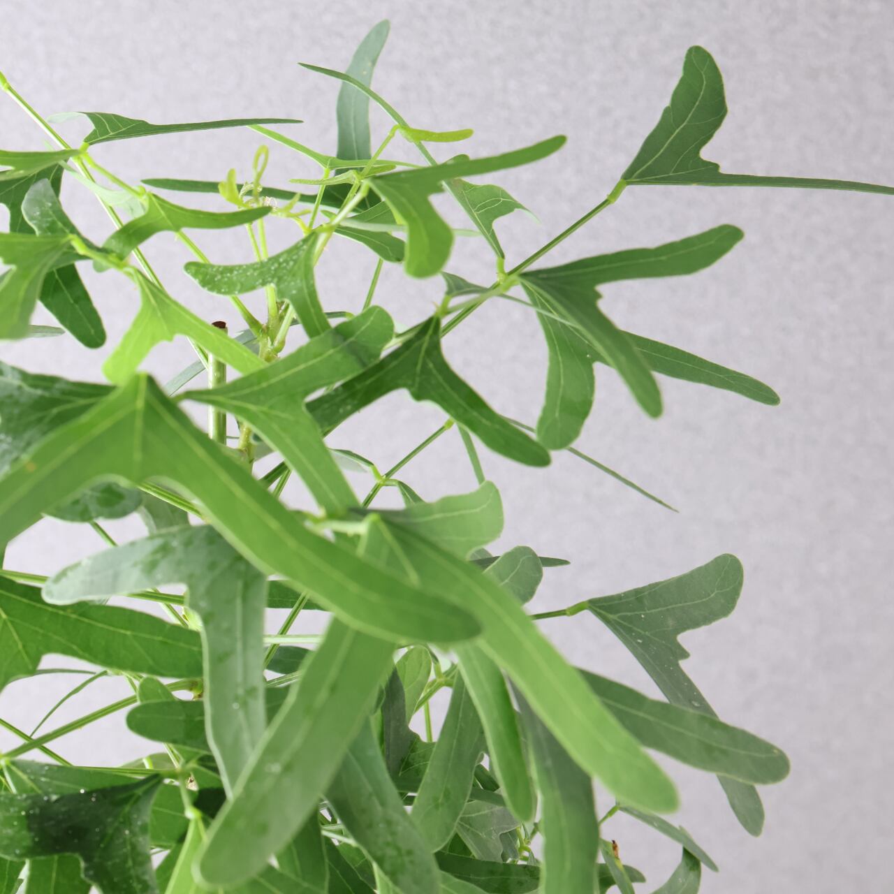 蝶が舞うような形の葉と、美しいグリーンのコントラストが印象的な熱帯性植物。ハート形にも見える三枚葉のバランスが軽やかで、風にそよぐ姿はまるで羽ばたく蝶のようです。