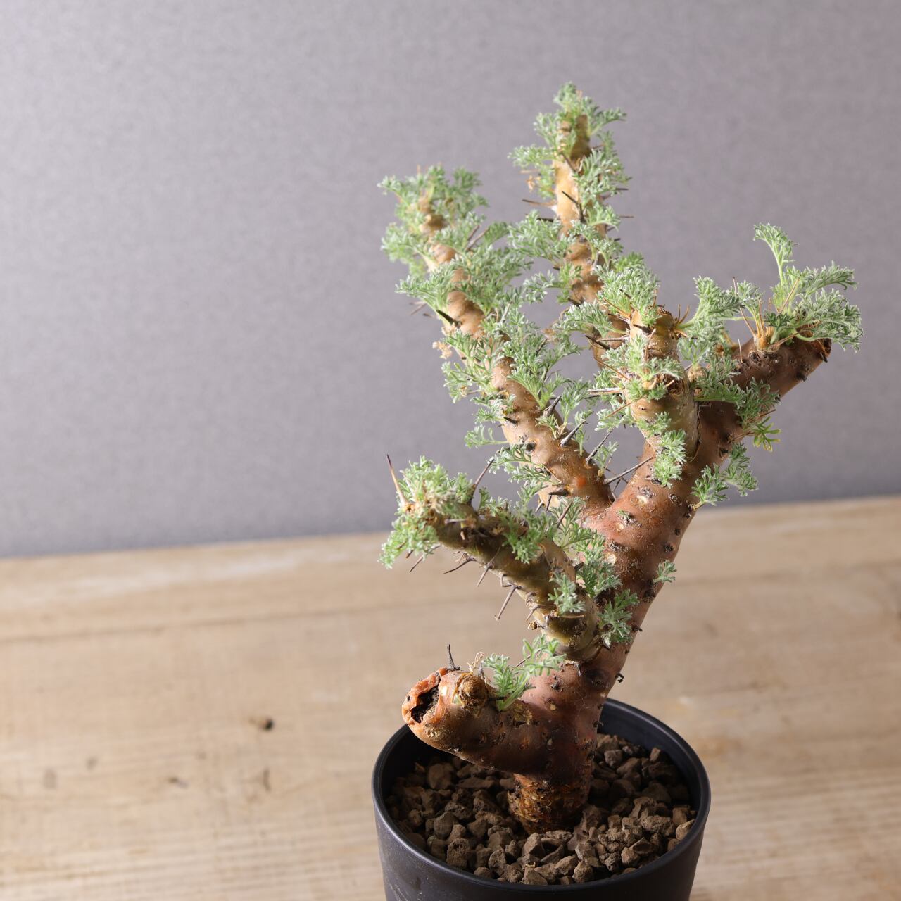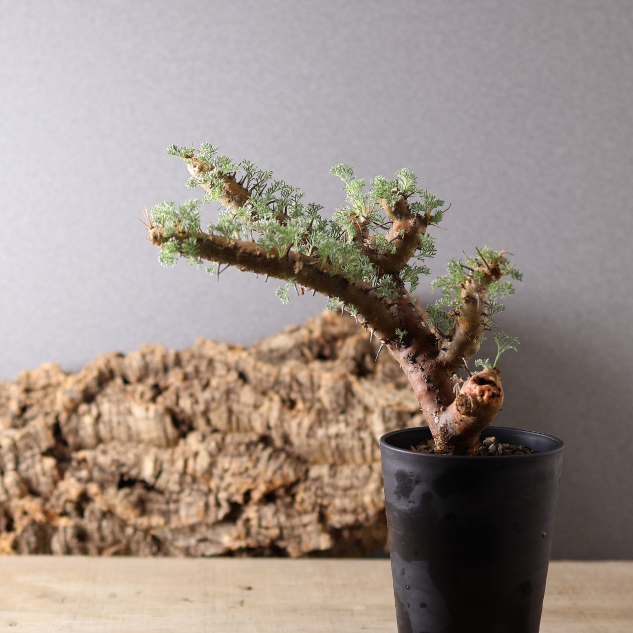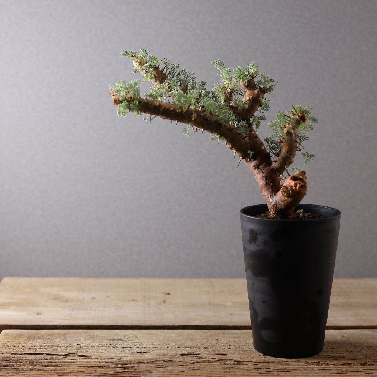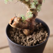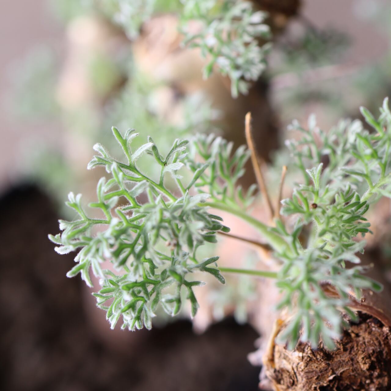南アフリカ原産の塊根植物で、まるで古木のような幹肌と繊細な葉が美しいモンソニア・ヘレー。