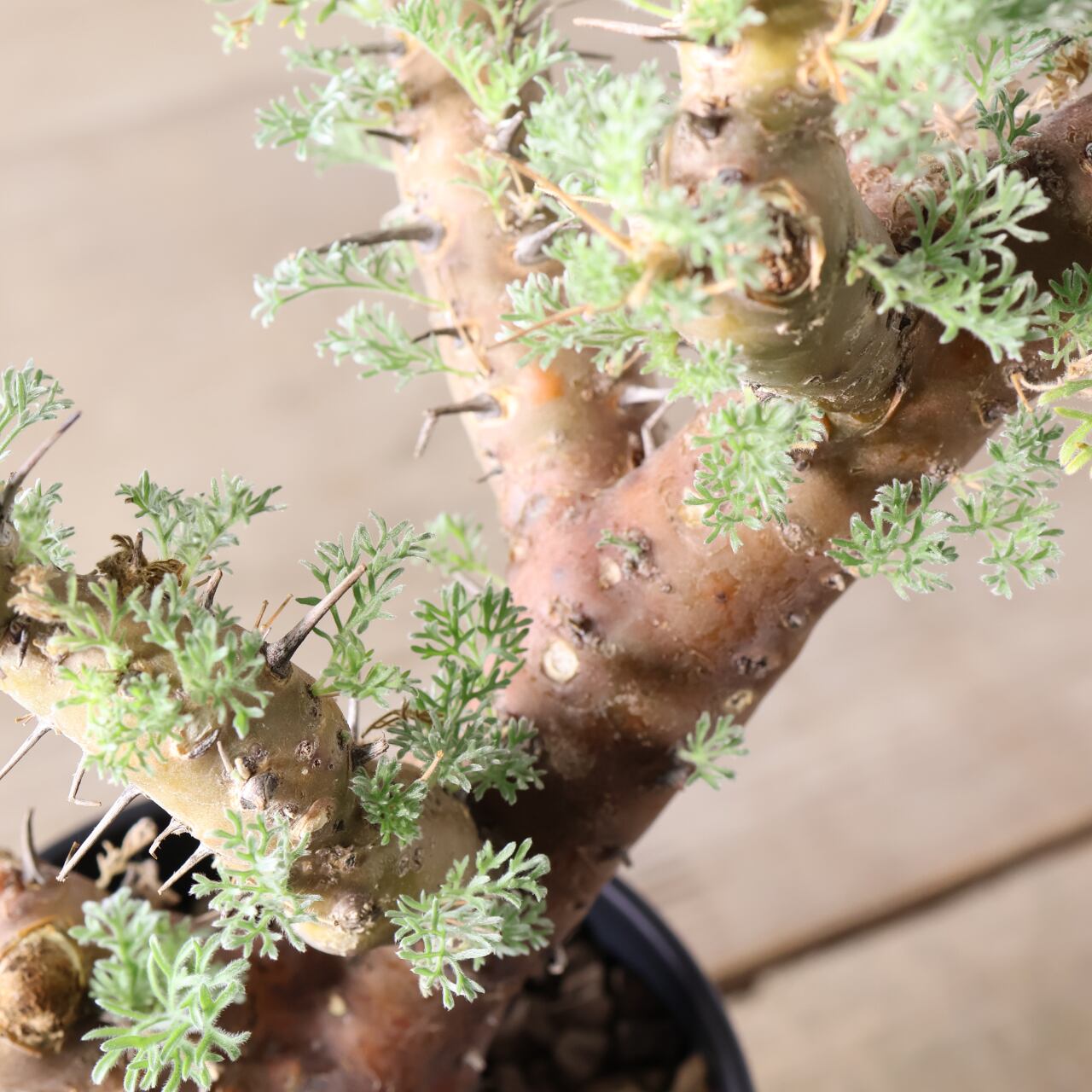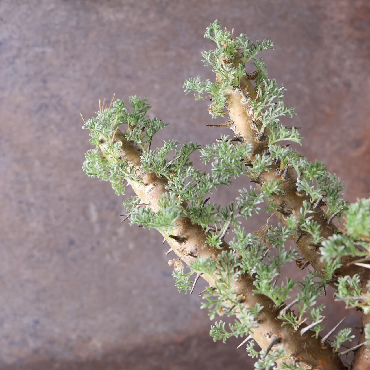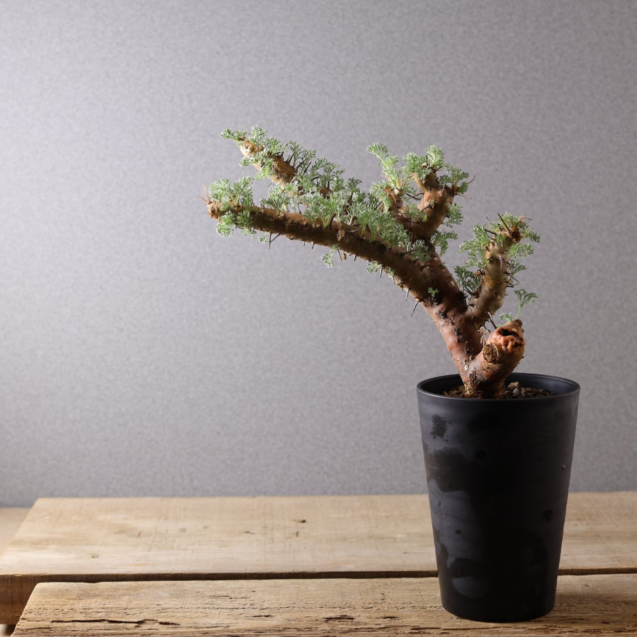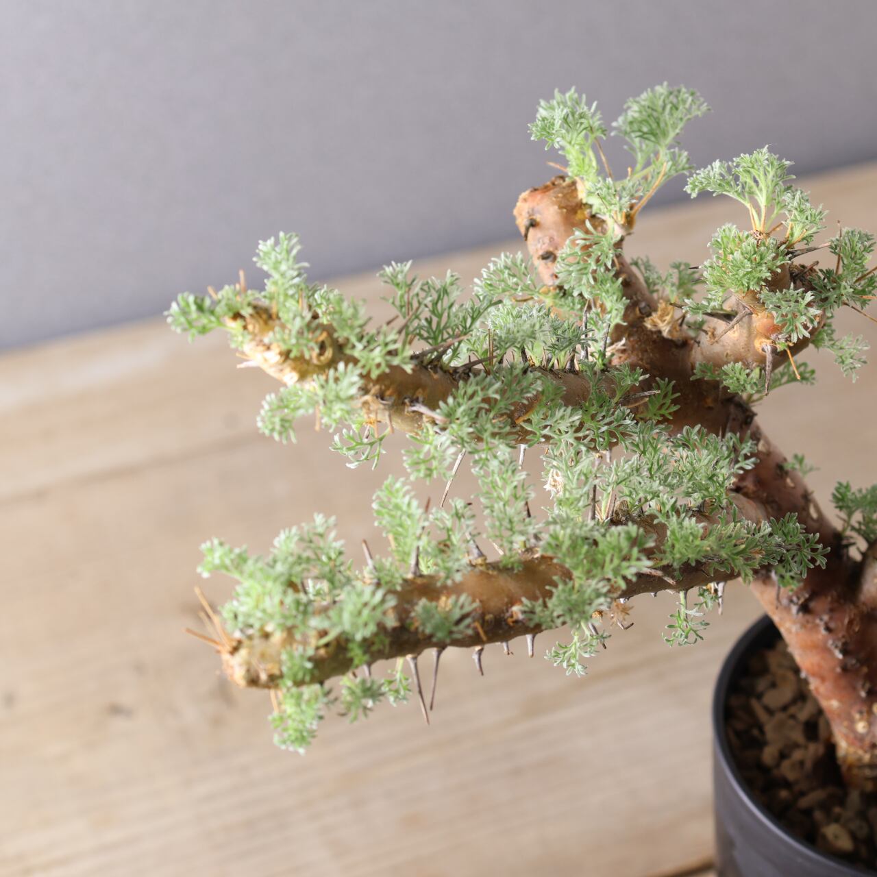 南アフリカ原産の塊根植物で、まるで古木のような幹肌と繊細な葉が美しいモンソニア・ヘレー。