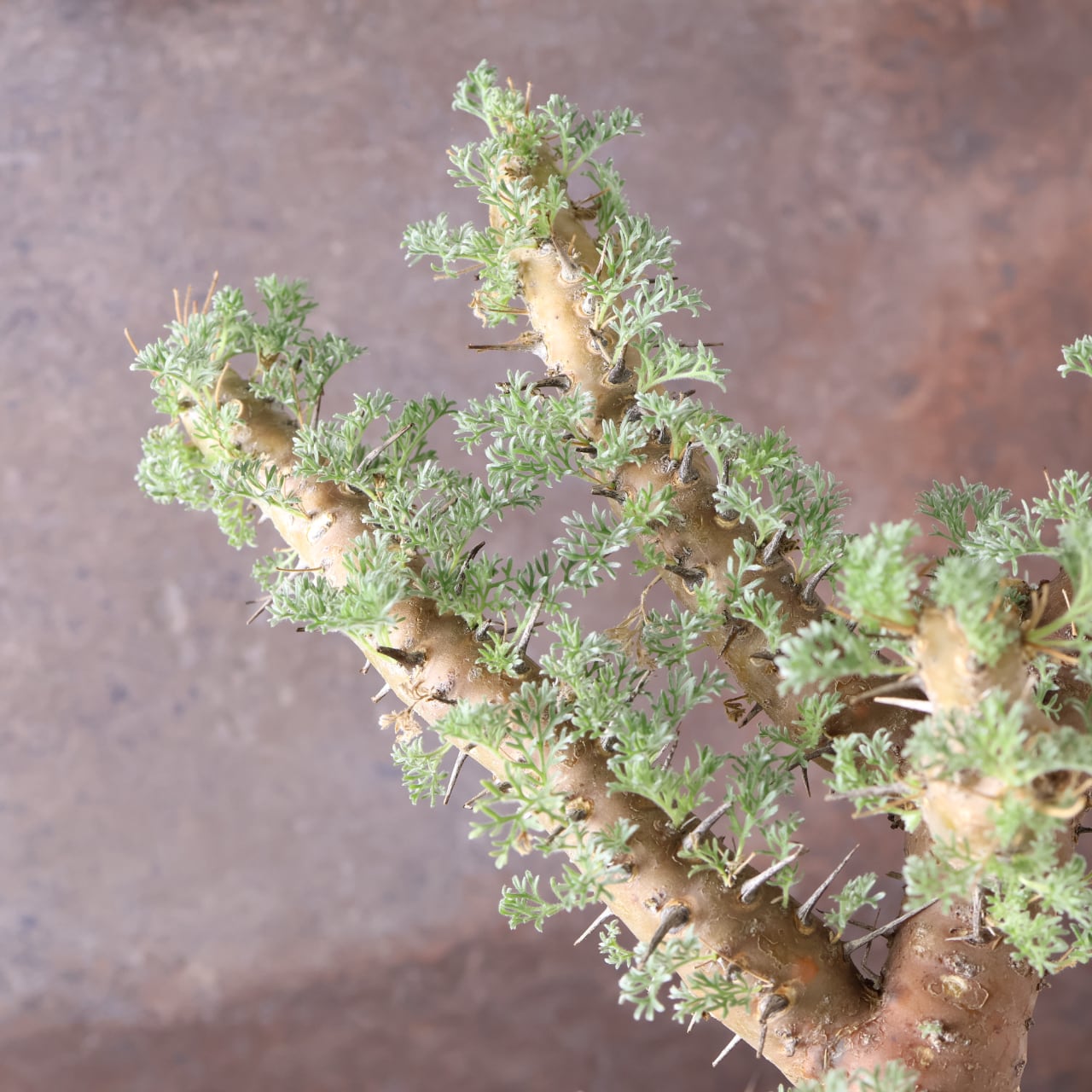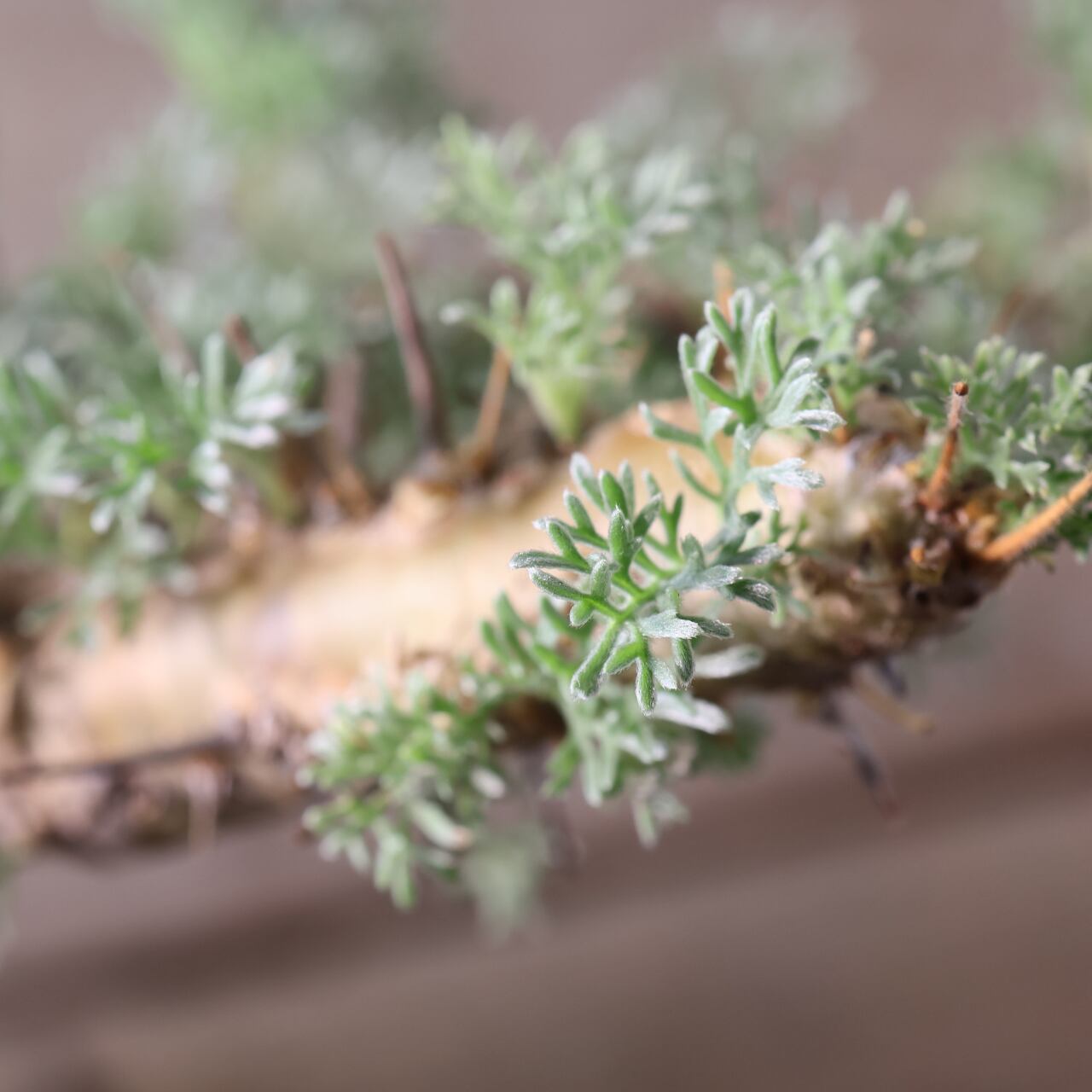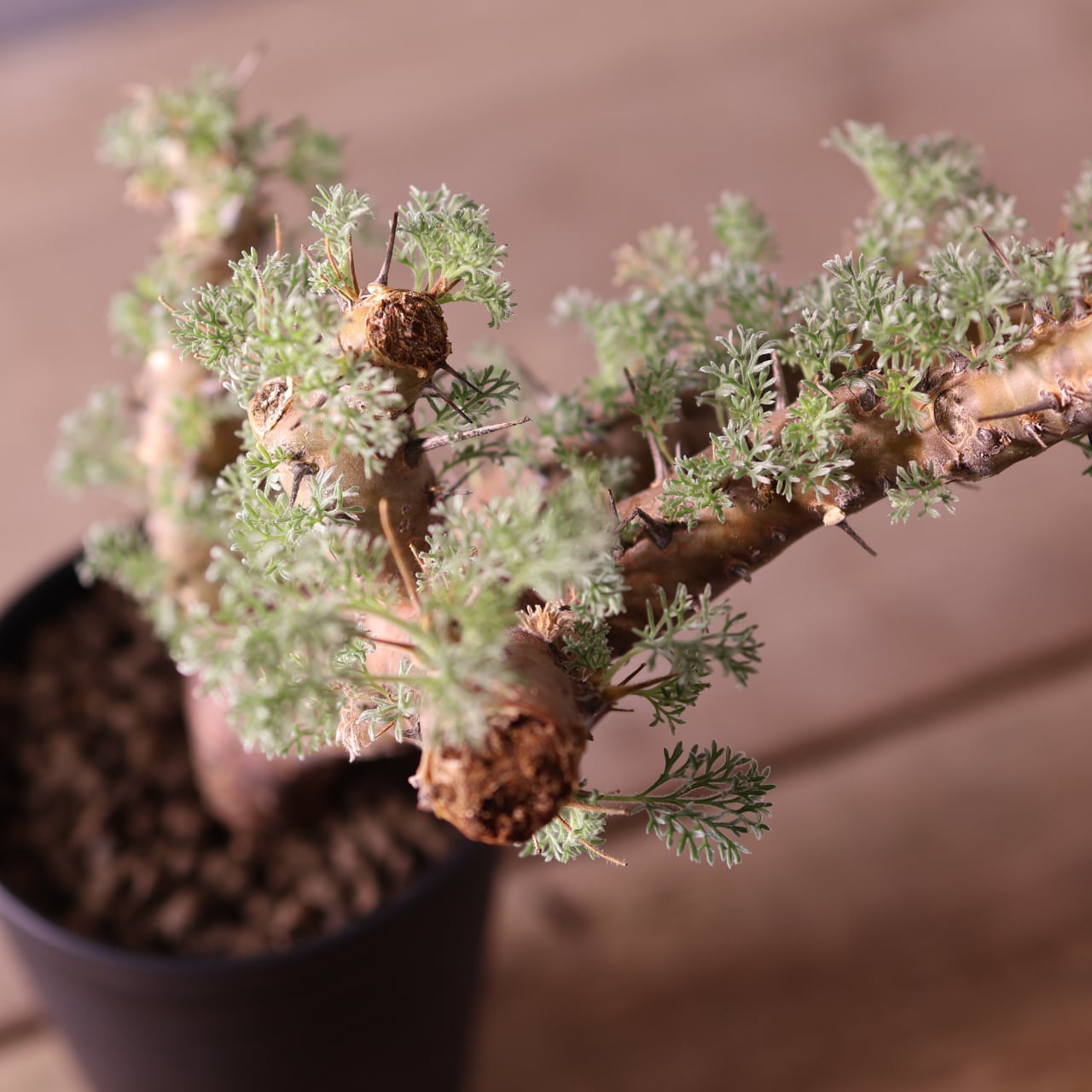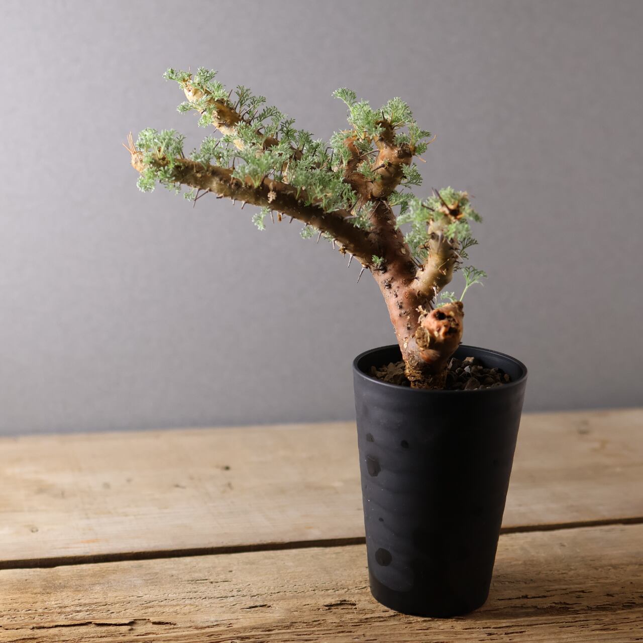 南アフリカ原産の塊根植物で、まるで古木のような幹肌と繊細な葉が美しいモンソニア・ヘレー。