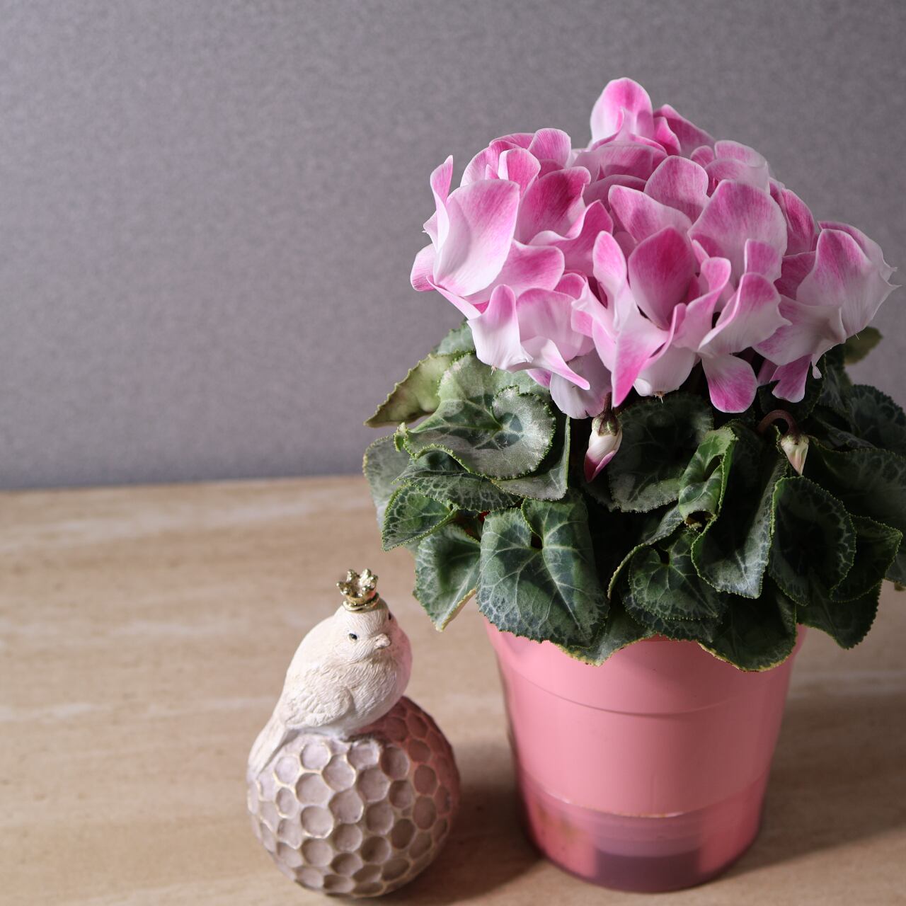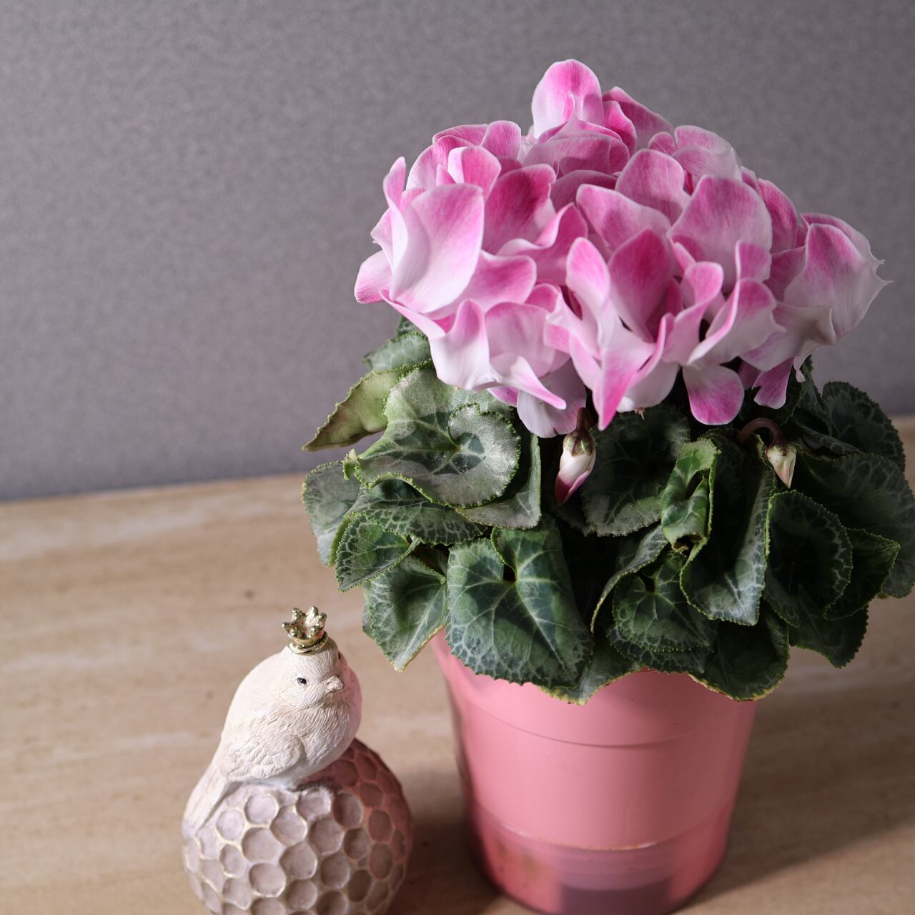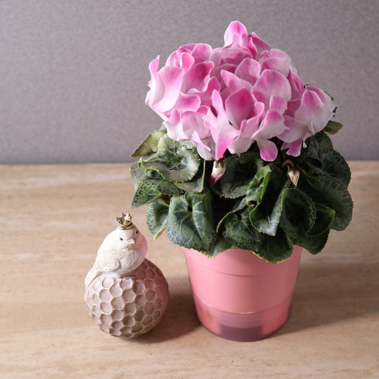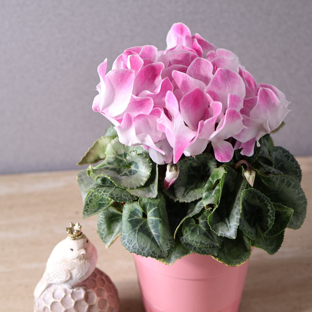 ひらひらと波打つ花びらが美しく広がる、華やかな印象のシクラメン「ファンフレーム ピンク」。