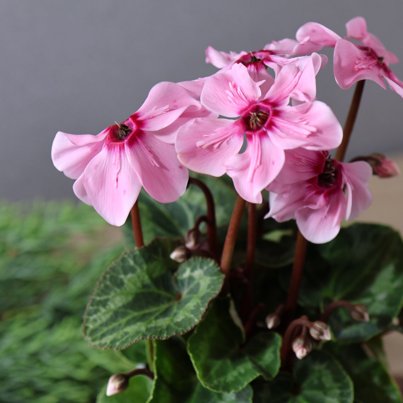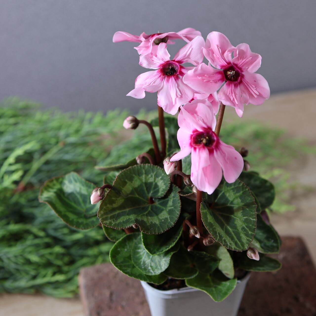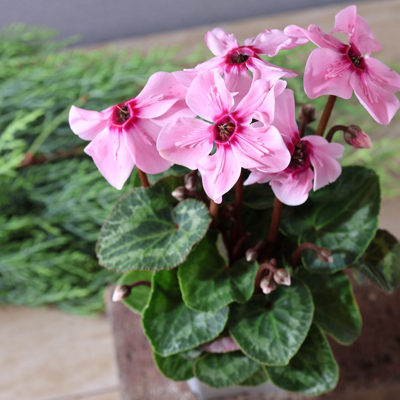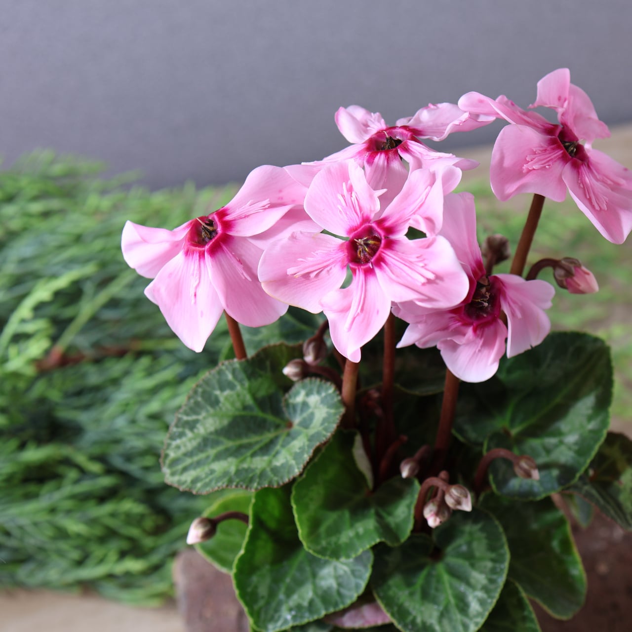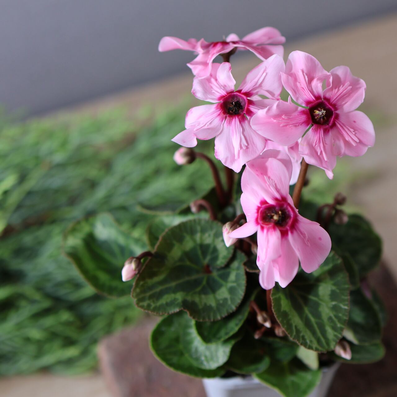 イリュージアは次々と上向きに花が咲き、株を覆いつくすほど豪華に花が咲き誇る幻想的なシクラメンです。