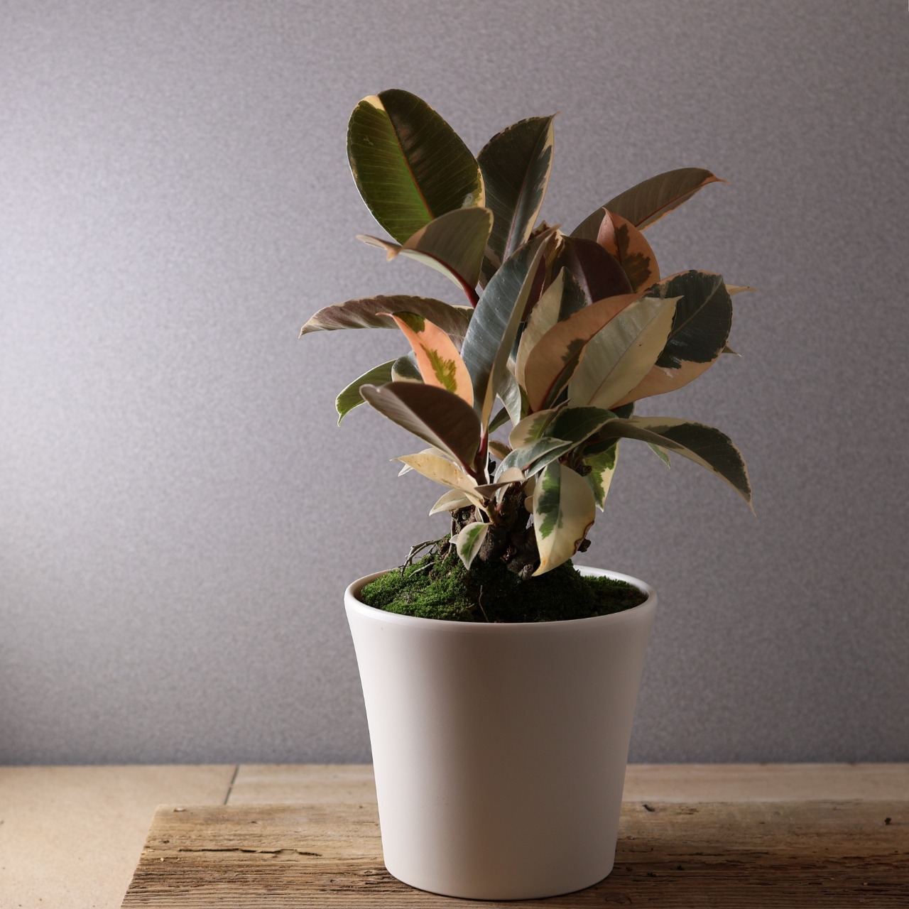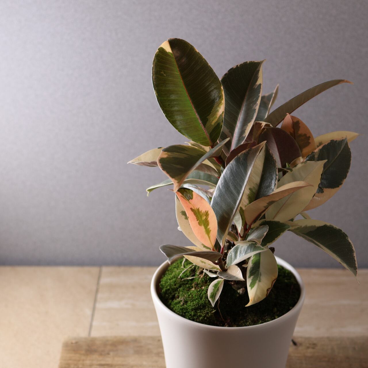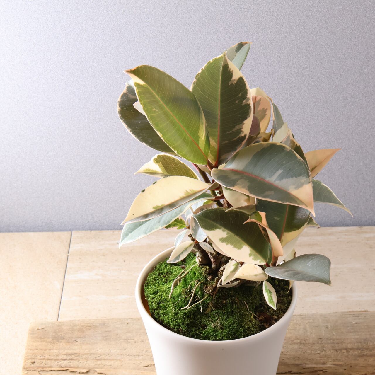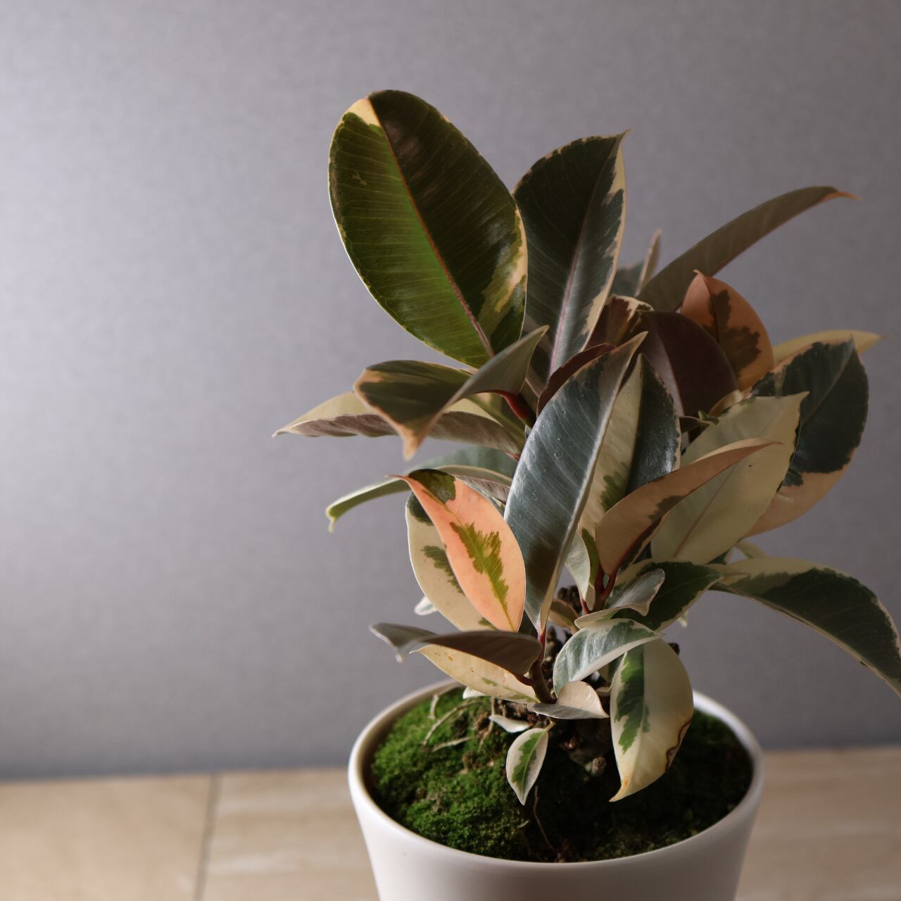 ゴムの木の中でも、ひときわ目を引く美しい葉模様が魅力のフィカス・ティネケ。