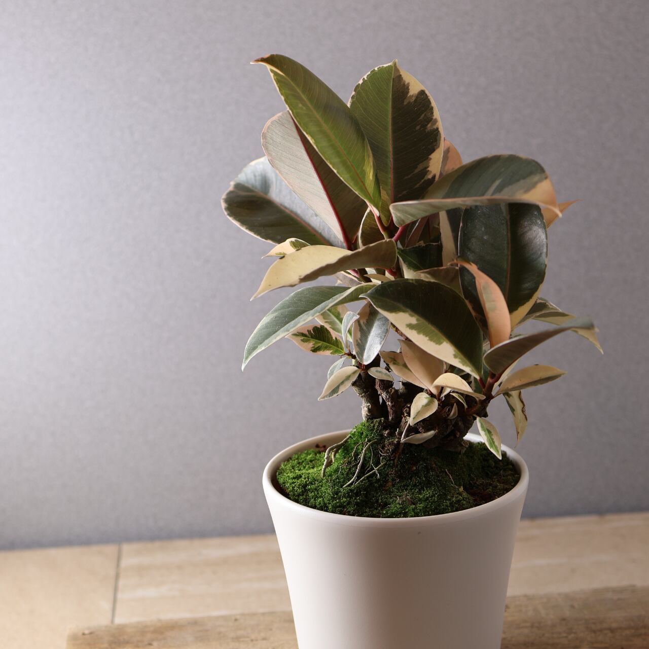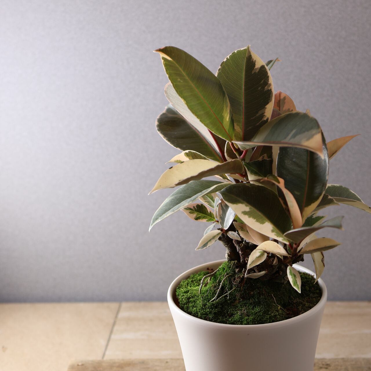 こちらは土を覆う苔とコンパクトなサイズがまるで盆栽のような雰囲気のひと鉢。