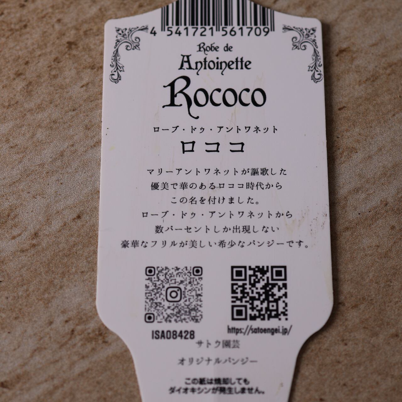 「ロココ」と名づけられたこの品種は、サトウ園芸さんが手がけたオリジナル品種で、一般のパンジーから数パーセントしか誕生しない“強フリル”株を厳選しています。