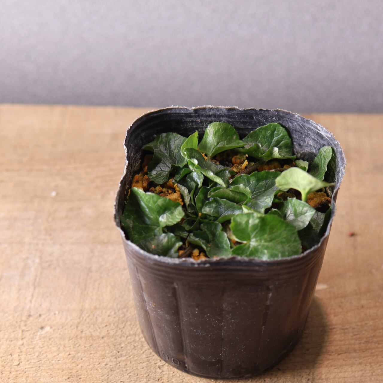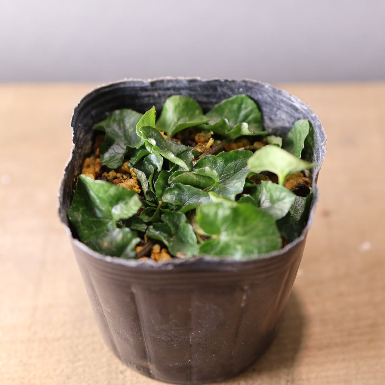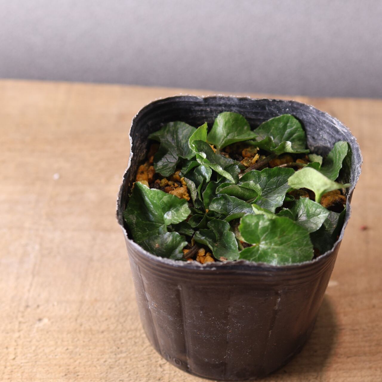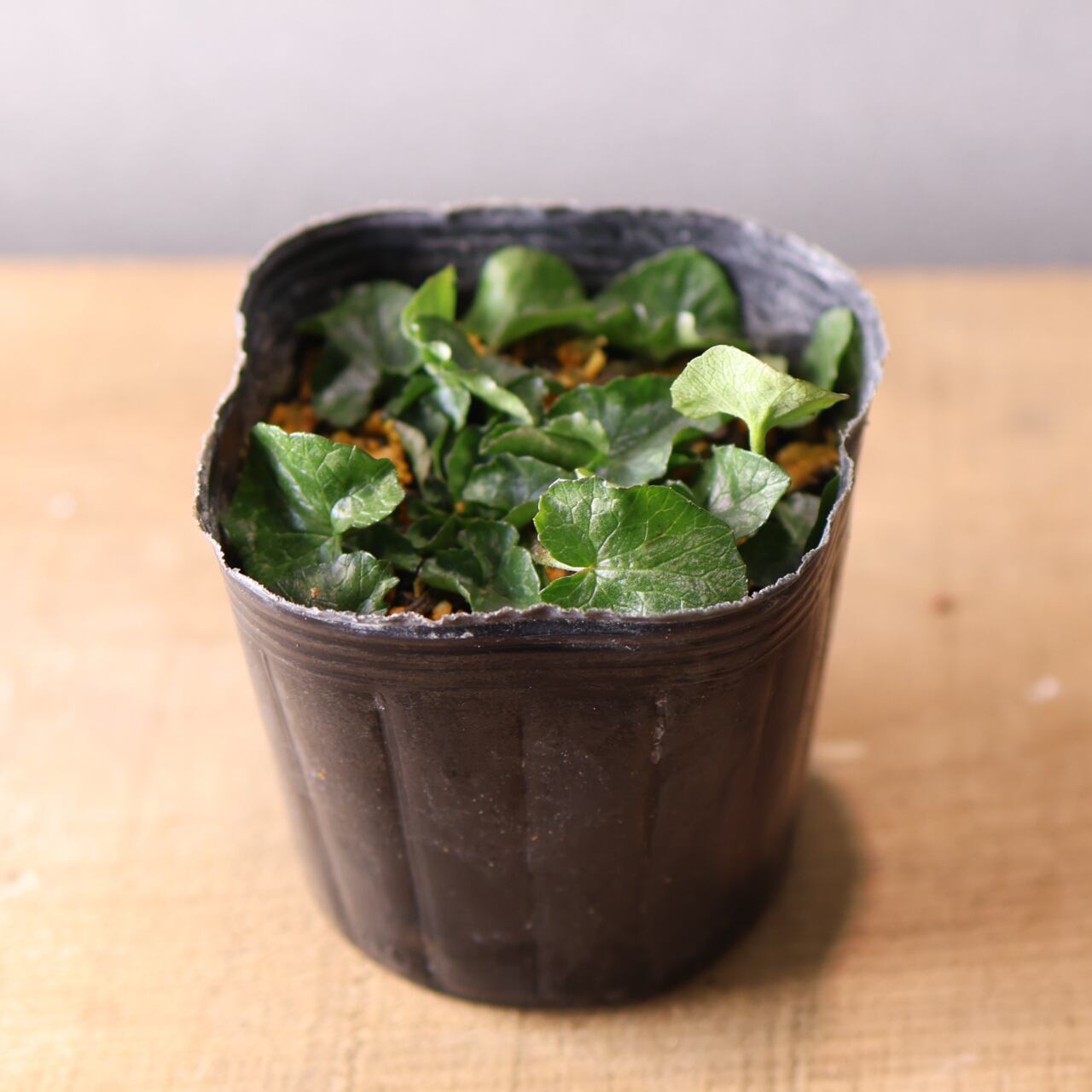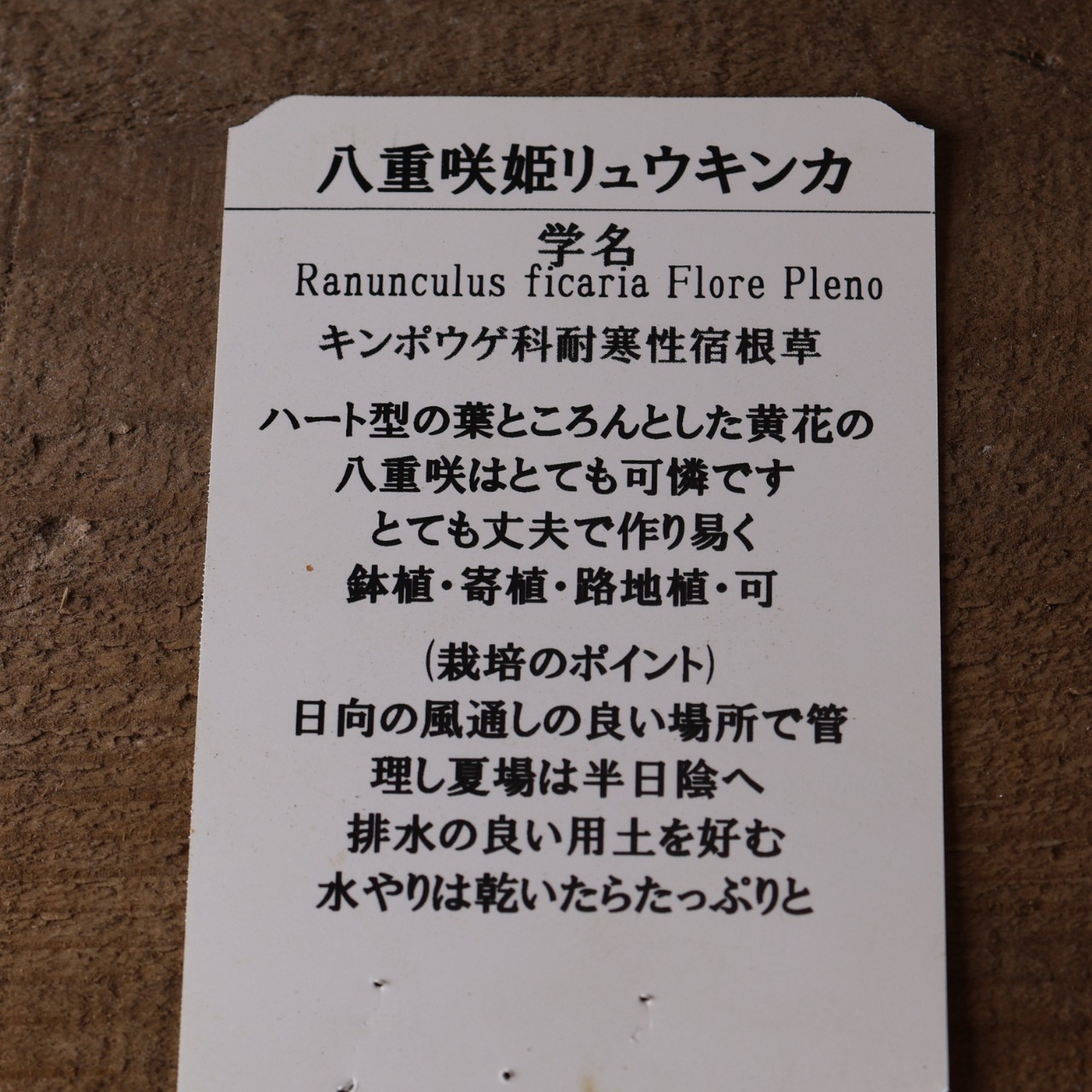 ハート型の葉ところんとした黄花の八重咲はとても可憐で、花のない時期でも可愛らしい印象。