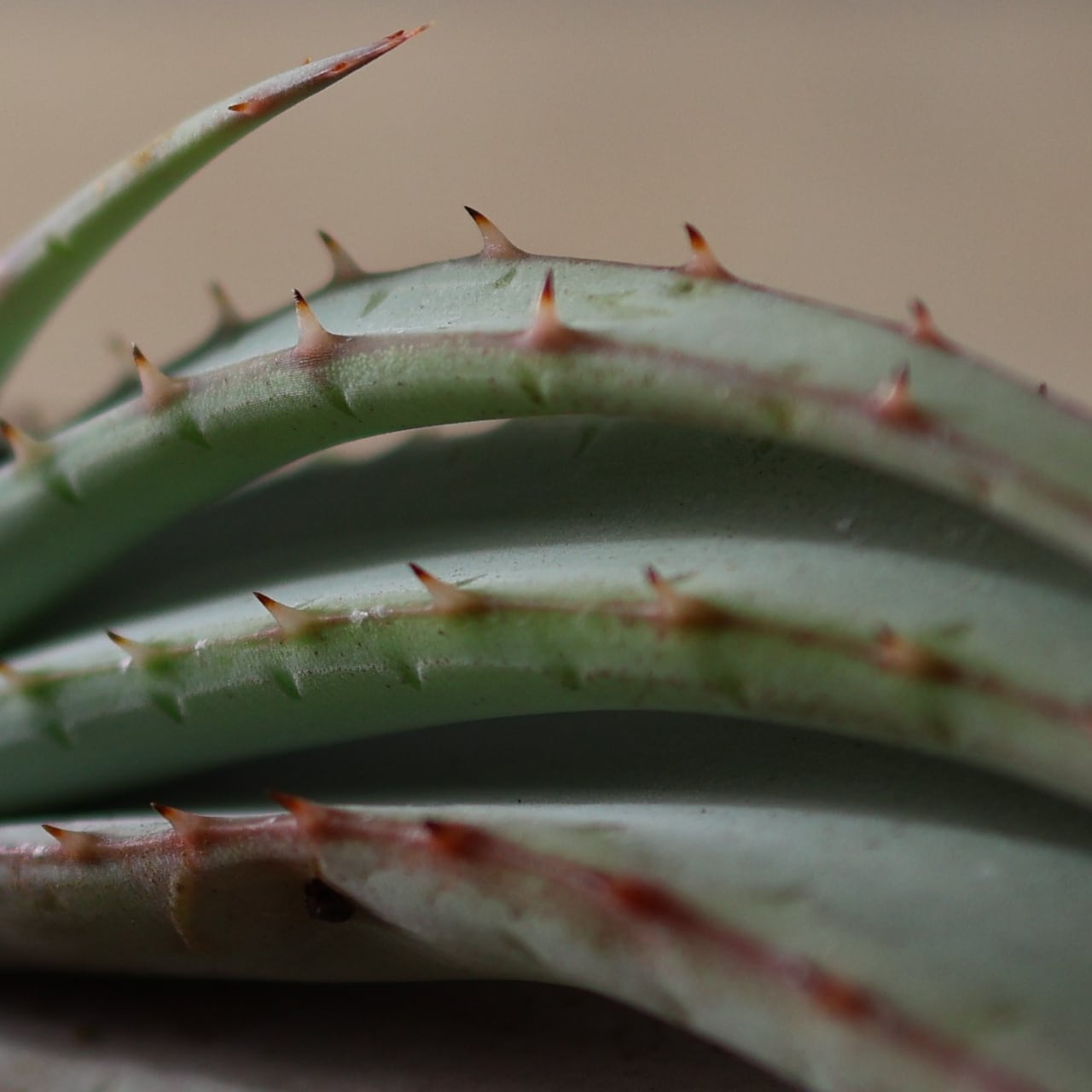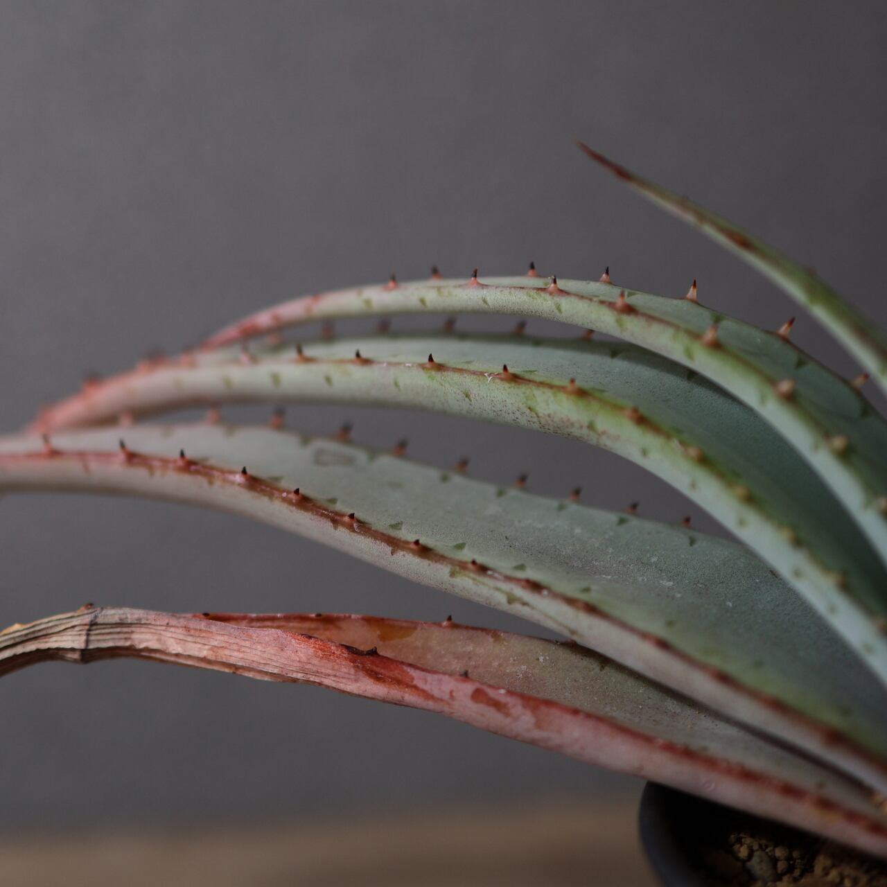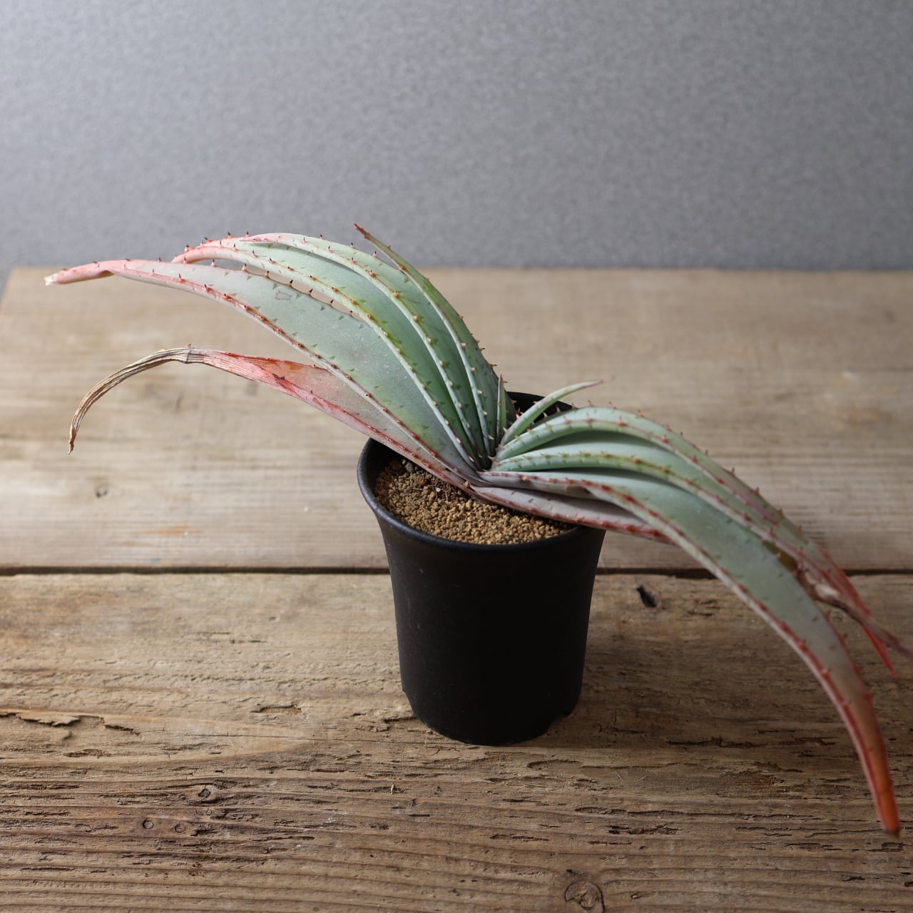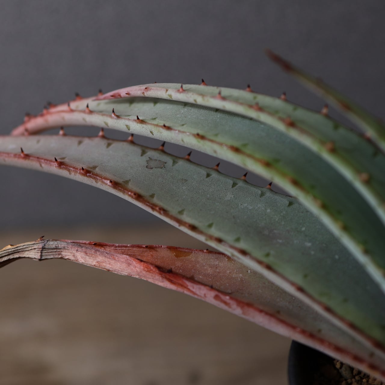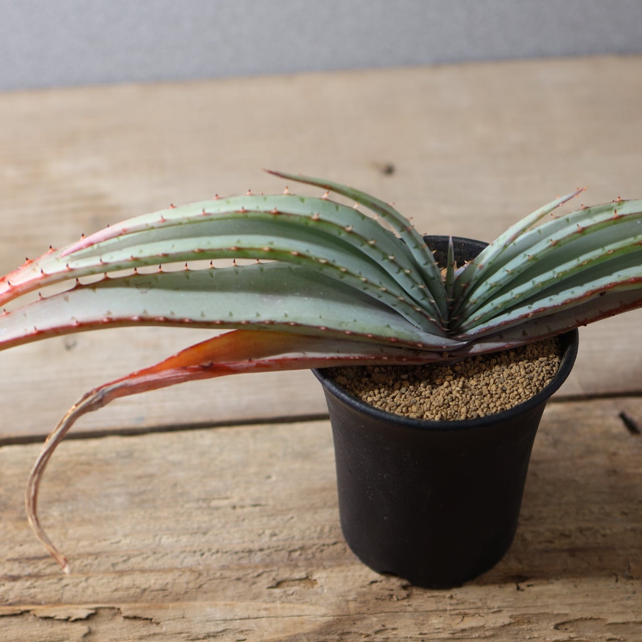 成長とともに葉がより強く湾曲し、重なり合う姿が美しく仕上がっていくため、育てるほどに表情の変化が楽しめます。丈夫で過酷な環境にも強く、インテリアとしても屋外管理でも映える万能なアロエです。
