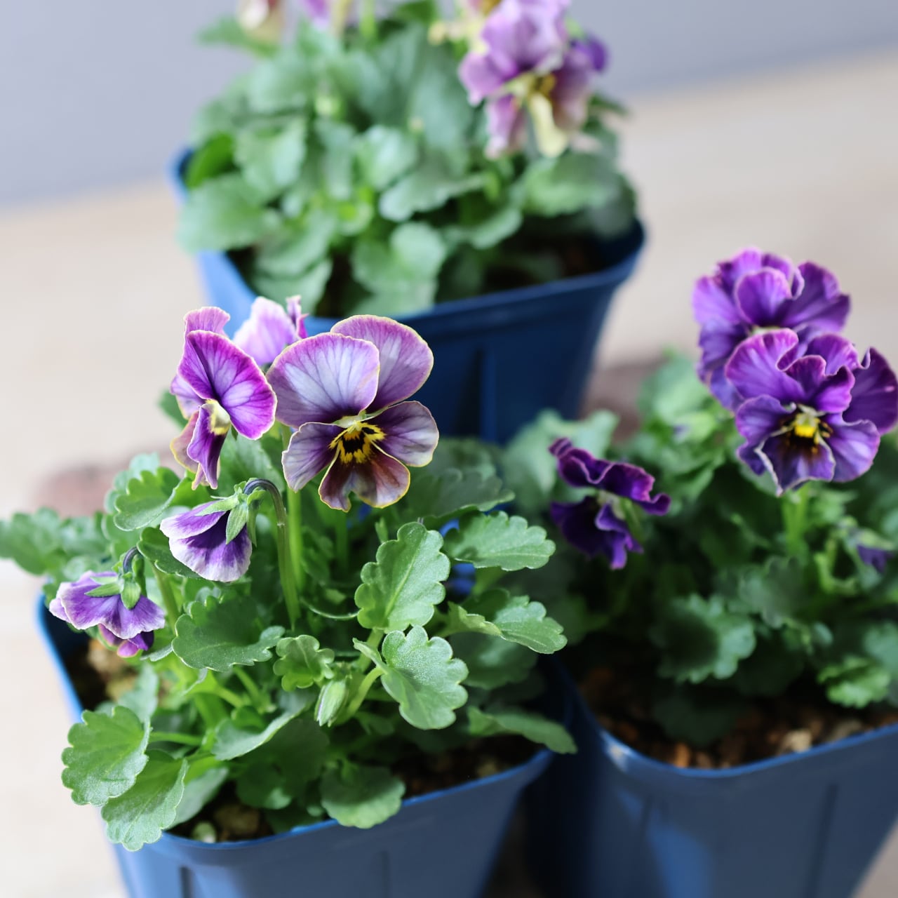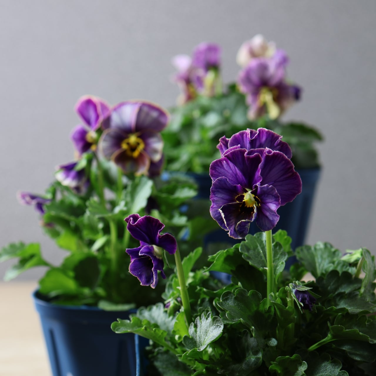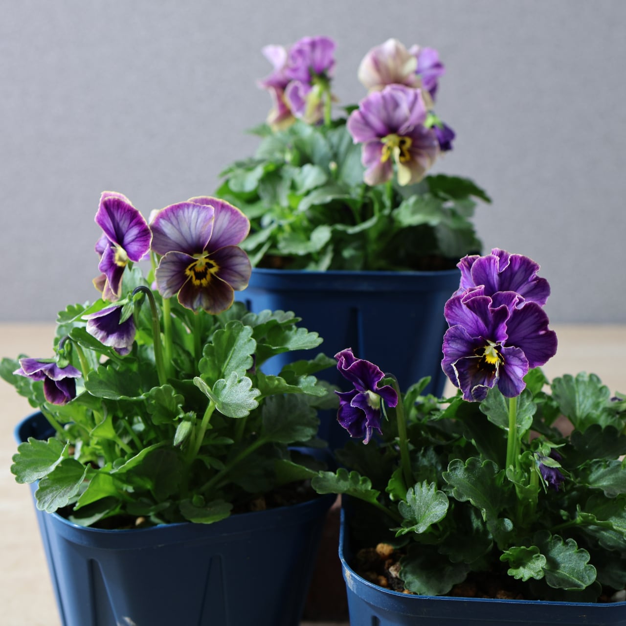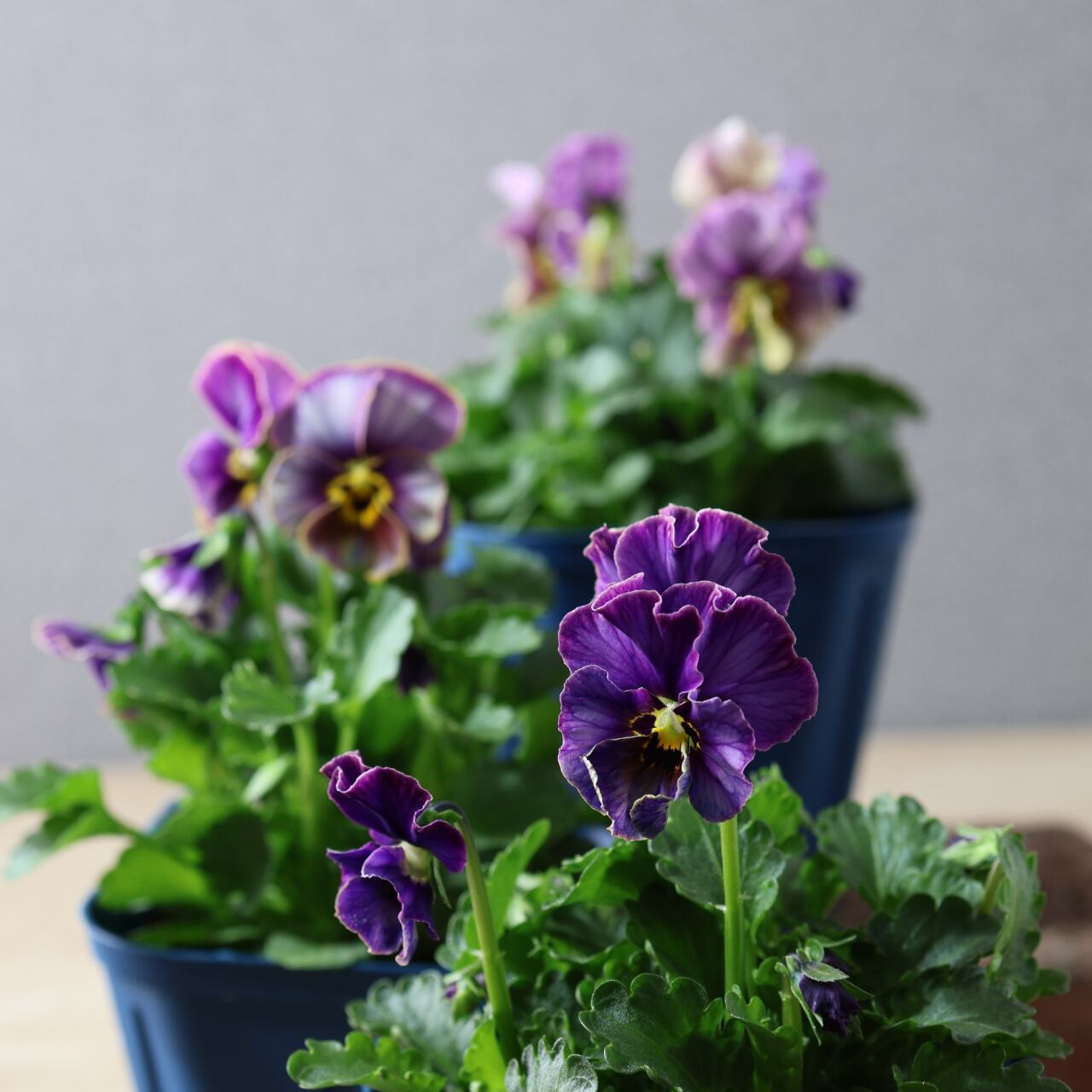 秋から春まで長く咲き続け、寄せ植えの主役としても、単品植えのアクセントとしても抜群の存在感。落ち着いたブルー系は、冬のガーデンに上品な彩りを添えてくれます。